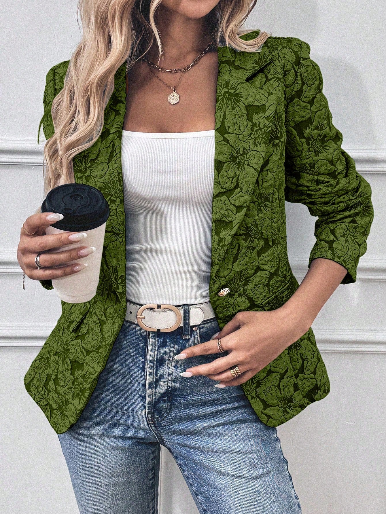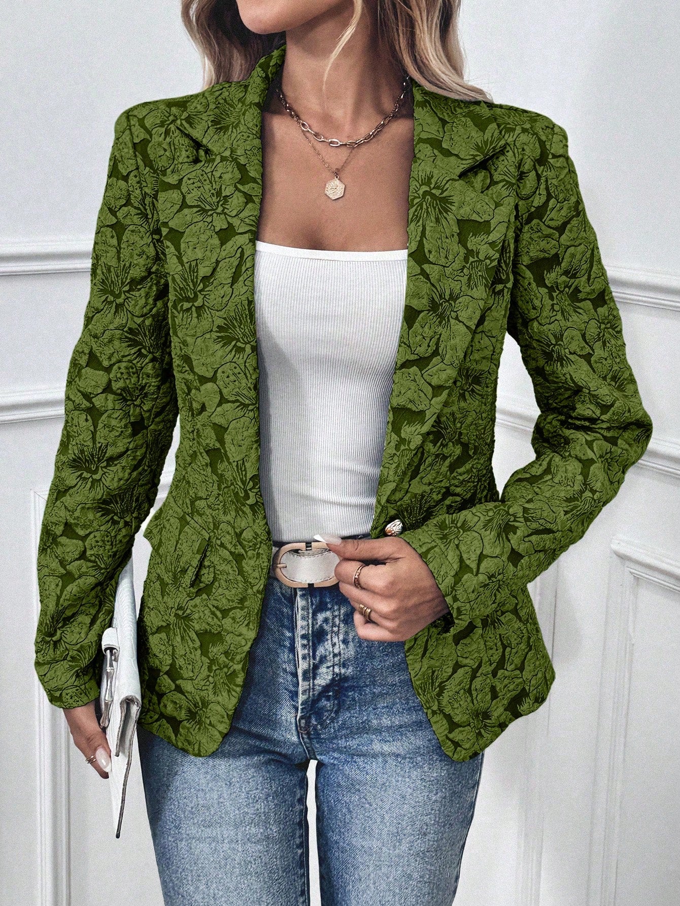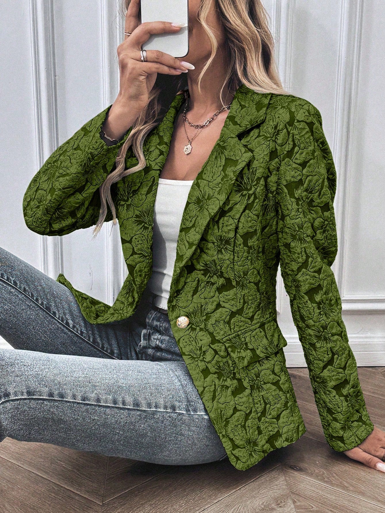Clasi Women Floral Jacquard Lapel Collar Long Sleeve Elegant Blazer Jacket, Autumn