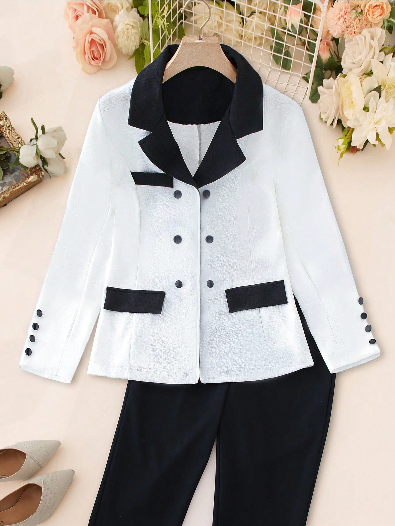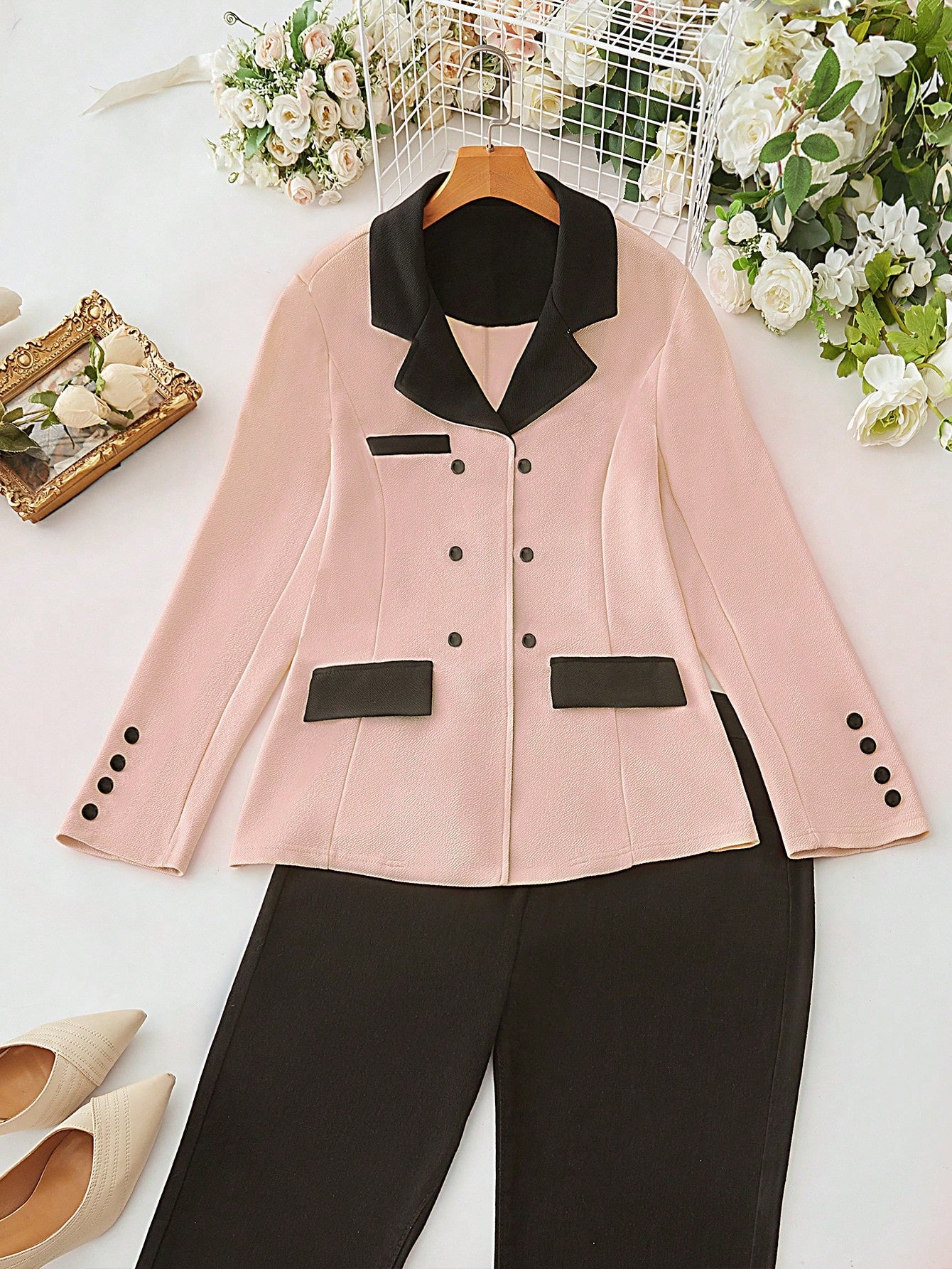 Clasi Women's Colorblock Double Breasted Blazer Coat