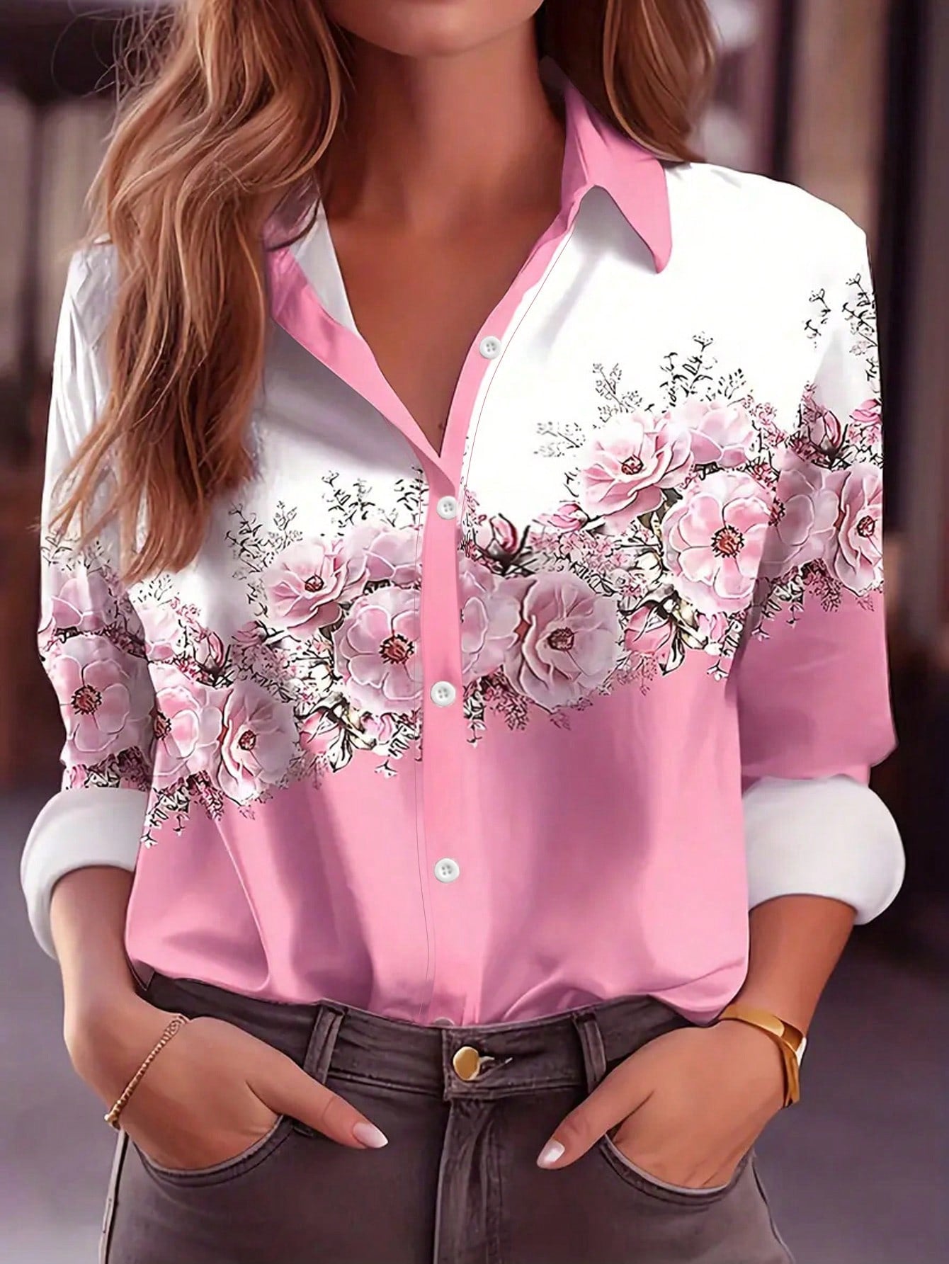 Clasi Women's Heart Pattern Printed Long Sleeve Shirt,Long Sleeve Tops