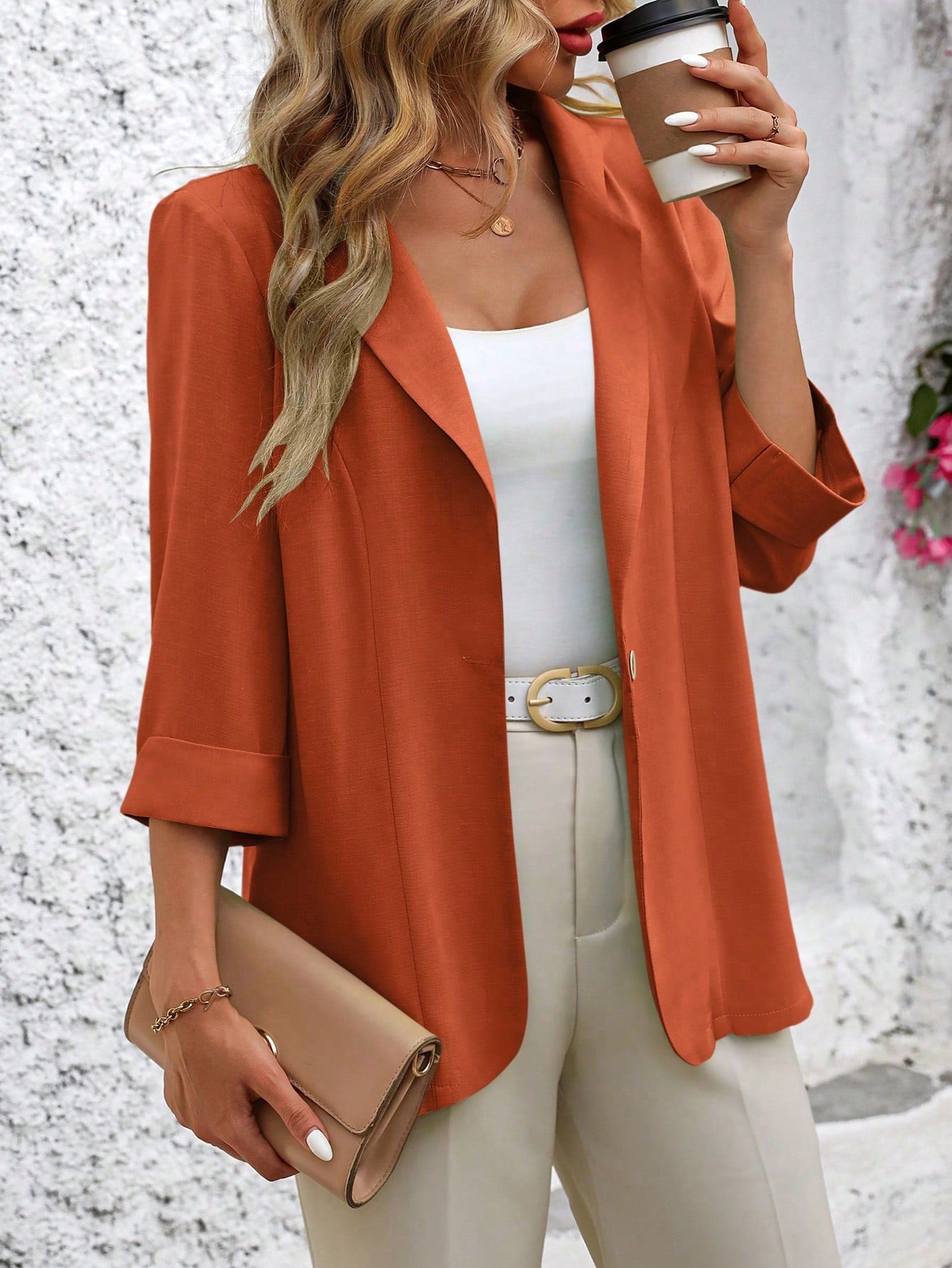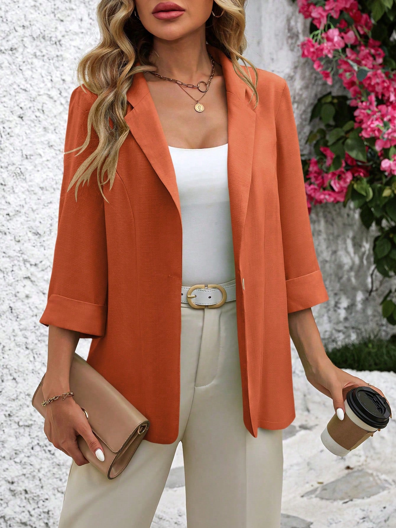 Clasi Women's Solid Color Lapel Neck 3/4 Sleeve Elegant Blazer Jacket, Spring Fall