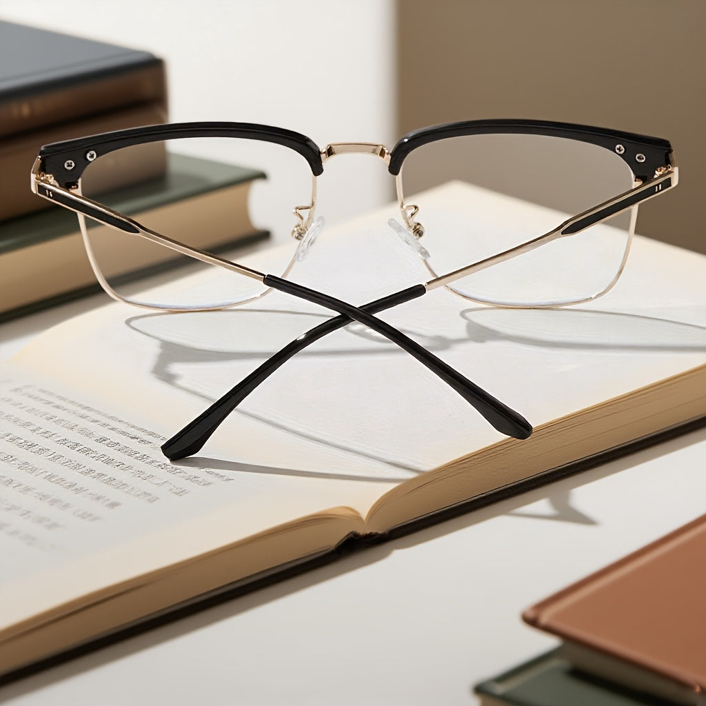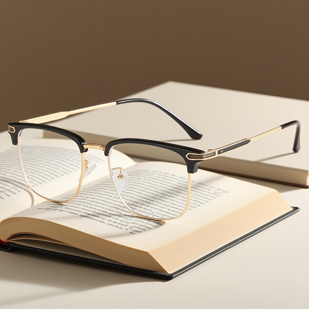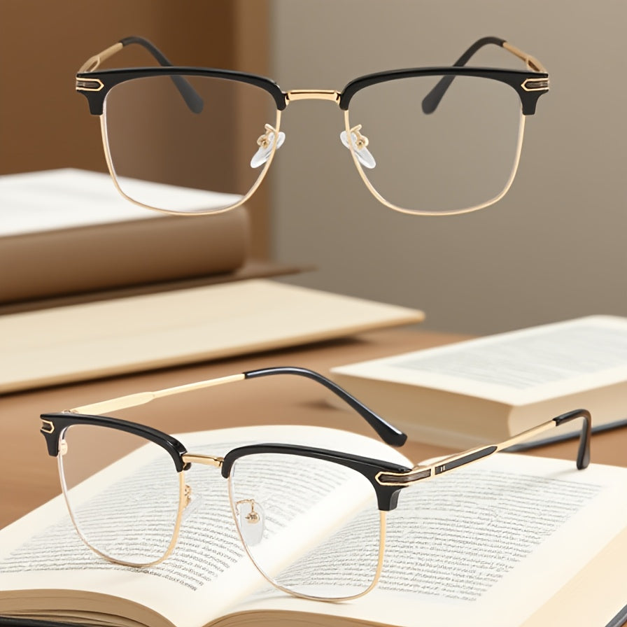 Classic elegant square frame Golden glasses, metal frame glasses, ideal for men and Women's daily school decoration, gifts