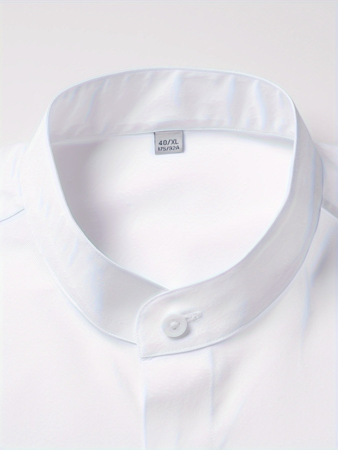 Classic Fit Solid Color Mandarin Collar Dress Shirts - Men's Long Sleeve Casual Button Up Shirt for Formal Occasions, Business Meetings, and Weddings - Breathable, Soft, and Comfortable Fabric, Easy Care and Ironing