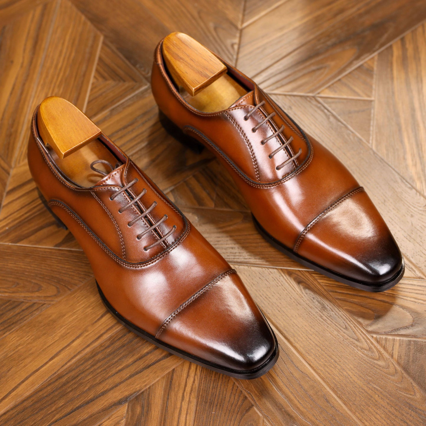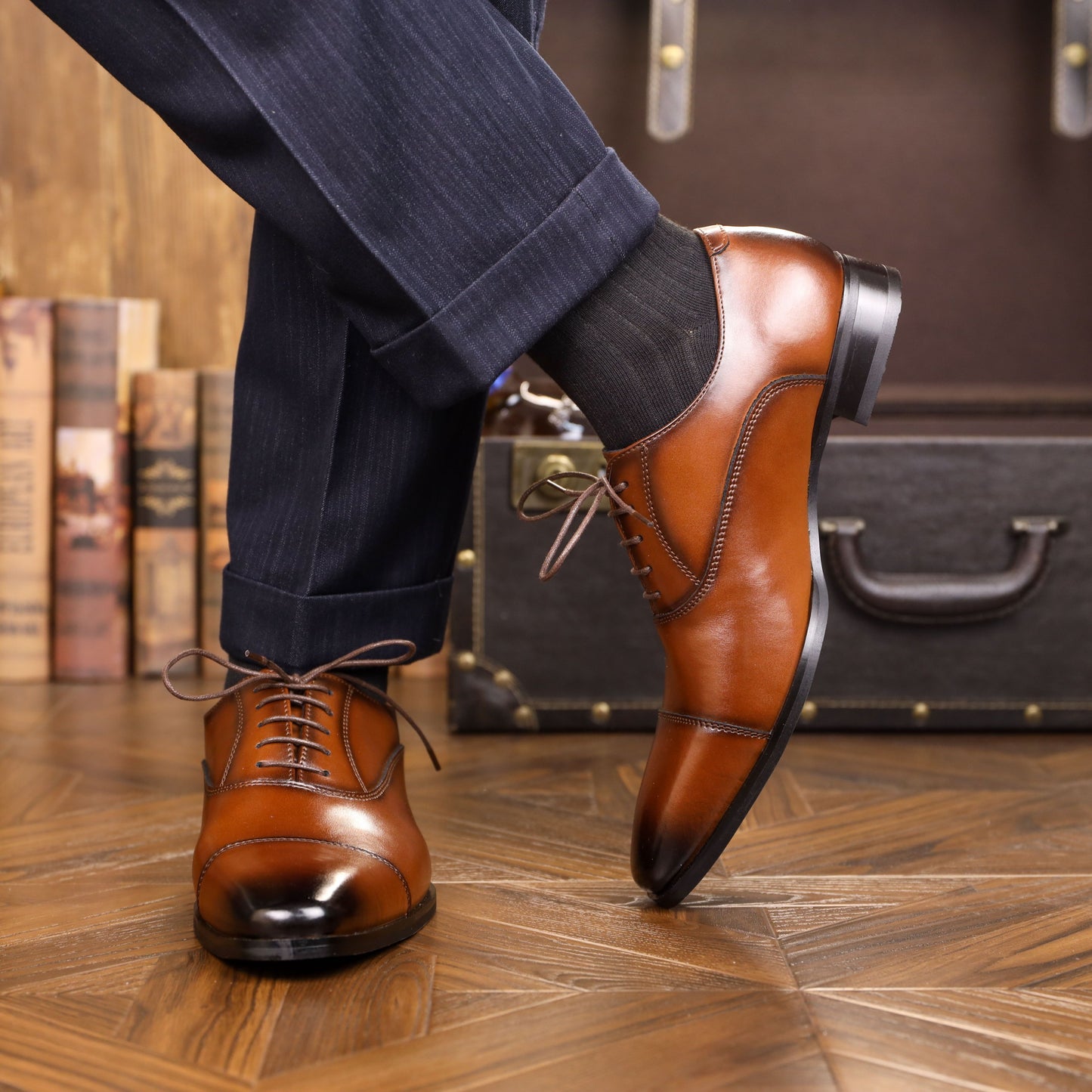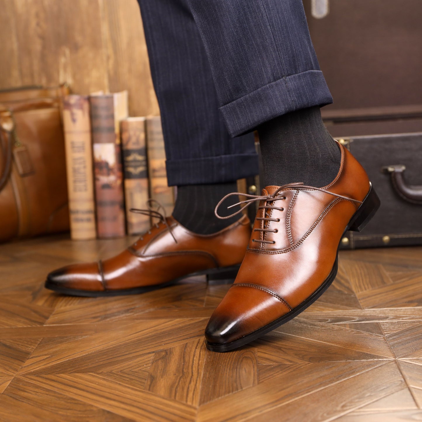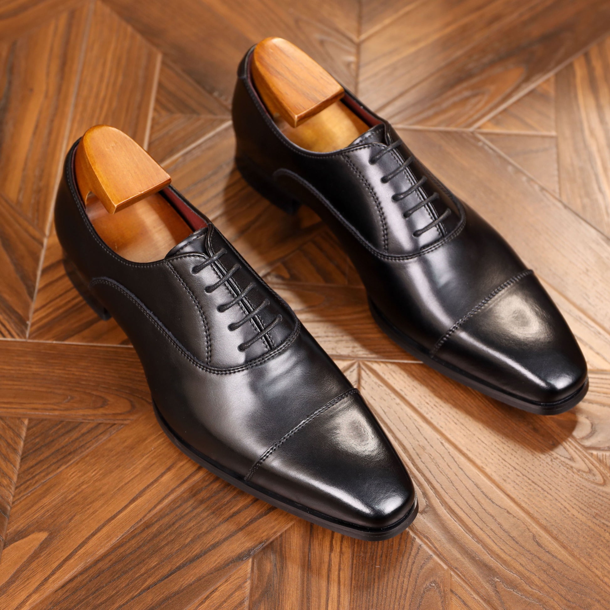 Classic Men's Formal Oxfords | Comfortable Leather Lace-Up Shoes | Non-Slip, Wear-Resistant Sole | For Business & Weddings
