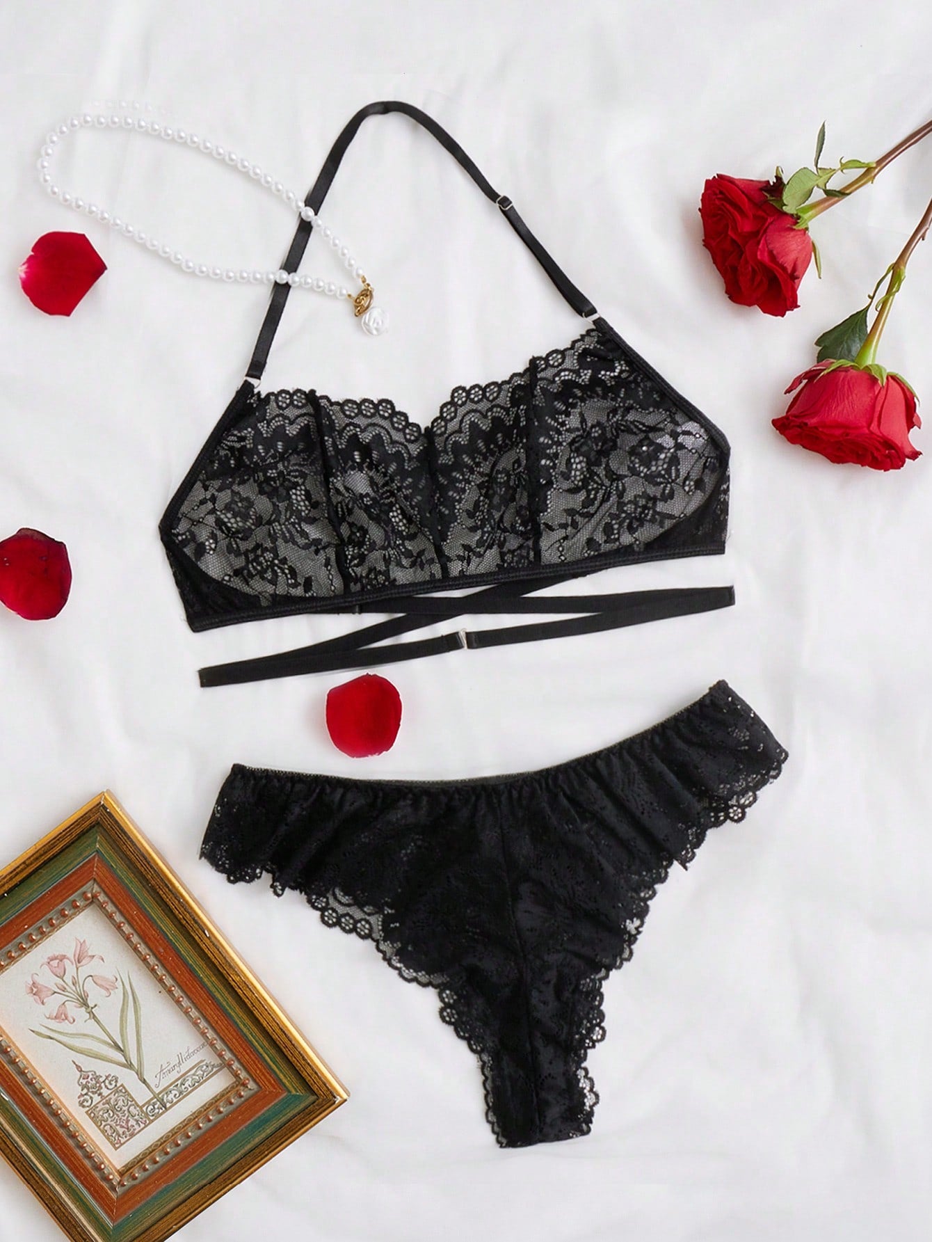 Classic Sexy Floral Lace Wireless Bra Lingerie Set