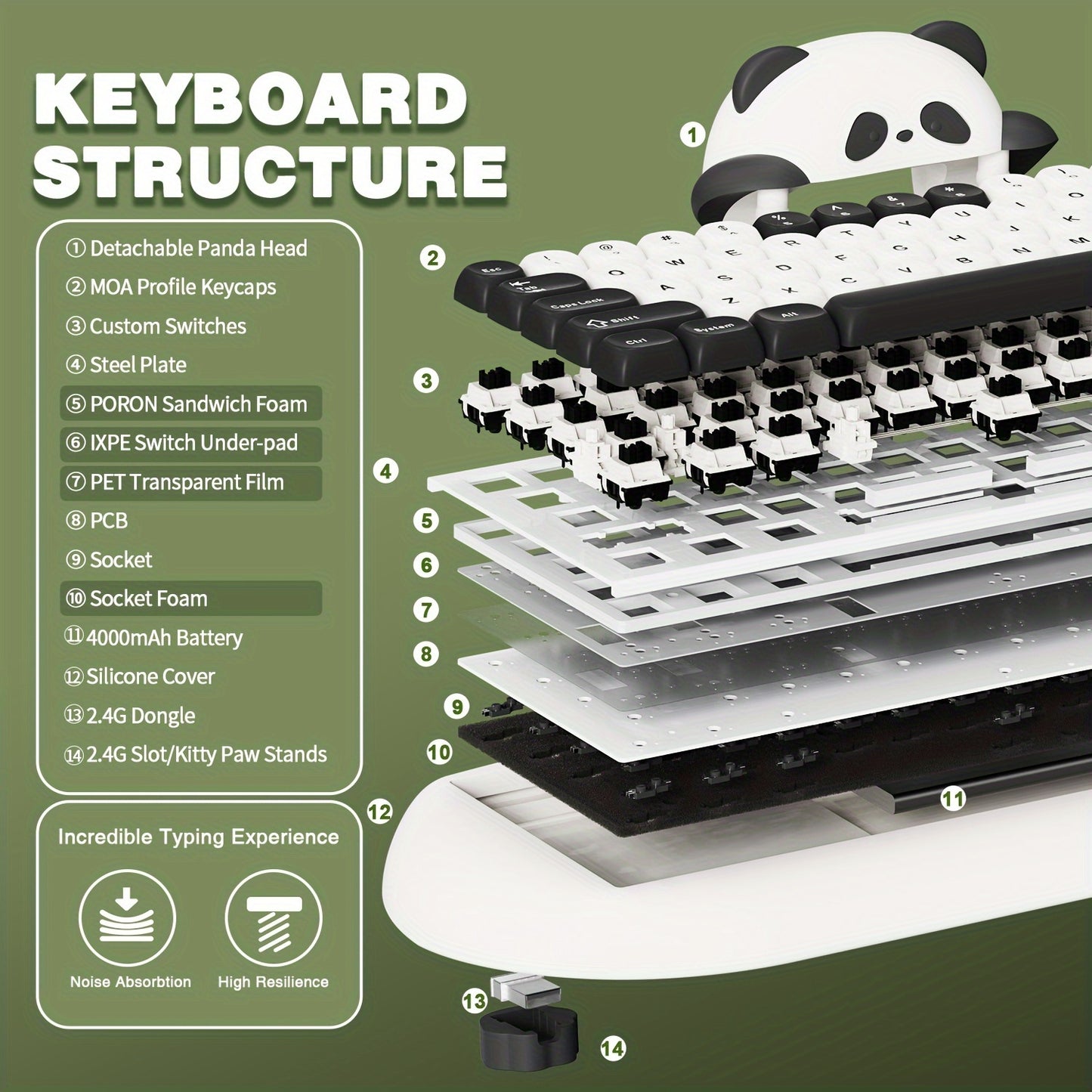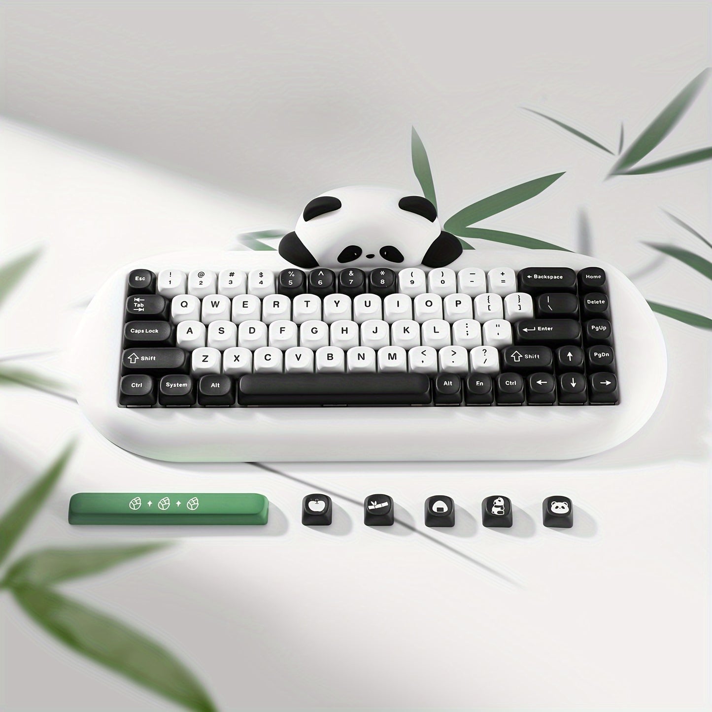 Clavier de jeu mécanique sans fil YUNZII C68 Panda White, 68 touches, clavier mignon avec touches PBT, rétroéclairage RVB, clavier crémeux remplaçable à chaud avec BT5.0/2.4G/filaire pour Win/Mac