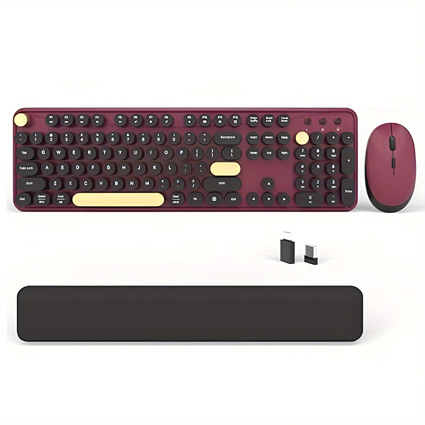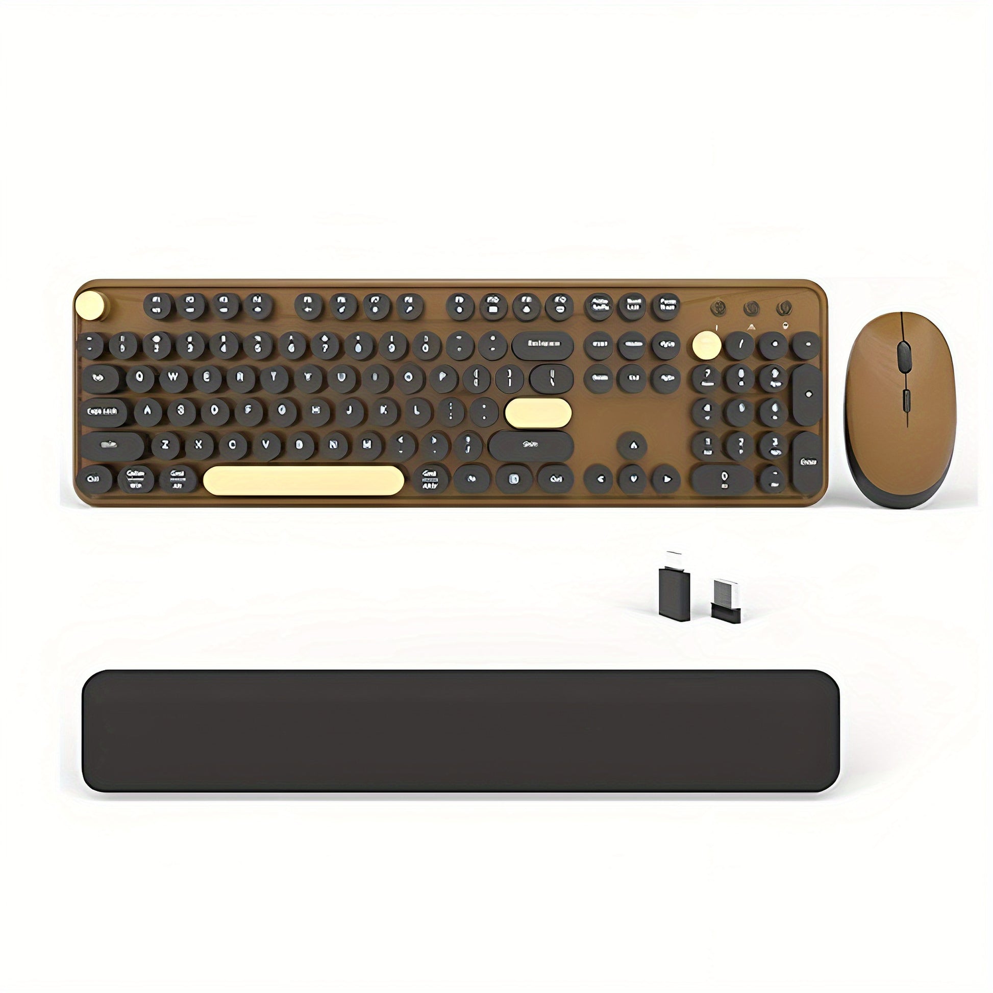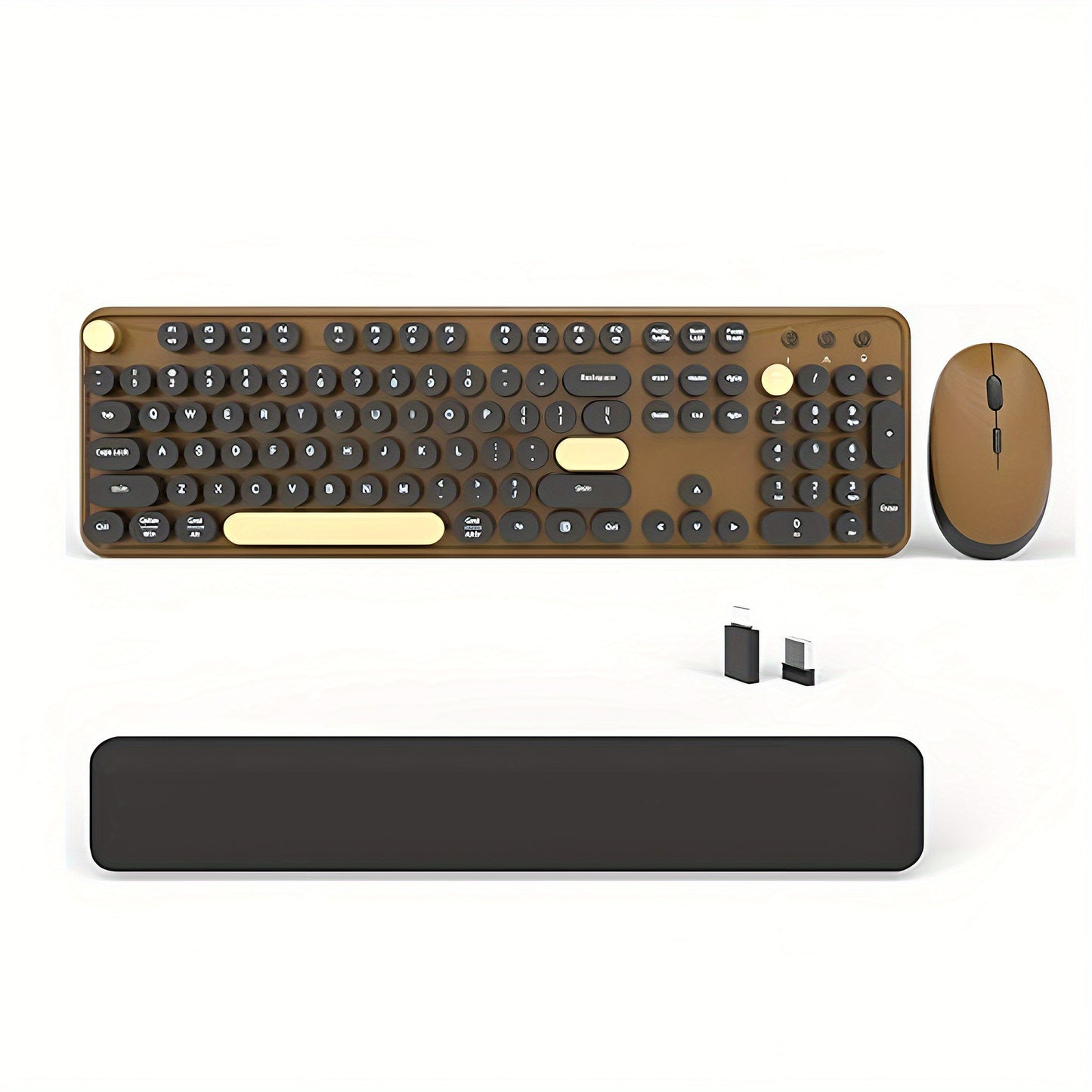 Clavier et souris sans fil pour ordinateur, combo COVEVA, clavier rétro à touches rondes, clavier et souris USB, clavier et souris sans fil avec touches rondes noires 2.4GHz