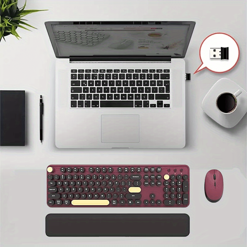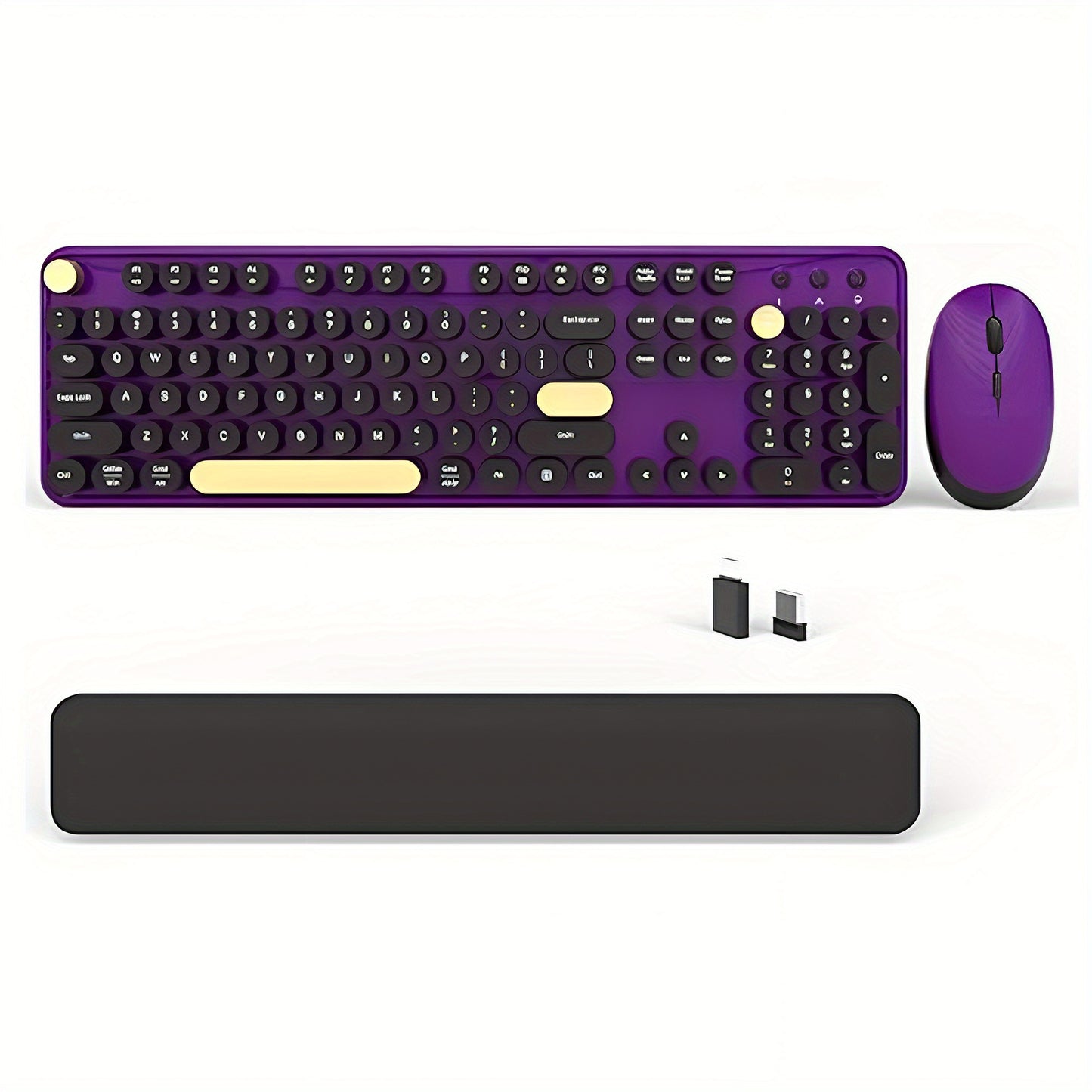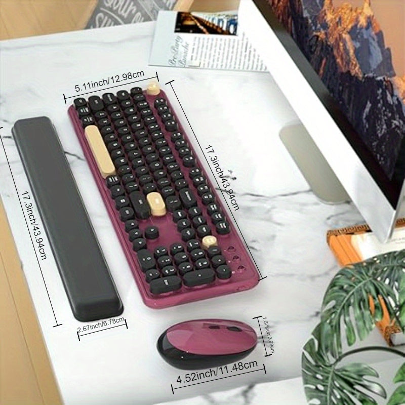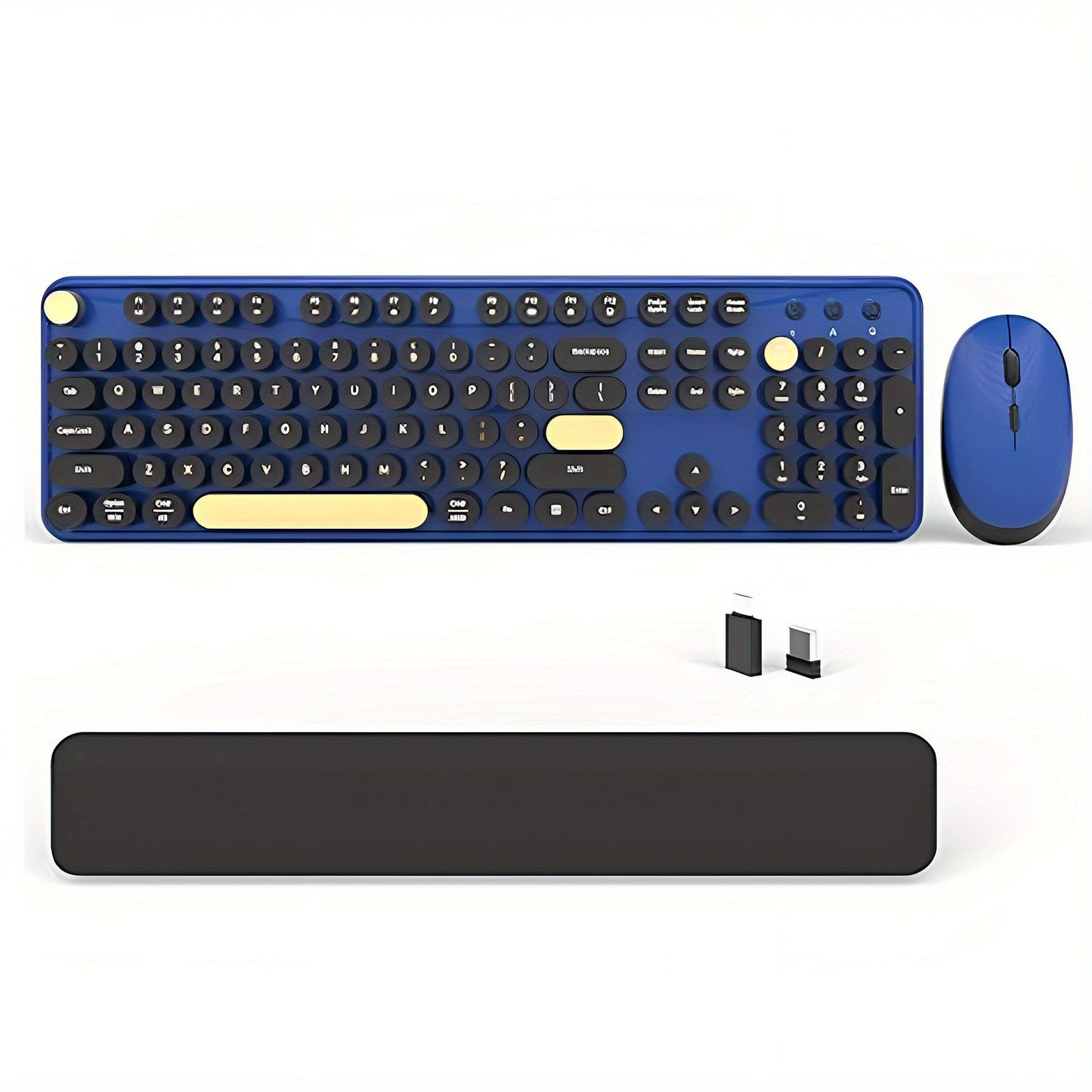 Clavier et souris sans fil pour ordinateur, combo COVEVA, clavier rétro à touches rondes, clavier et souris USB, clavier et souris sans fil avec touches rondes noires 2.4GHz