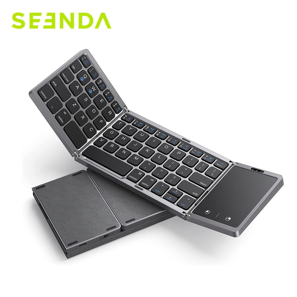 Clavier sans fil pliable Seenda avec pavé tactile, rechargeable, portable, à trois volets, petit clavier pour ordinateur portable, tablette, PC, smartphone, Windows, IOS, Android