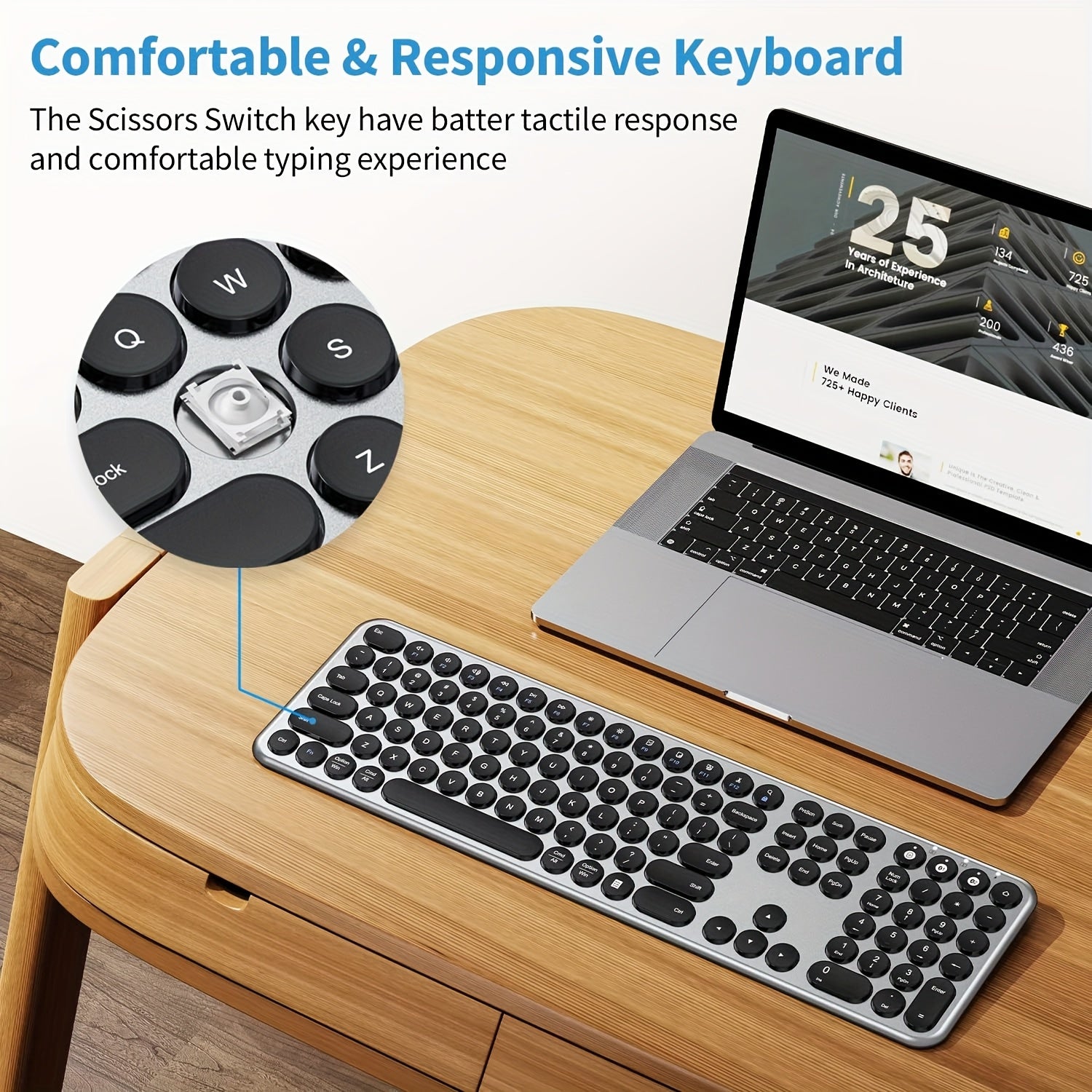 Clavier Sans Fil Rechargeable Compact - Mode Double (BT & 2.4GHz), Connectivité Multi-Appareils, Touches Ergonomiques Rondes, Chargement USB, Compatible avec Windows/iOS/Mac OS/Android, Conception Légère et Silencieuse