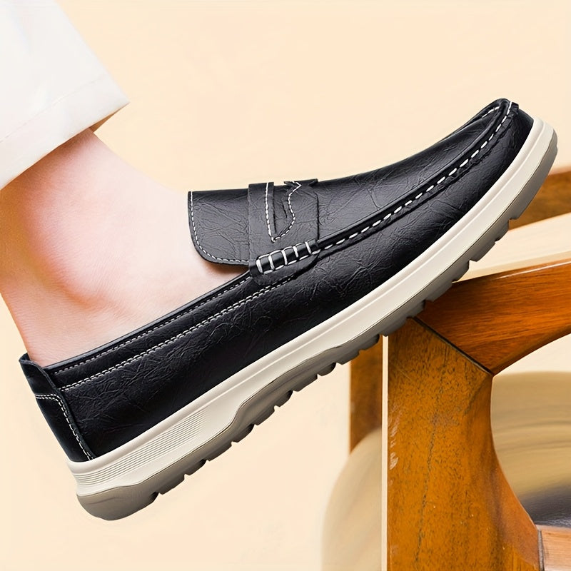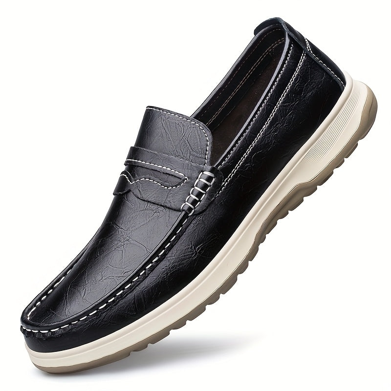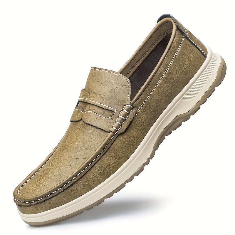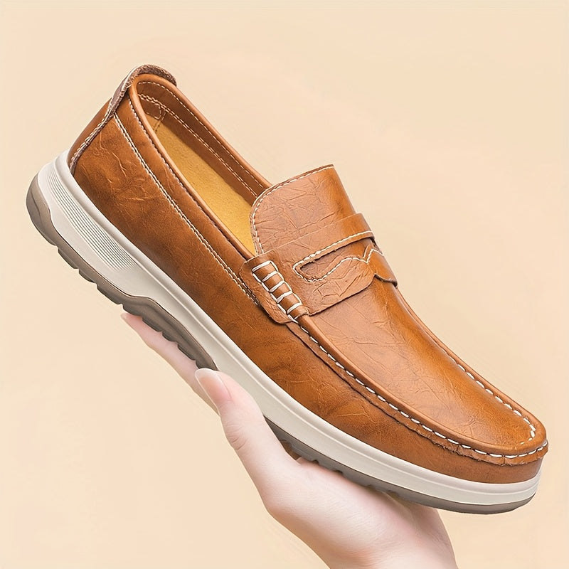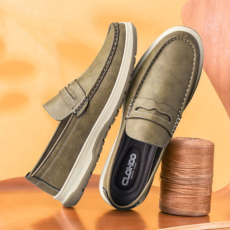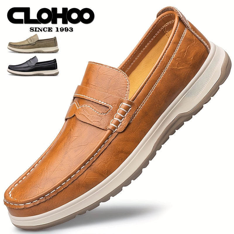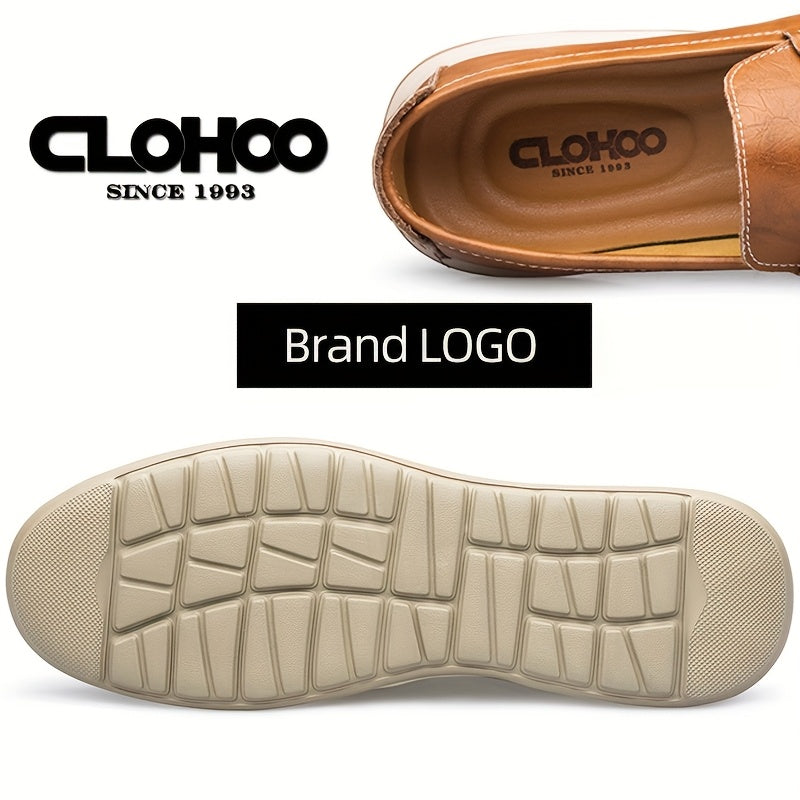 CLOHOO Men's Slip-On Loafers - Second-Layer Genuine Leather Upper, Soft Rubber Sole, Breathable & Comfortable Casual Shoes for Business, Outdoor, Daily Wear - British-Inspired Design, All-Season Versatile Footwear, Stylish Slipons, Durable Construction, C