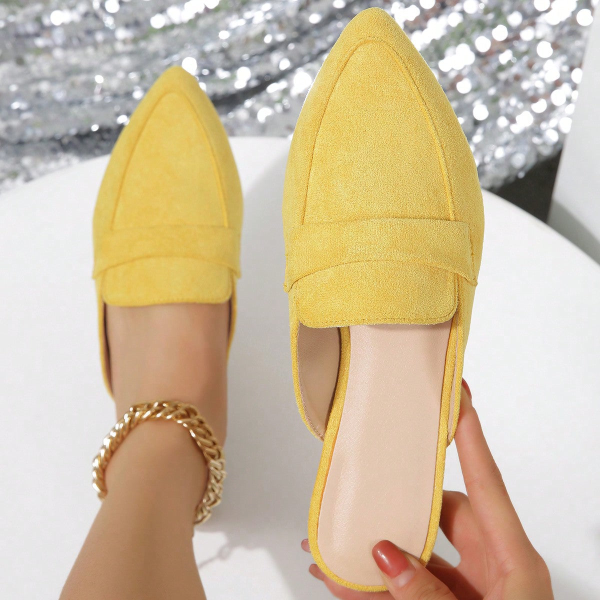 Closed Toe Half Slippers Women Summer Wear Pointed Toe Flat Bottom Slip on Lazy plus Size Sandals Muller Shoes
