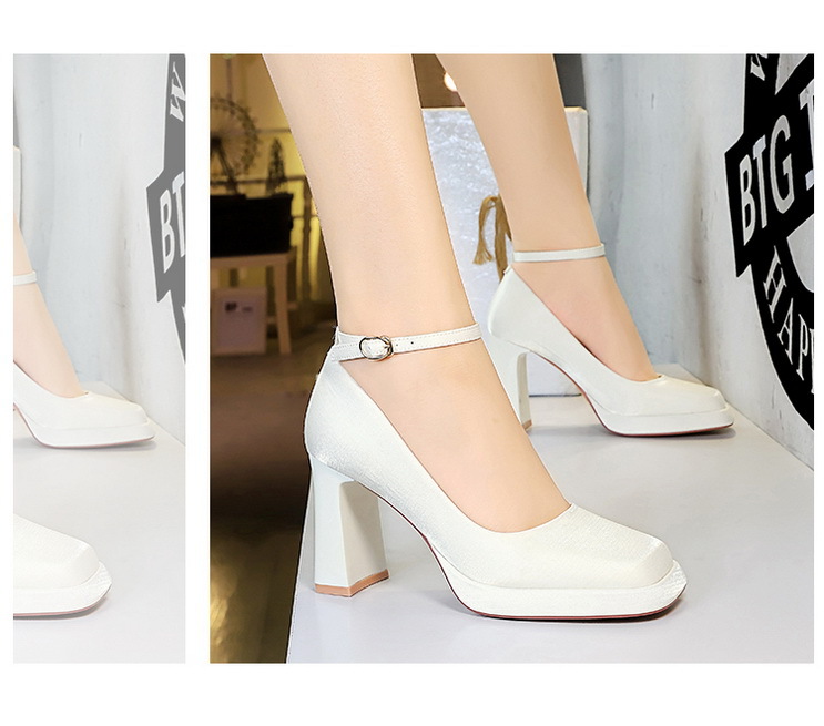 Cocktail High Heels Wedding Shoes Thick Heel Super High Heel Waterproof Platform Satin Ankle Strap Shoes