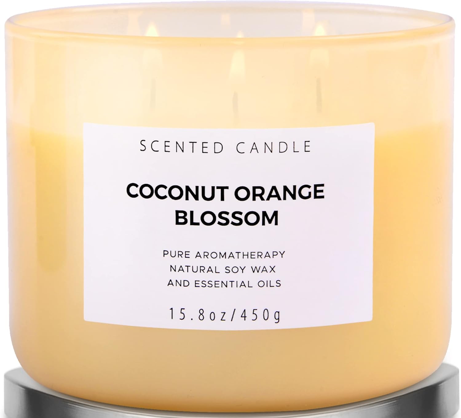 Coconut Orange Blossom 3 Wick Candle | Highly Scented Soy Candles for Home 15.8 oz, Summer & Tropical Scented Candle | Aromatherapy Stress Relief Candle, Relaxing Clean Burning Candle for Women & Men