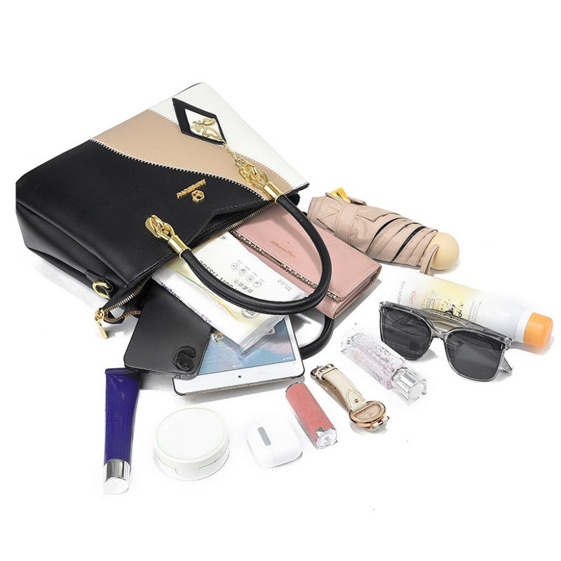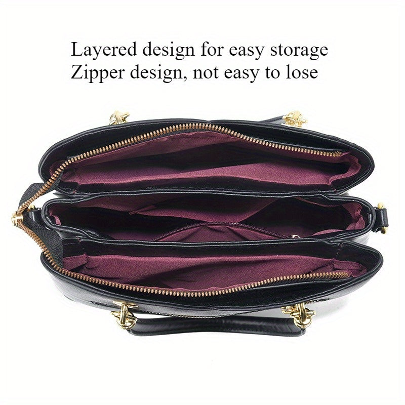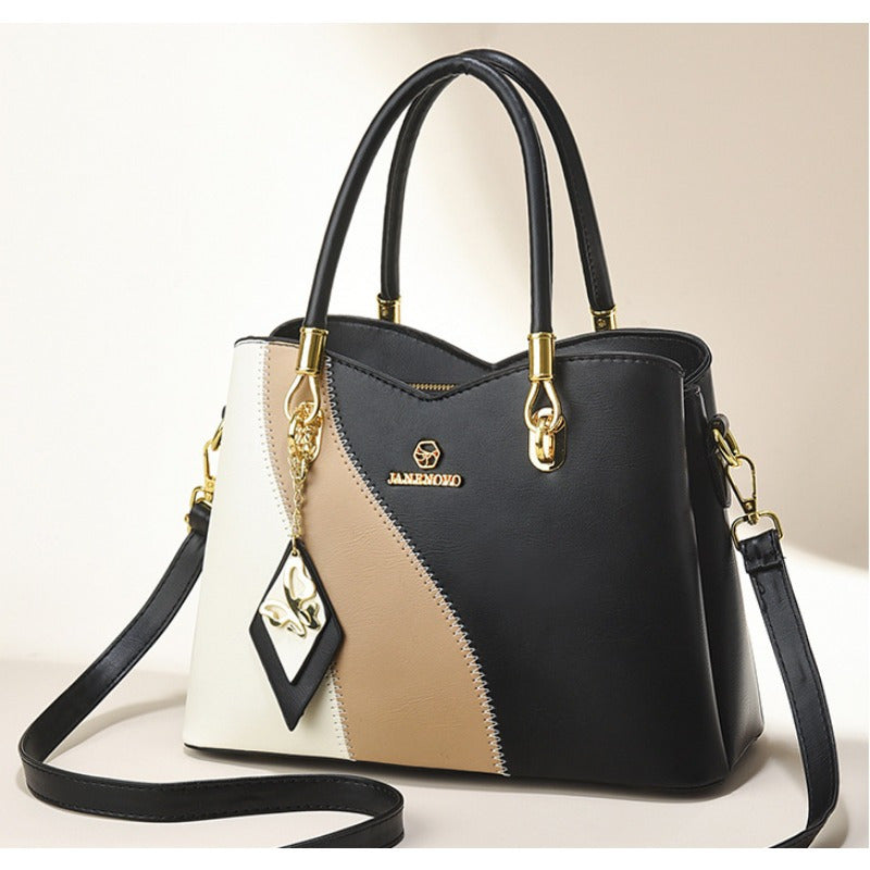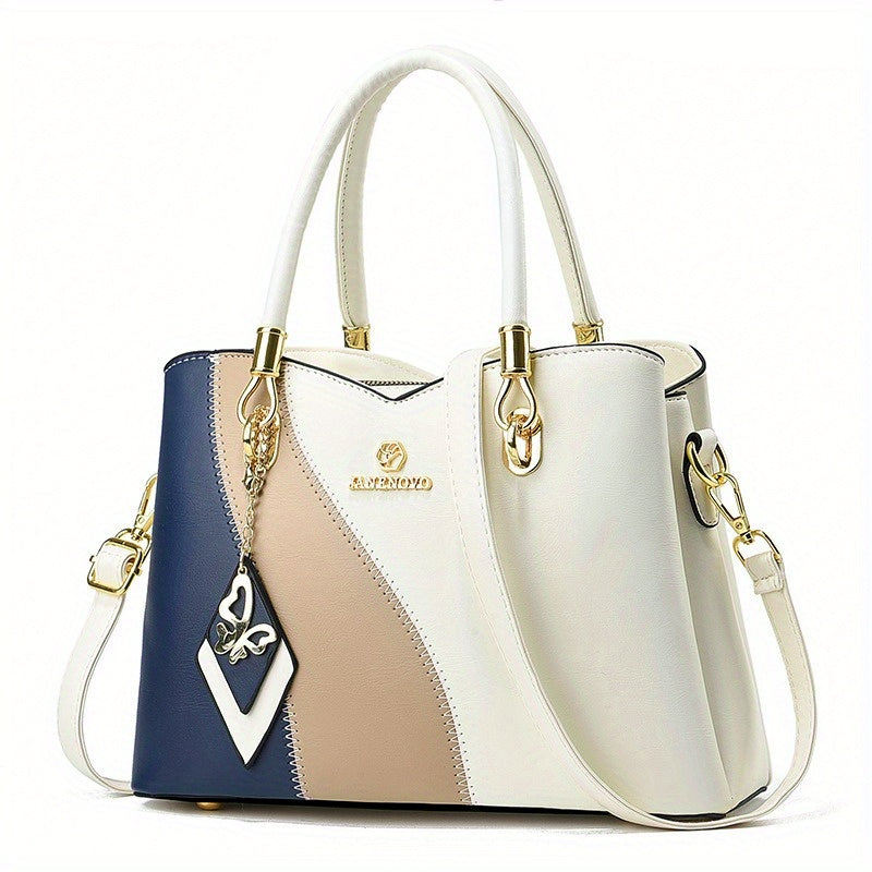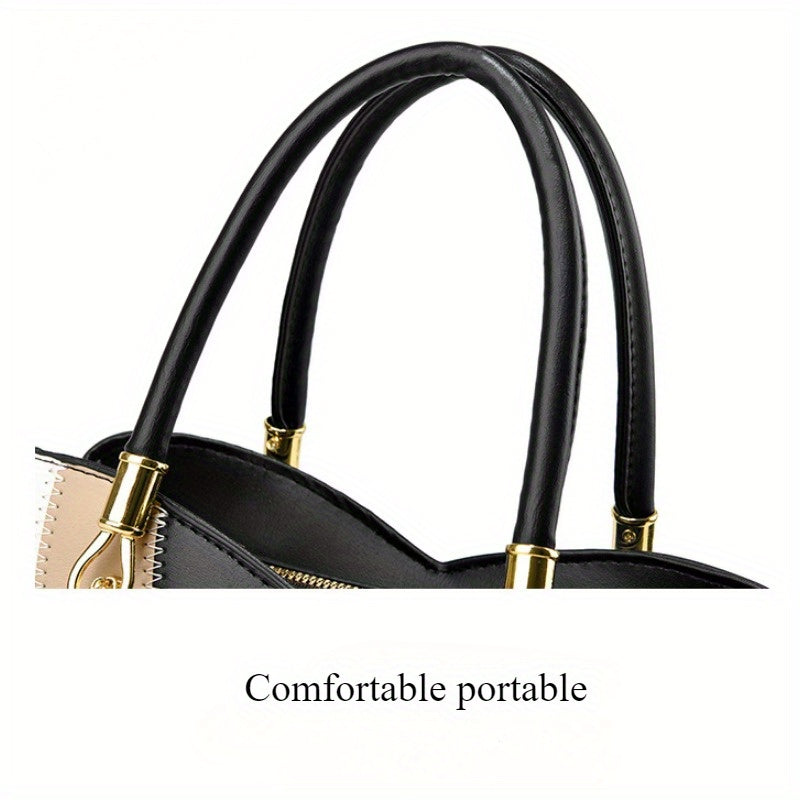 Colorblock Top-Handle Satchel Bag for Women - Faux Leather Purse with Zipper Closure, Large Capacity Shoulder Tote with Messenger Strap and Edge Paint Detail, Fashionable Handbag