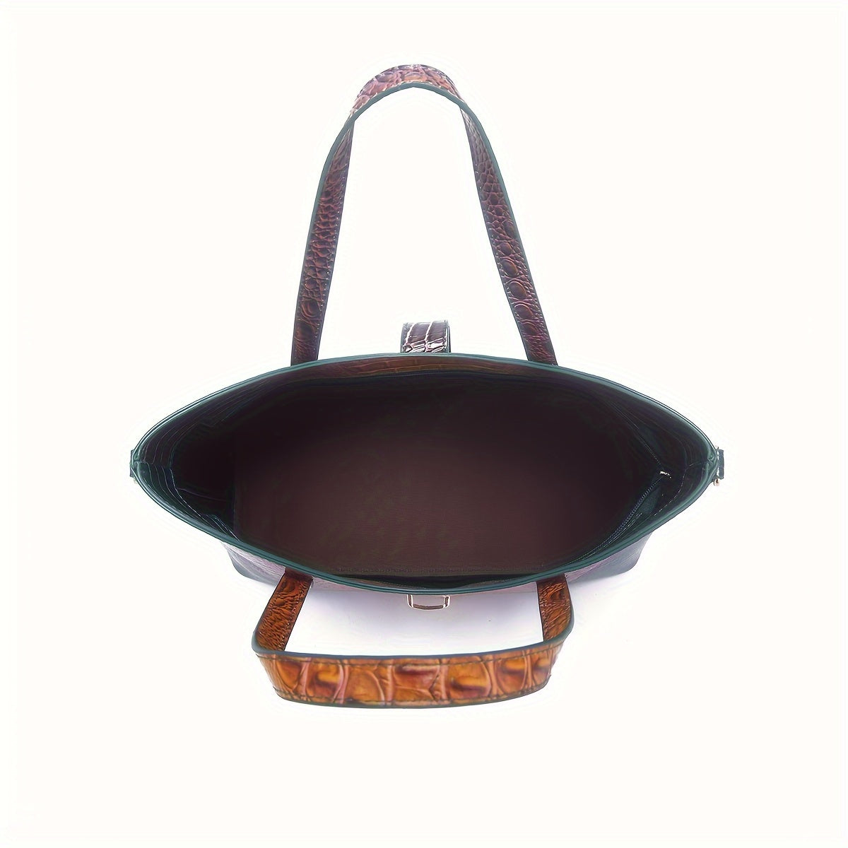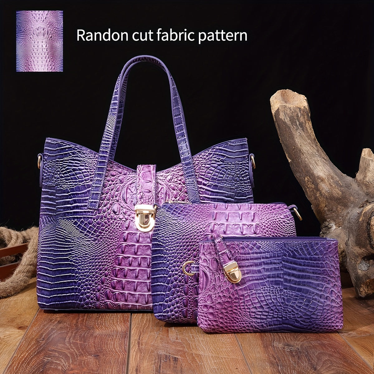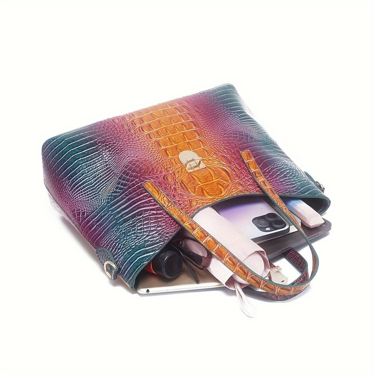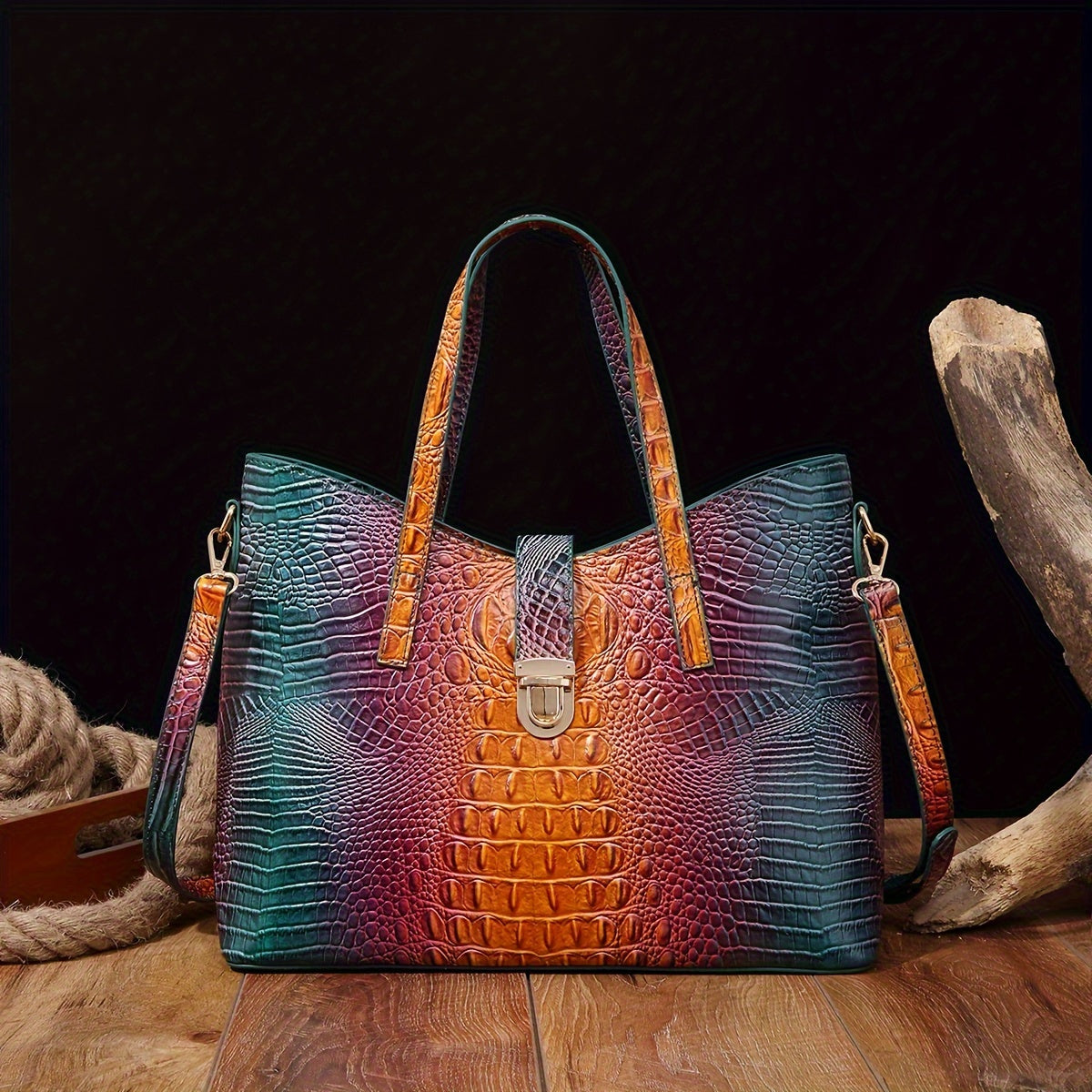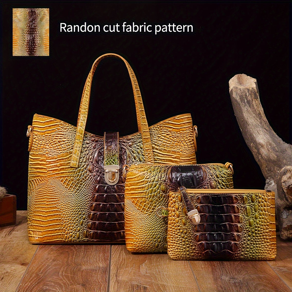 Colorful crocodile pattern three piece set with large capacity tote bag, crossbody bag, handbag