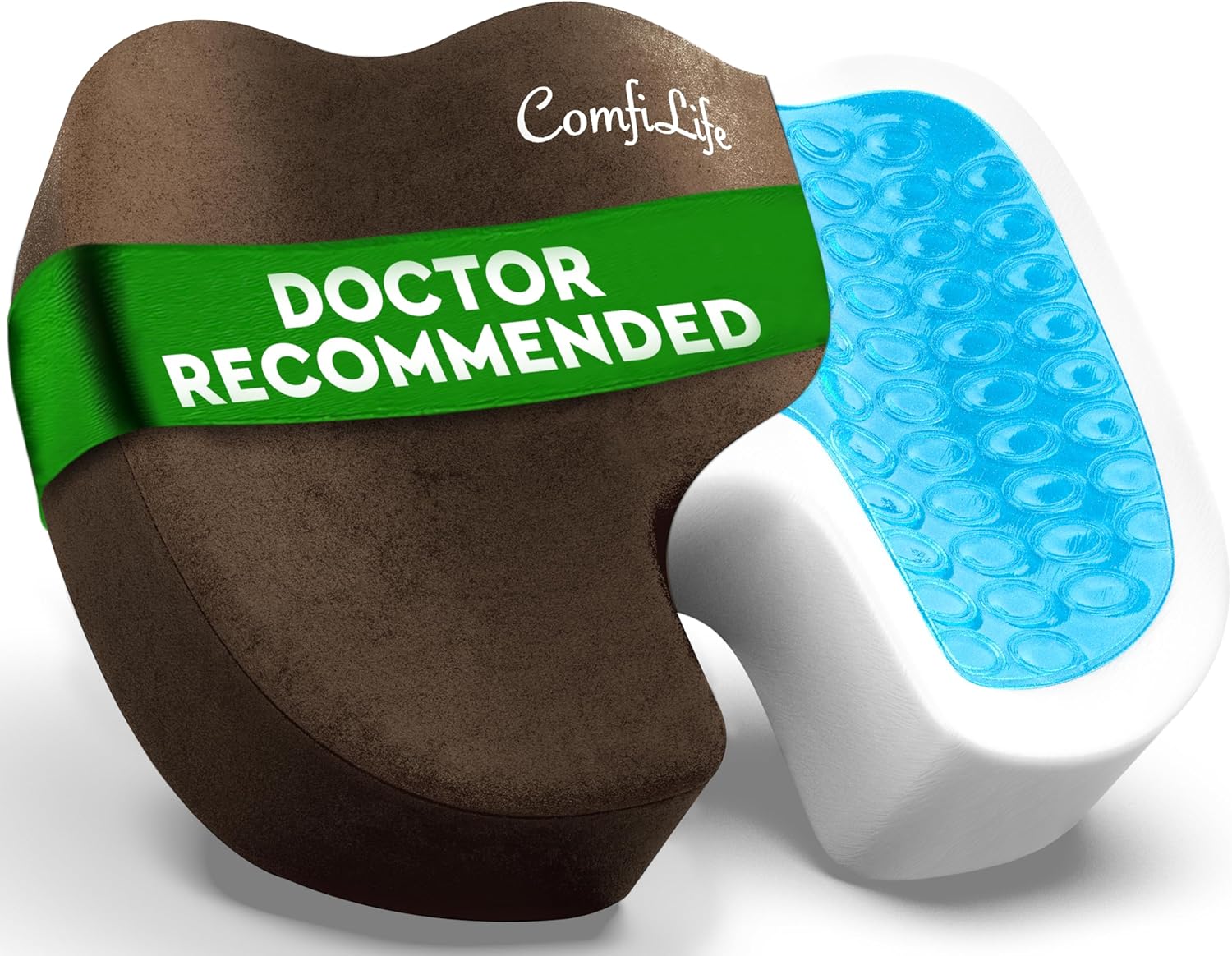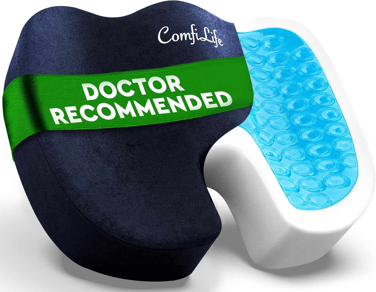 Most Comfortable Gel Memory Foam Cushion On The Market - ComfiLife's all-in-one features are unrivaled: Non-slip rubber bottom, built-in handle for easy transport and machine-washable zippered velour cover for easy cleaning. The ComfiLife Coccyx Cushion is the best gel memory foam seat cushion on the market made of premium quality durable memory foam with cool off gel layer on top for superior comfort