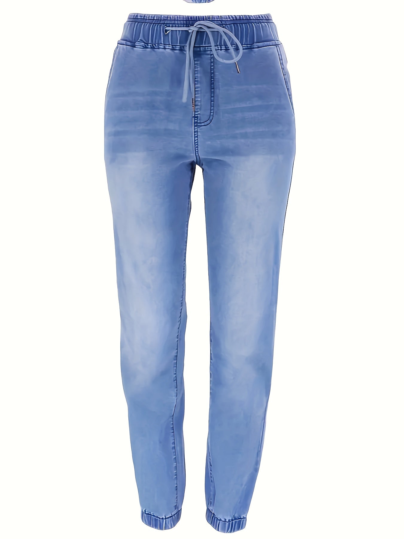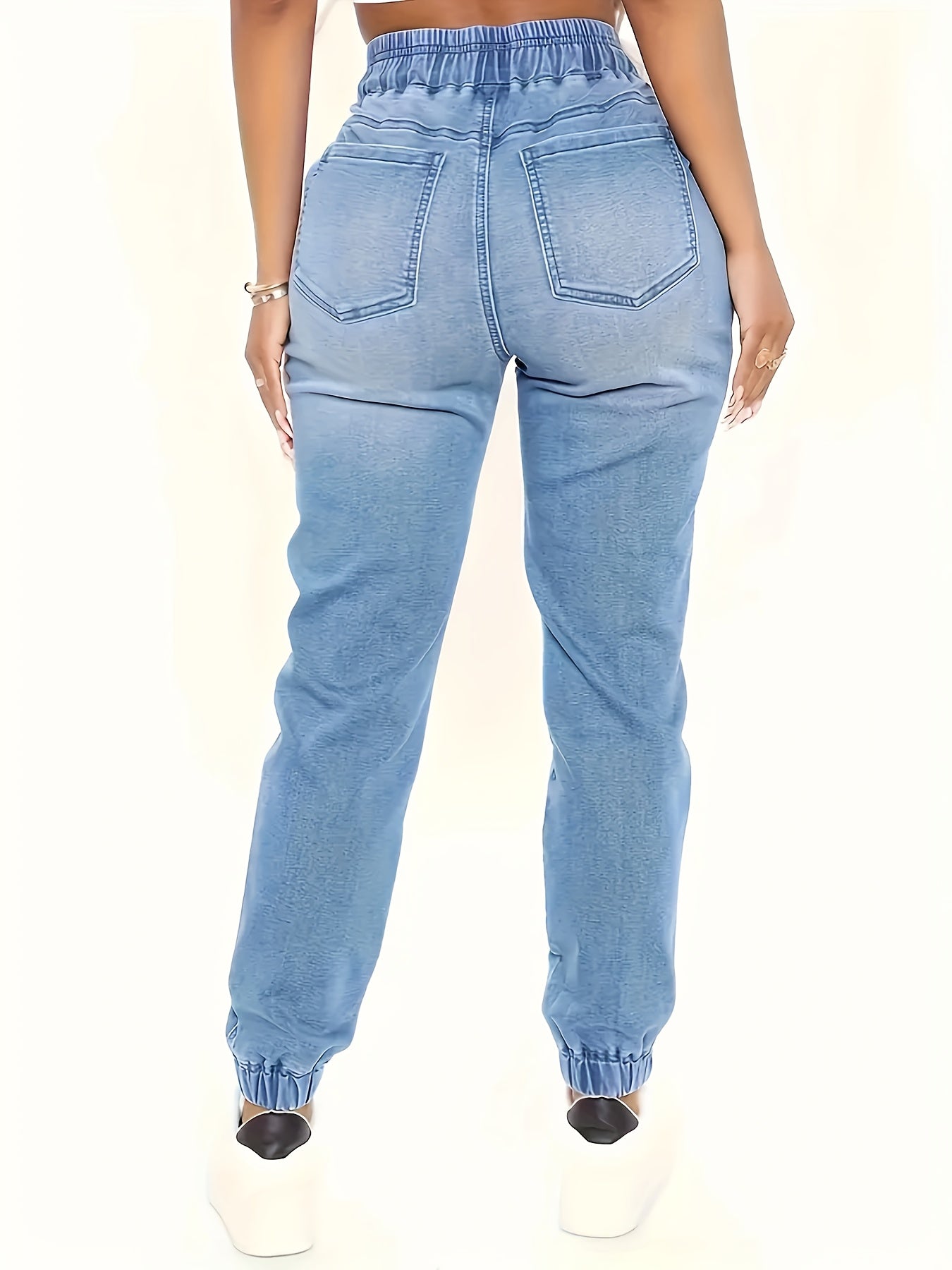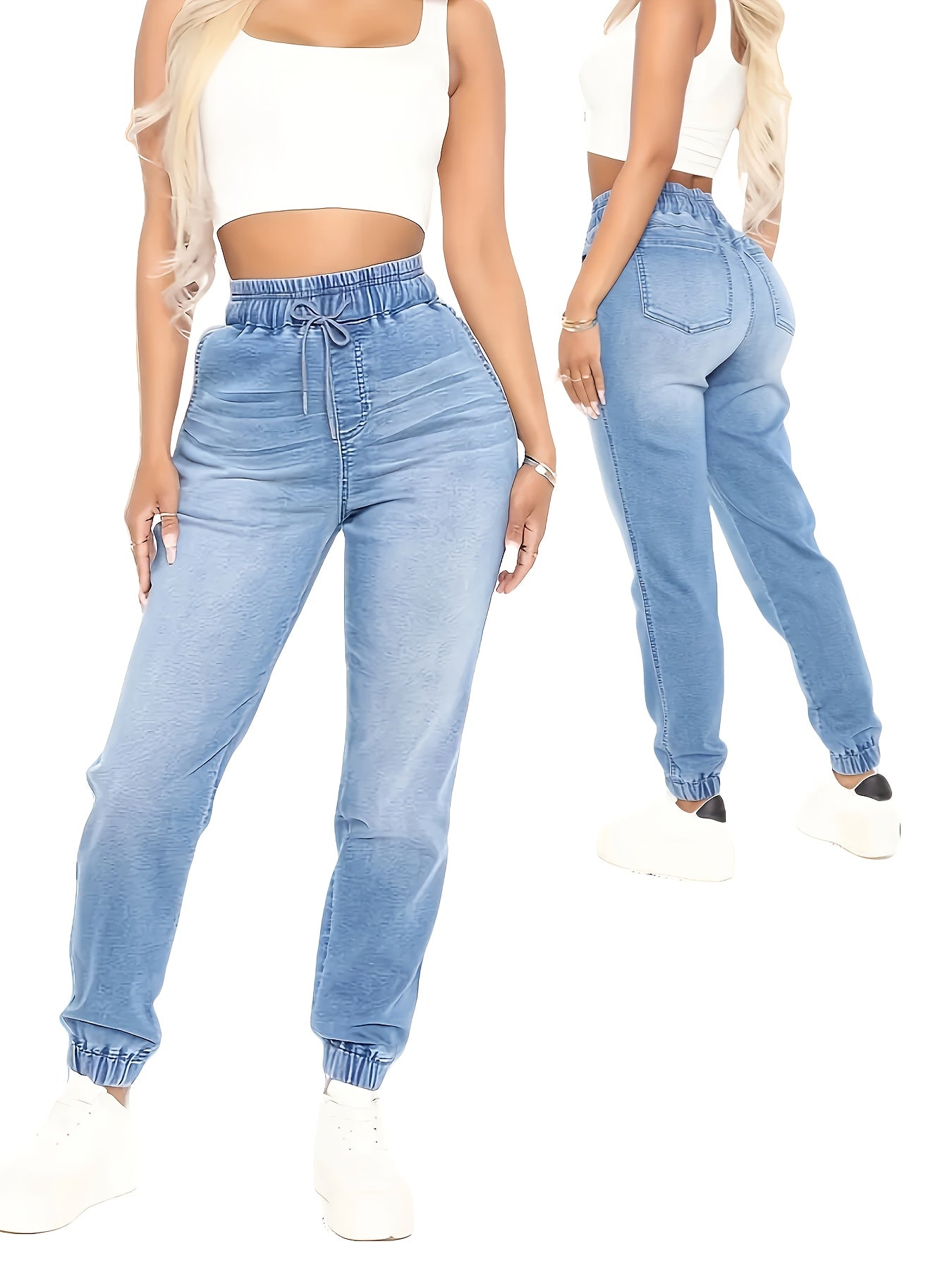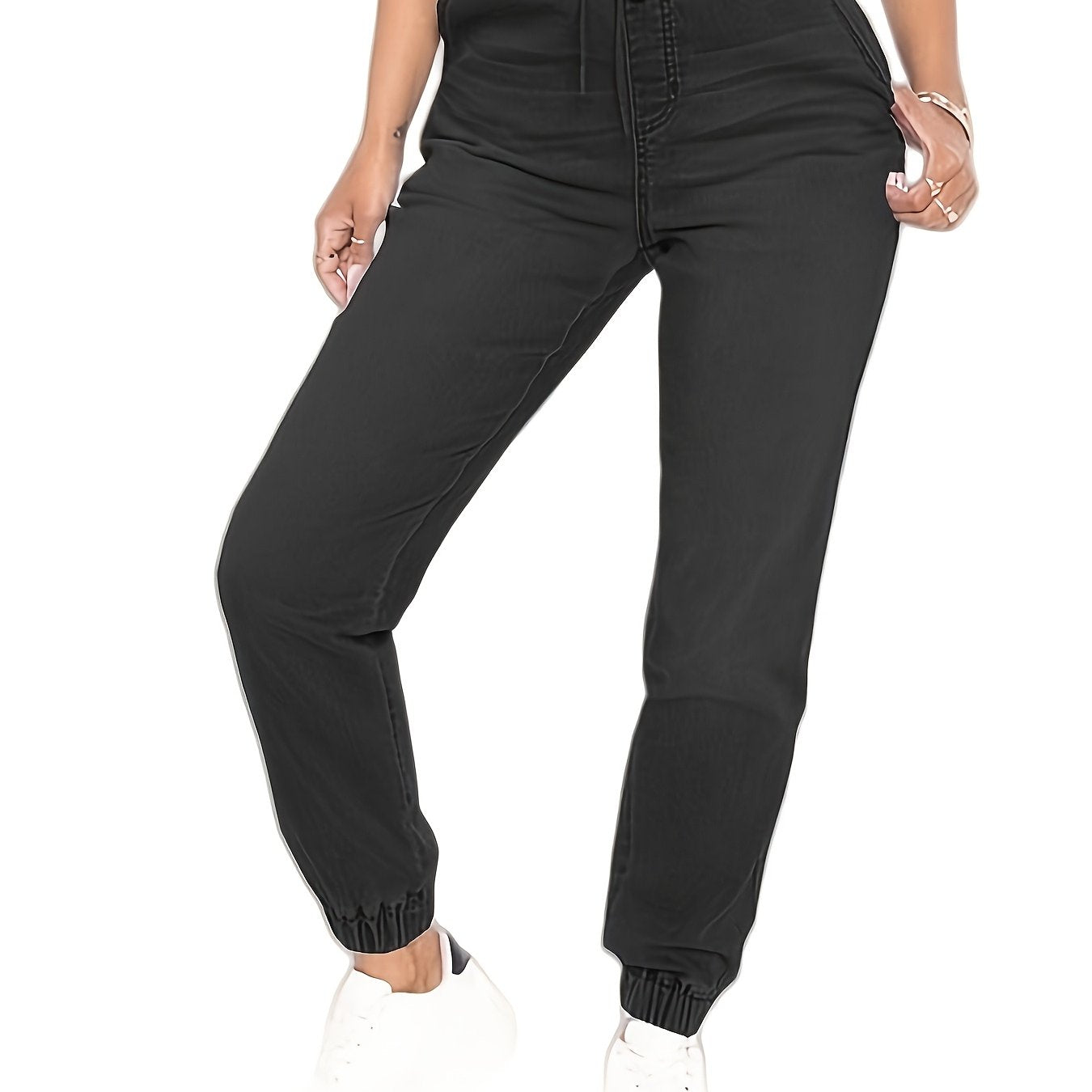 [Comfortable High-Waist Joggers] Comfortable Women's High-Waist Stretch Joggers - Black, Relaxed Fit, Elastic Waistband with Drawstring, Casual Solid Color, Long Style, Medium Stretch Fabric, All-Season Comfort, Machine Washable