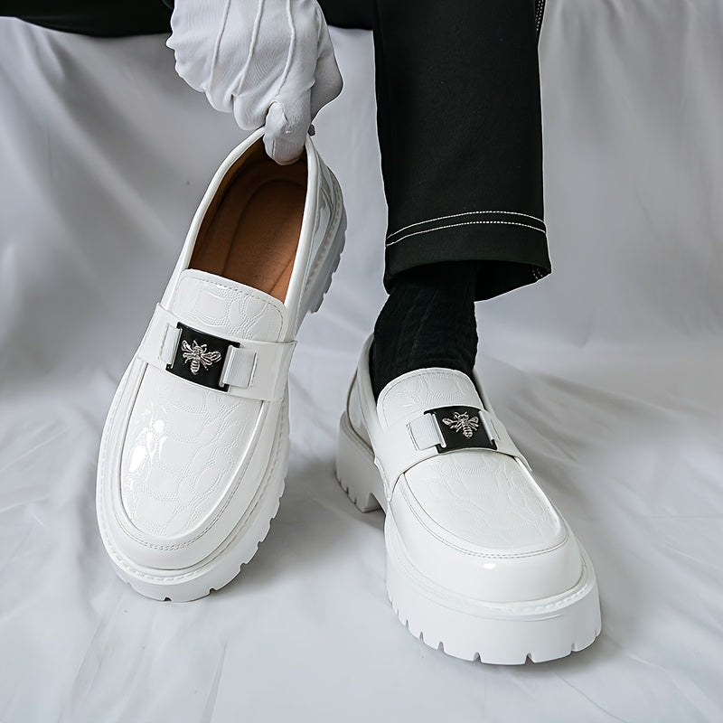 [Comfortable Loafers] Comfortable White Men's Slip-On Loafers | Casual Shoes with Golden-Tone Buckle & Metallic Accents, EVA Sole for Business Casual & Everyday Wear