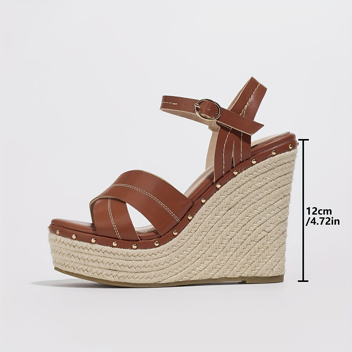 [Comfortable Sandals] Comfortable Women's Casual Faux Cover Wedge Sandals | Thick Platform Sole, Round Toe & Buckle Closure - Summer Shoes for Beach, Outings, Daily Wear