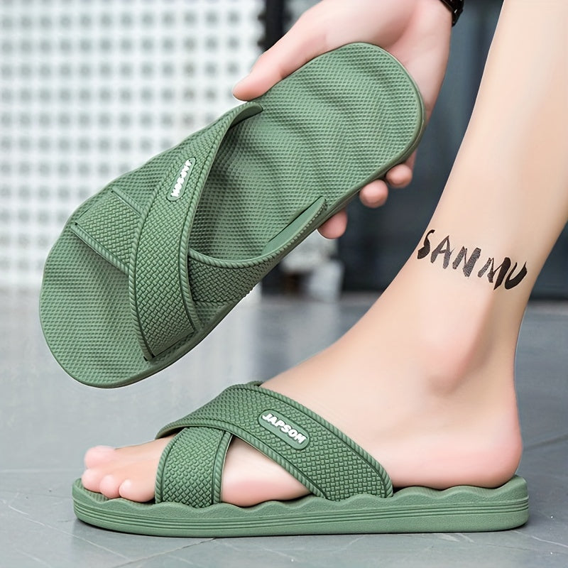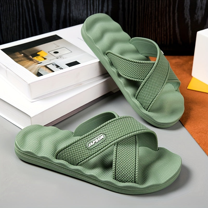 Comfy Men's Solid Color Cross Straps Open Toe Breathable Slippers with Non Slip Durable EVA Sole for Indoor Bedroom Walking