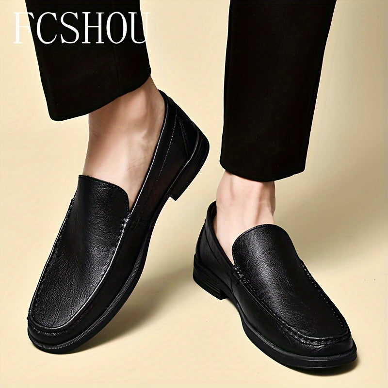 Comfy Non Slip Men's Solid Color Slip On Upper Loafer Shoes with Rubber Sole for Walking