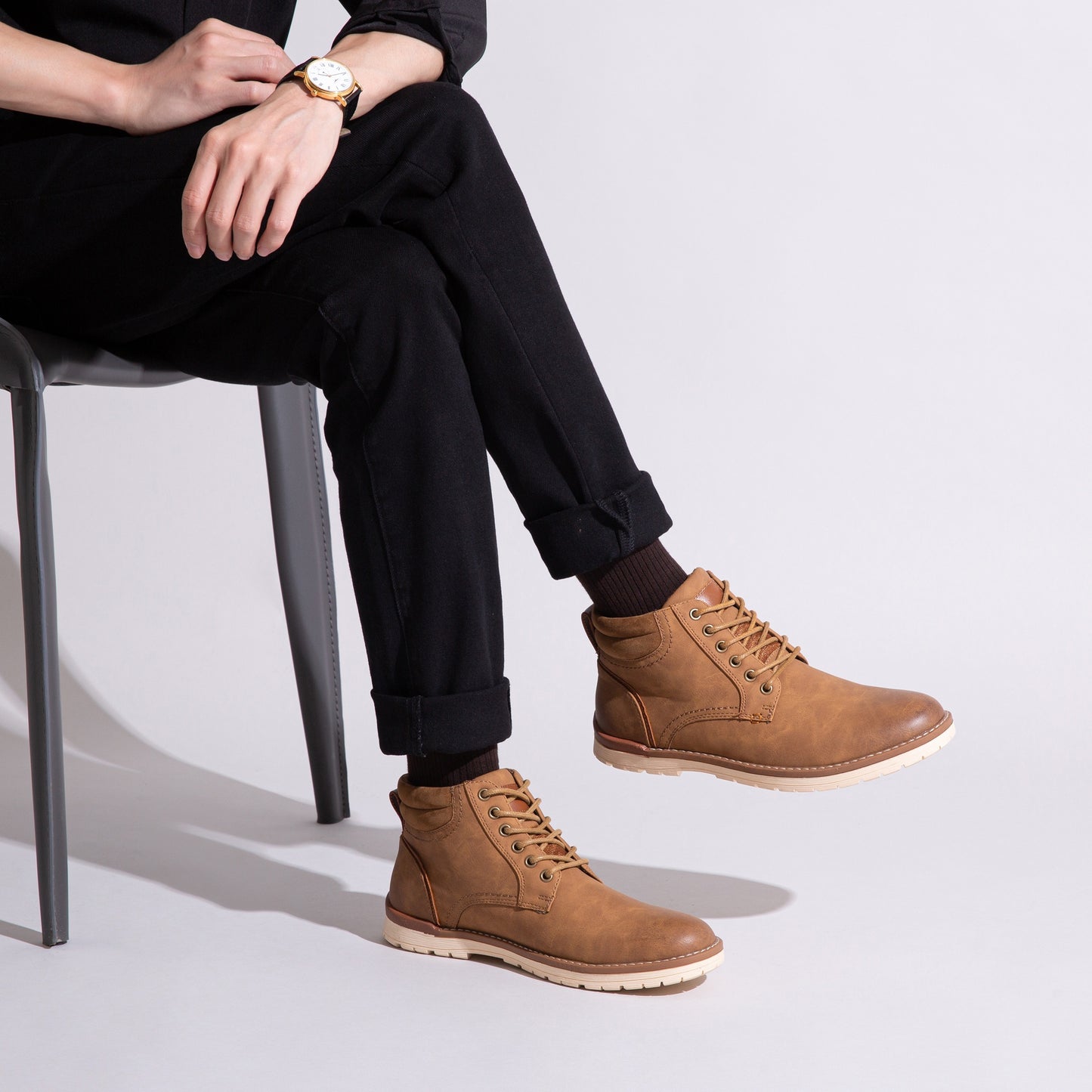 Comfy Non Slip Vintage Solid Colour Men's High Top Riding Boots - Durable Chukka Shoes For Outdoor Activities
