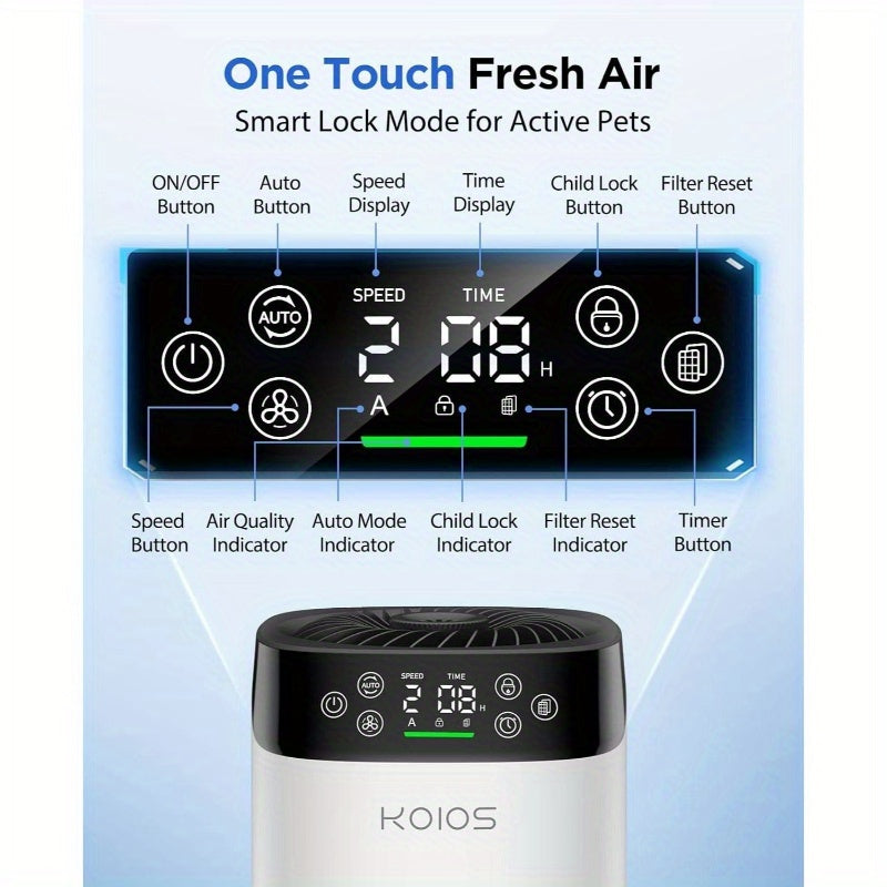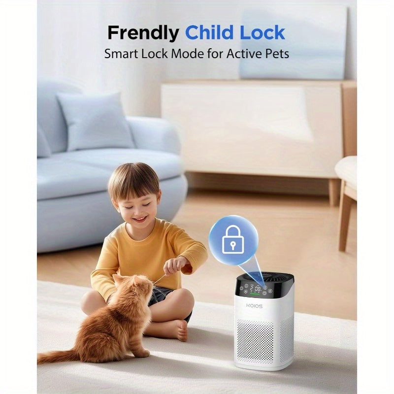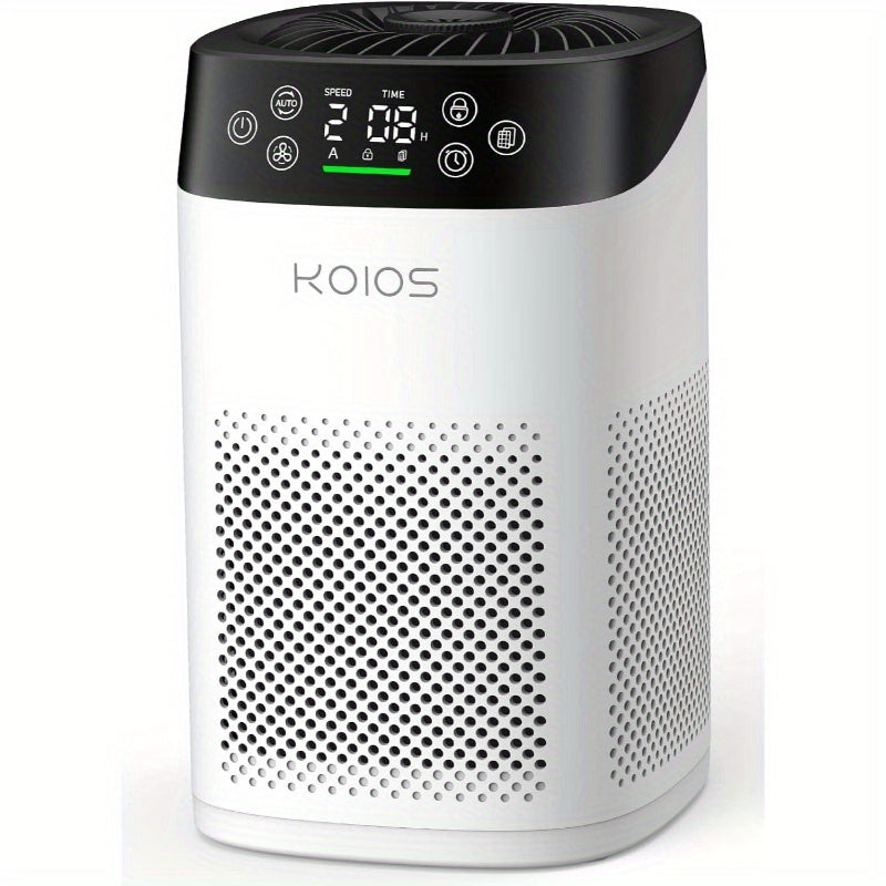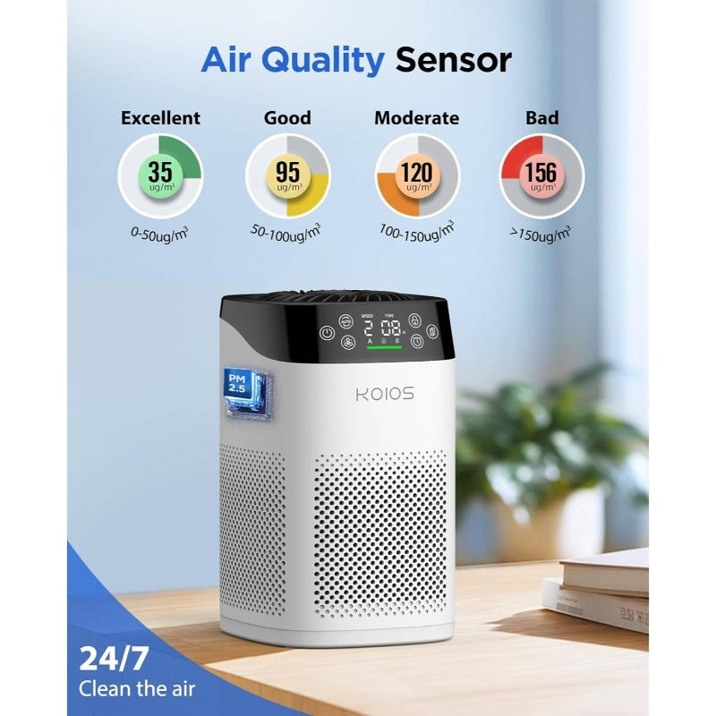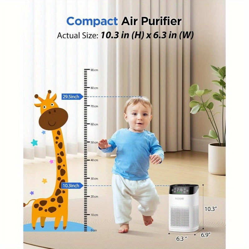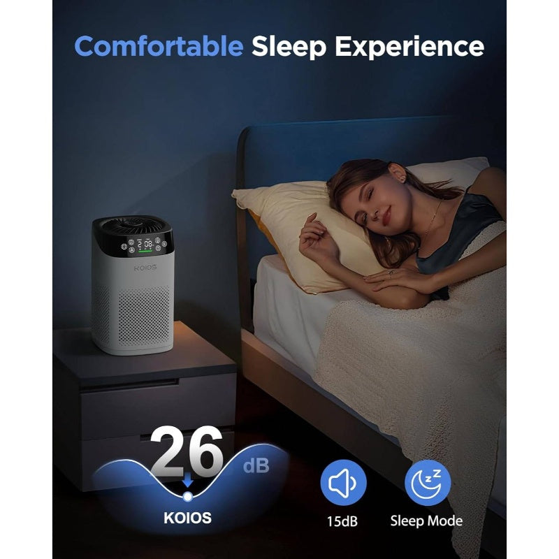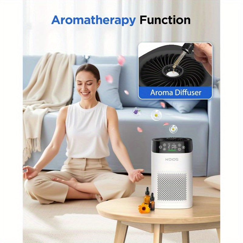 Compact Air Purifier Suitable for Spacious Areas, Effective in Spaces Up to 1000 Square Feet. Features HEPA Filtration for Bedrooms, Operates at a Quiet 15Db in Sleep Mode, Includes an Air Quality Sensor, And Offers Aromatherapy Benefits. Ideal for Elimin