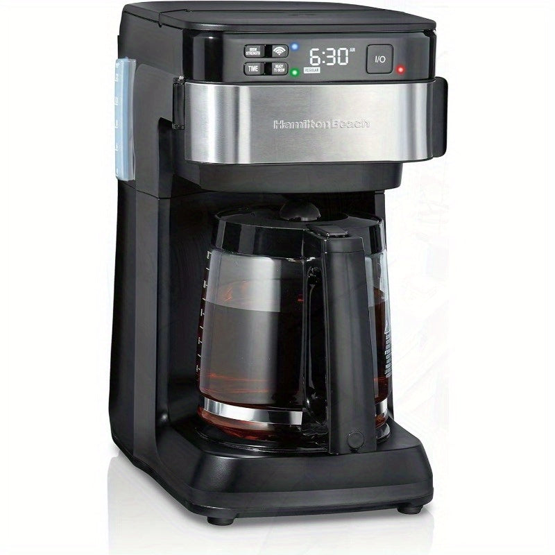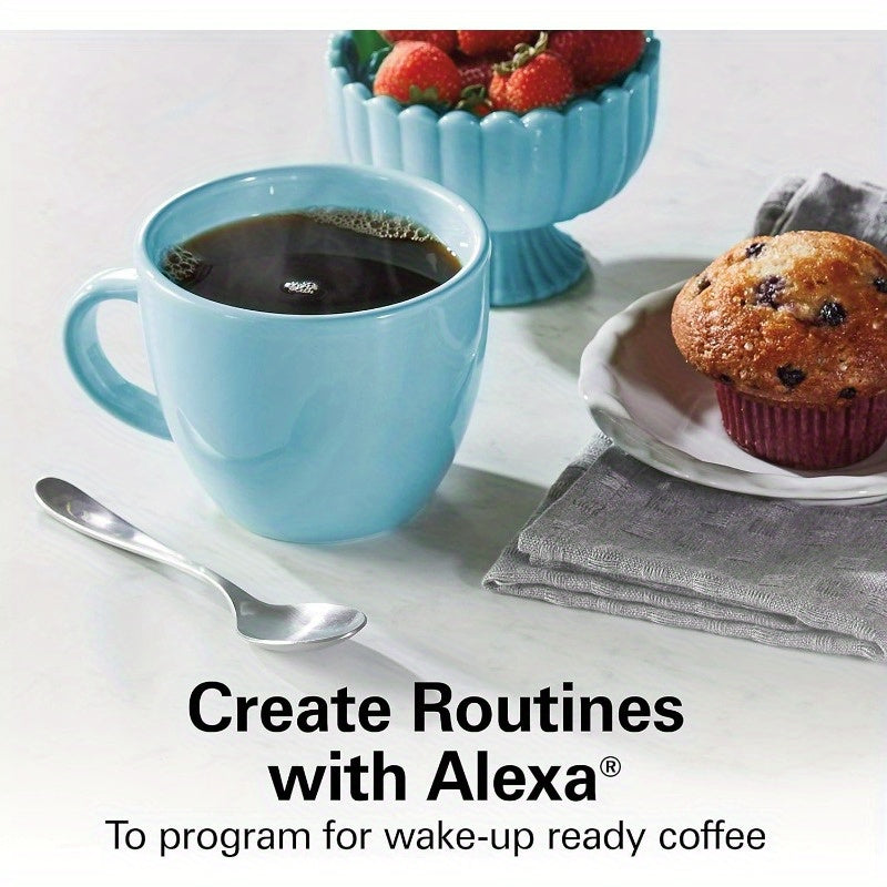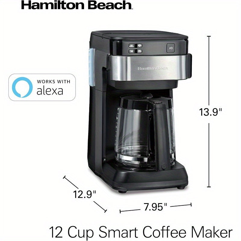 Compatible with The Alexa Smart Coffee Maker, This Programmable Model Has a 12-Cup Capacity And Features a Black And Stainless Steel Design, Model Number 49350R.