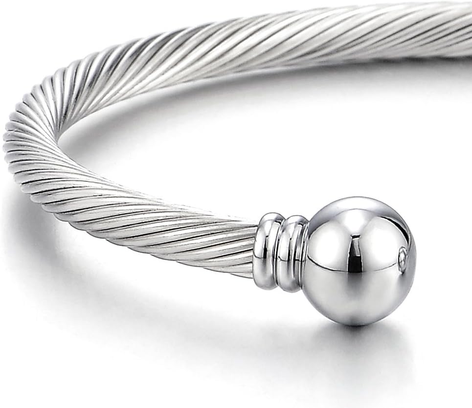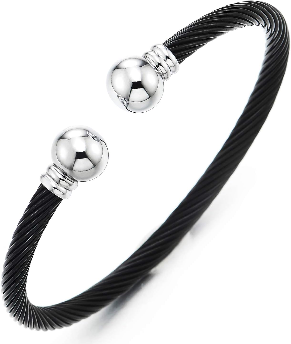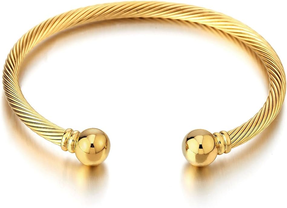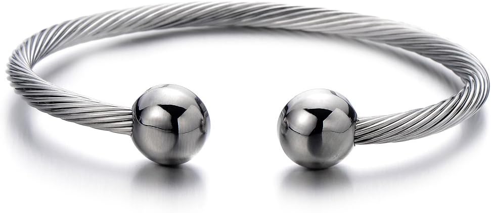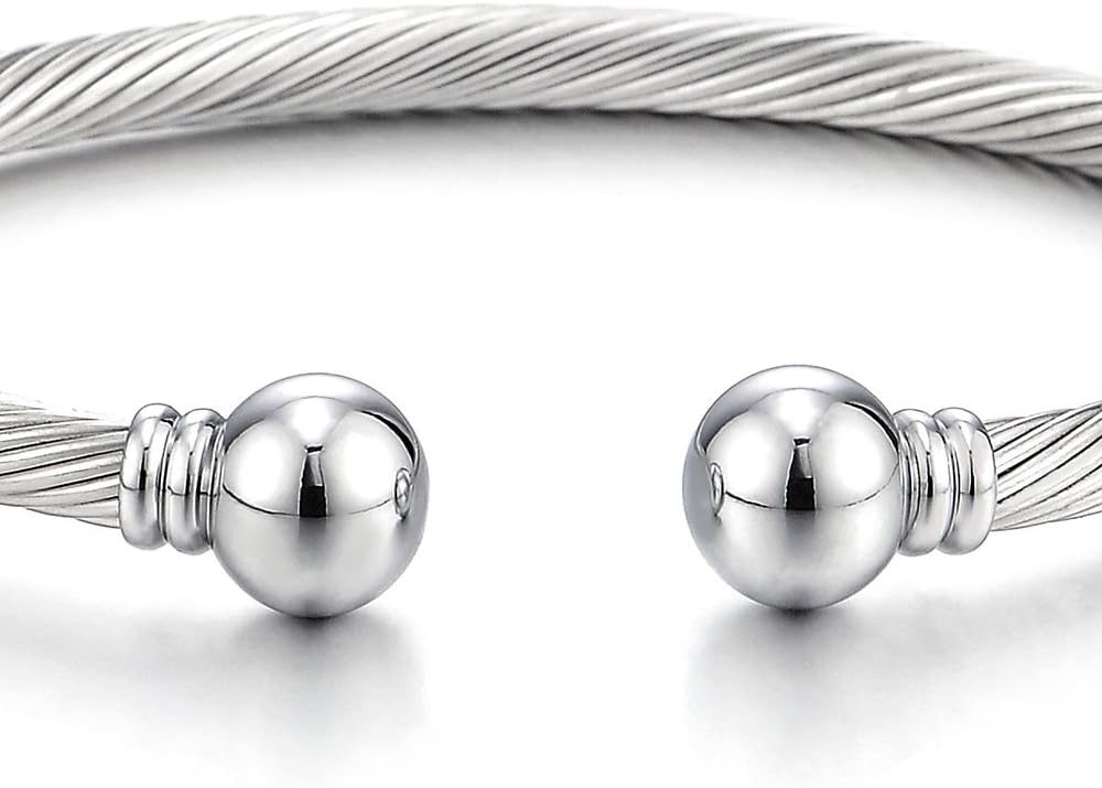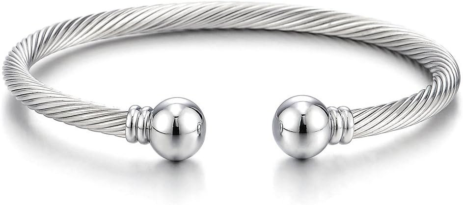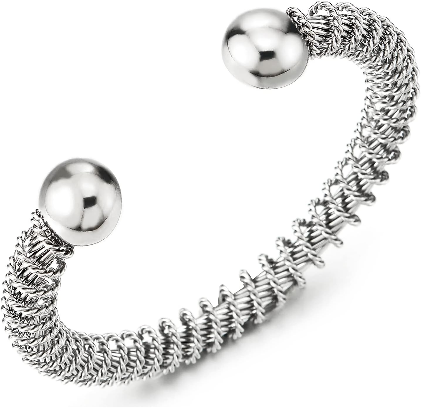 COOLSTEELANDBEYOND Elastic Adjustable Stainless Steel Cuff Bangle Bracelet for Mens Womens