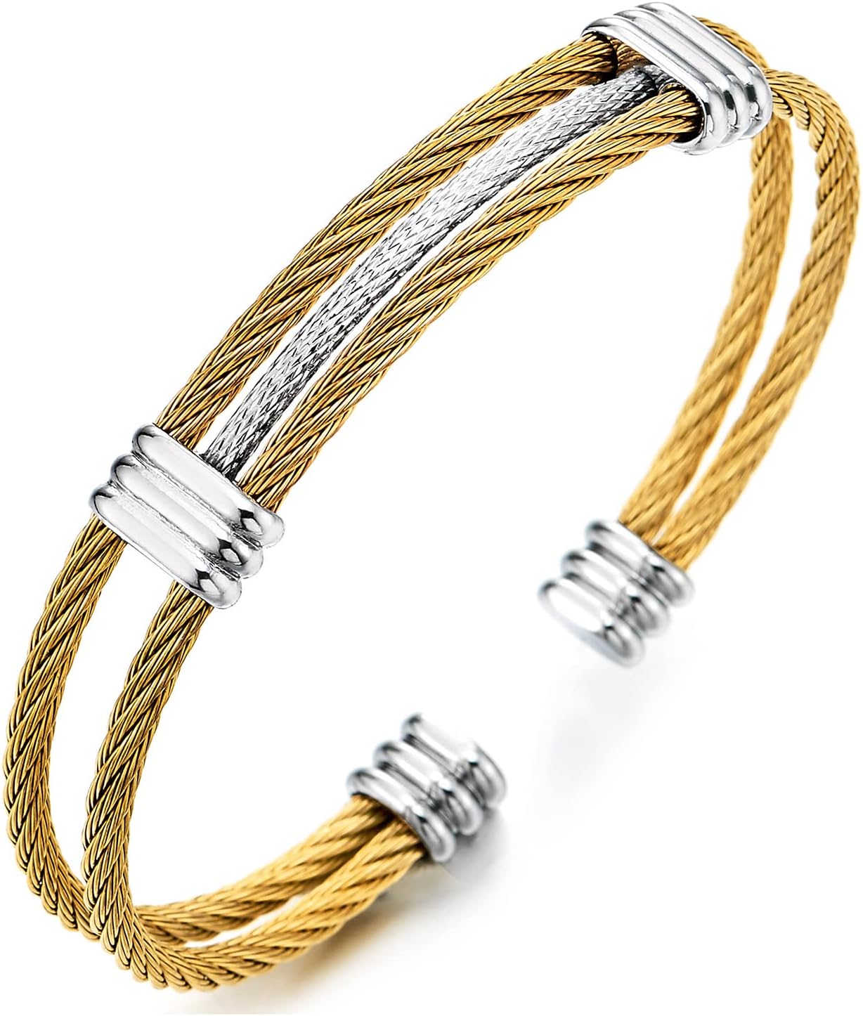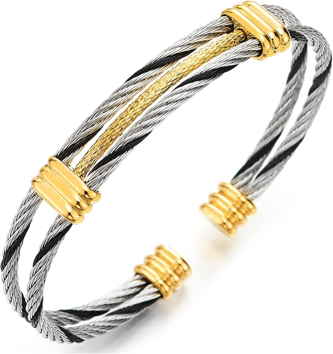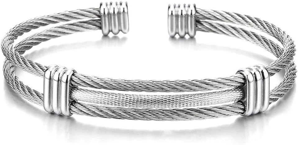 COOLSTEELANDBEYOND Men Women Stainless Steel Twisted Cable Adjustable Cuff Bangle Bracelet