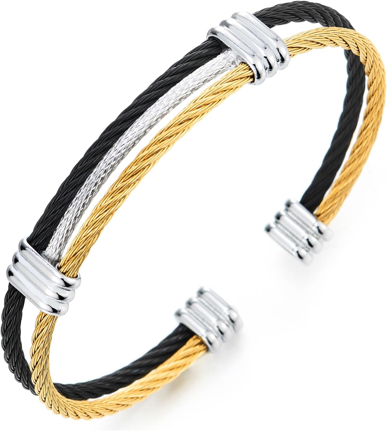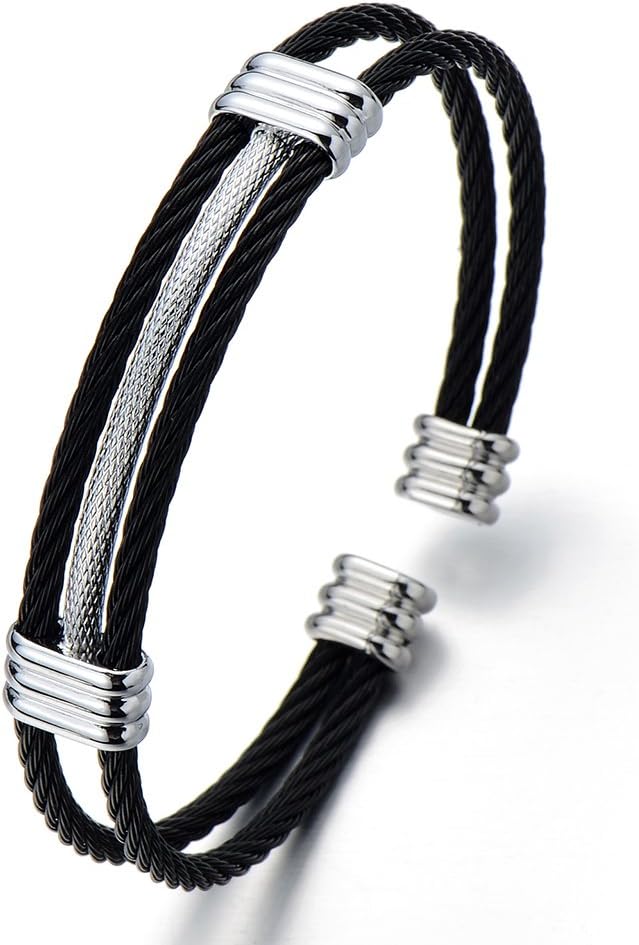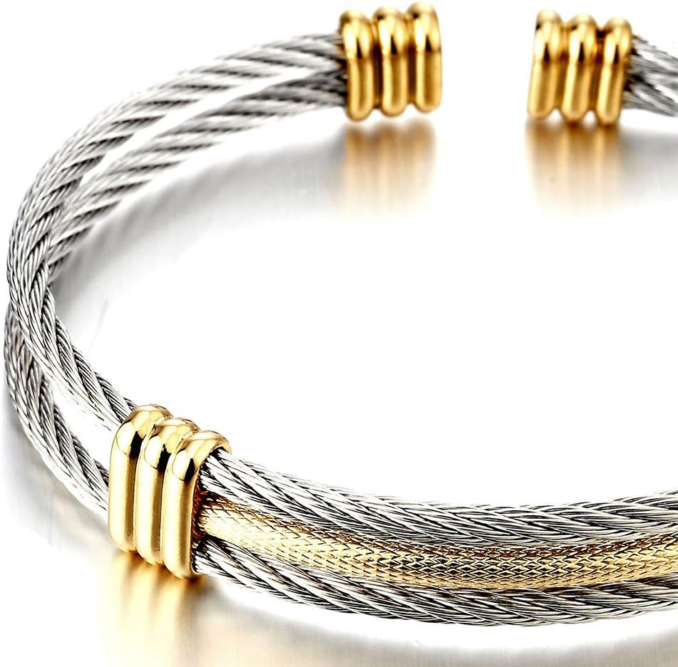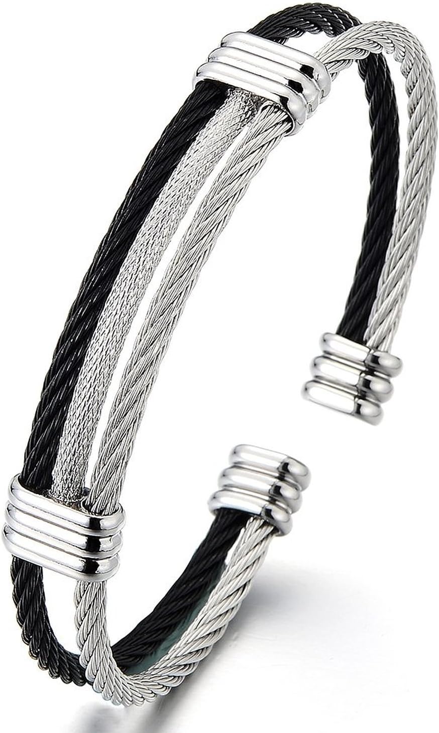 COOLSTEELANDBEYOND Men Women Stainless Steel Twisted Cable Adjustable Cuff Bangle Bracelet