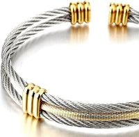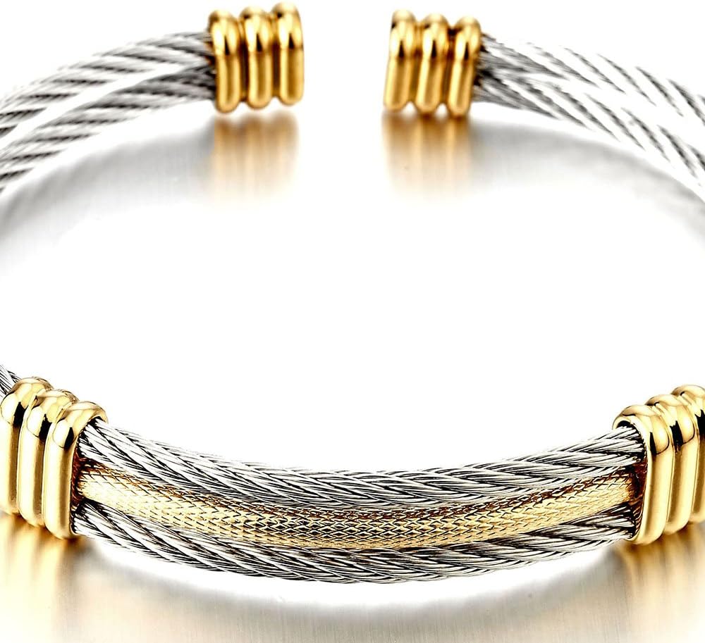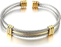 Innovative Design: Our bracelet boasts a unique two-tone twisted design, combining silver and gold hues for a stunning visual effect.