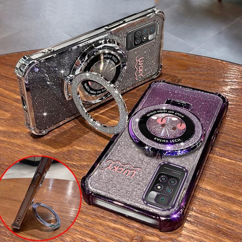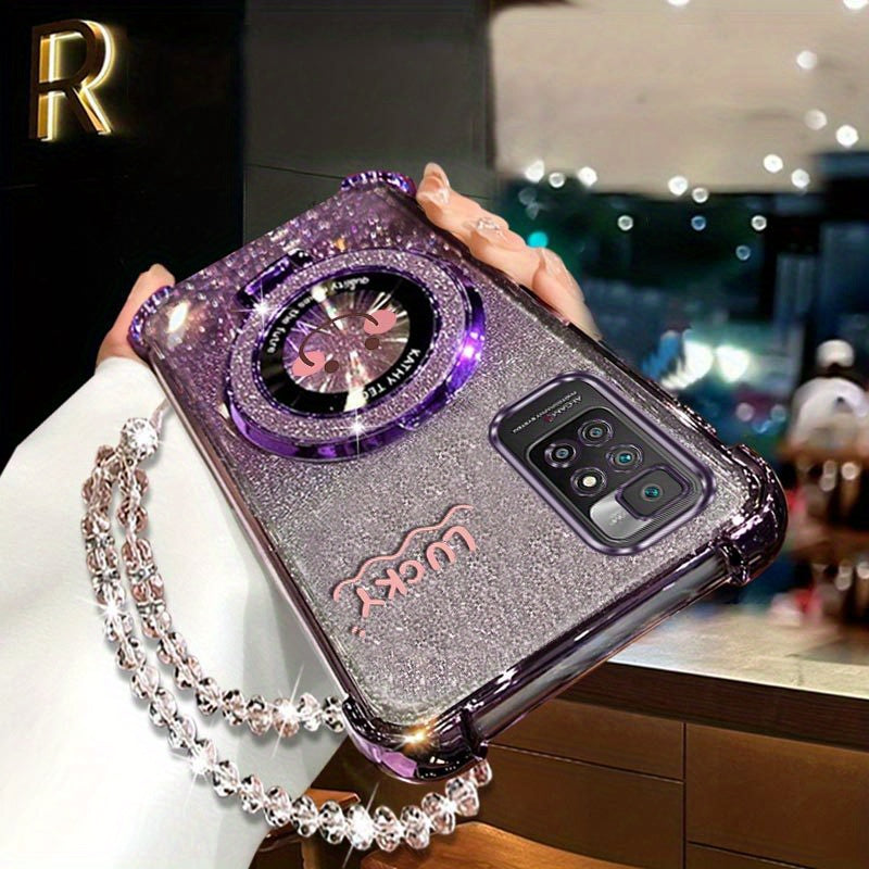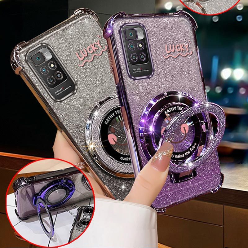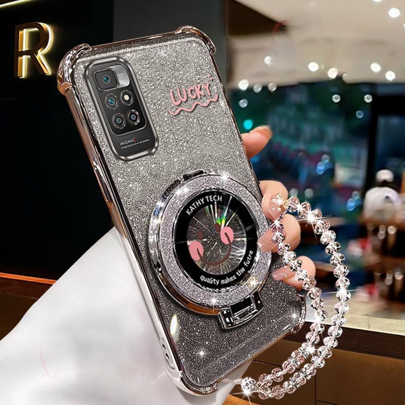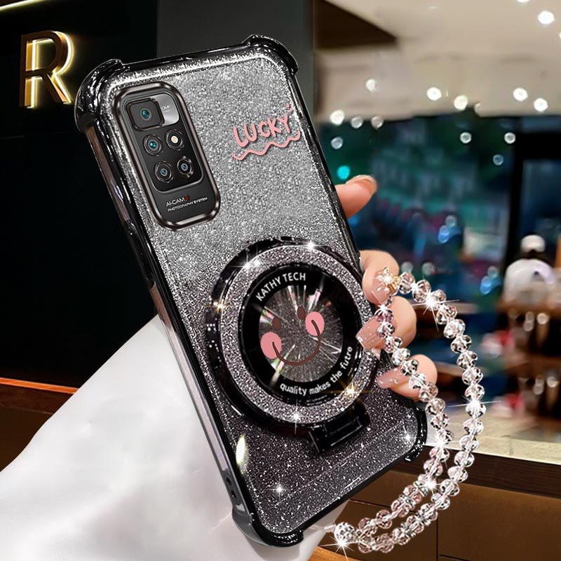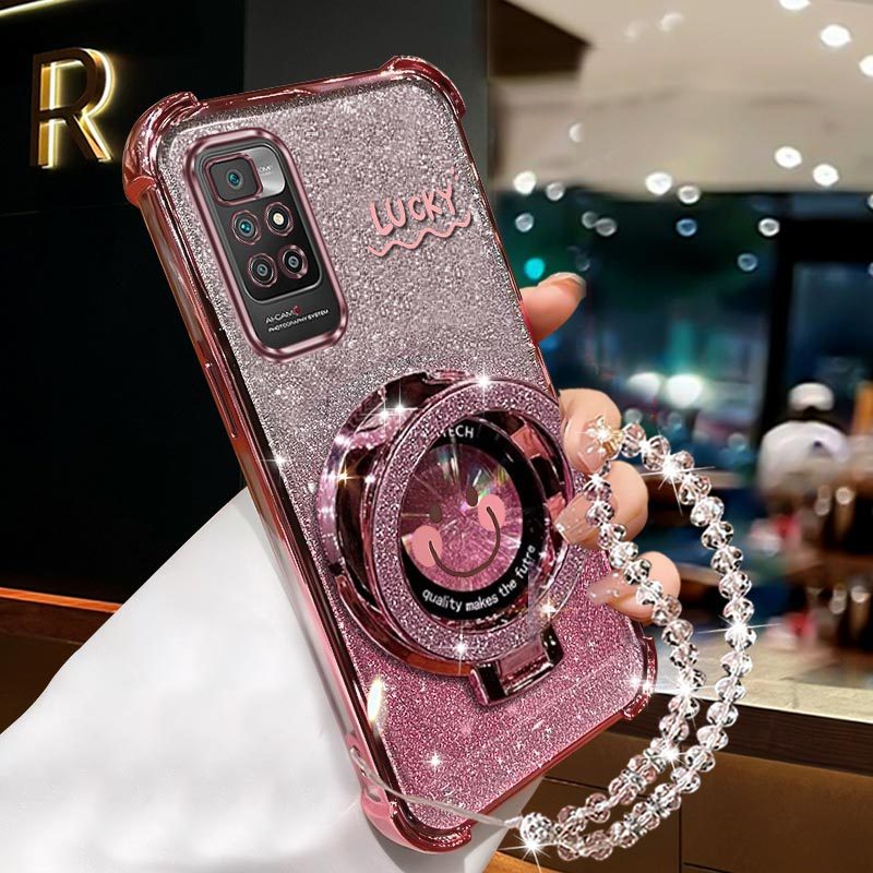 Coque de Support de Téléphone avec Bracelet en Diamant, Visage Souriant Mignon et Paillettes pour Xiaomi Redmi 10 4G, Anti-choc et Anti-chute