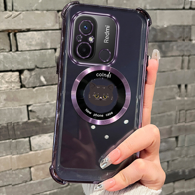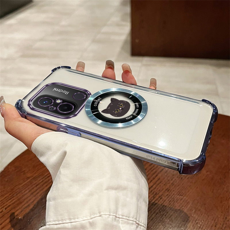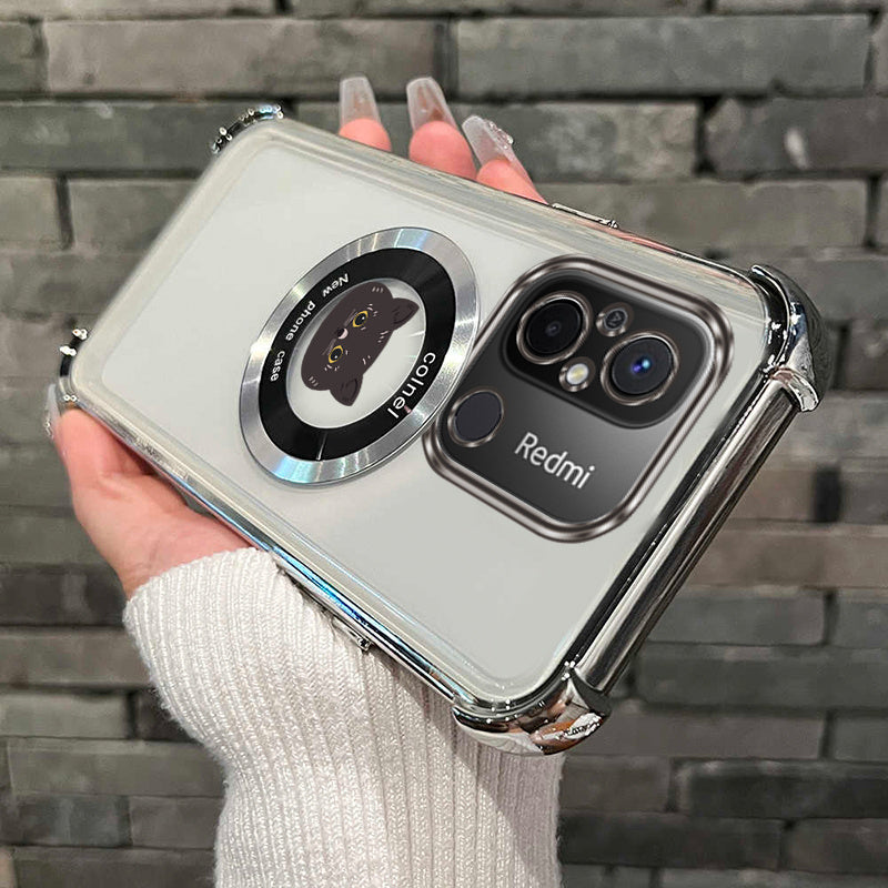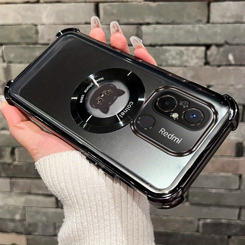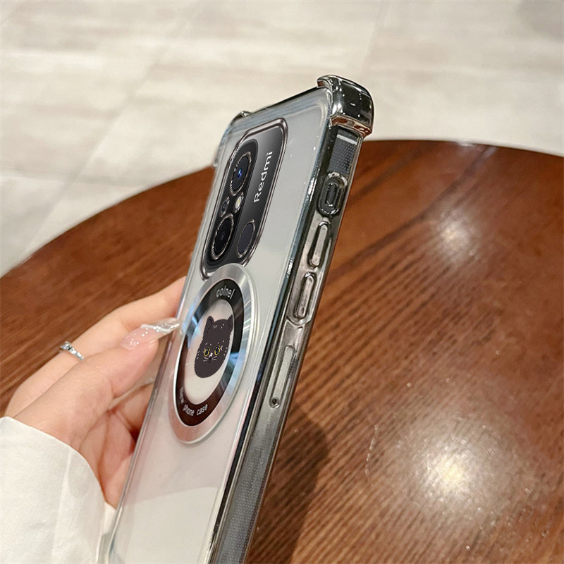 Coque Magnétique Transparente avec Chat Noir Mignon pour Xiaomi Redmi 12C Redmi12C, Protection Arrière Anti-choc et Anti-choc