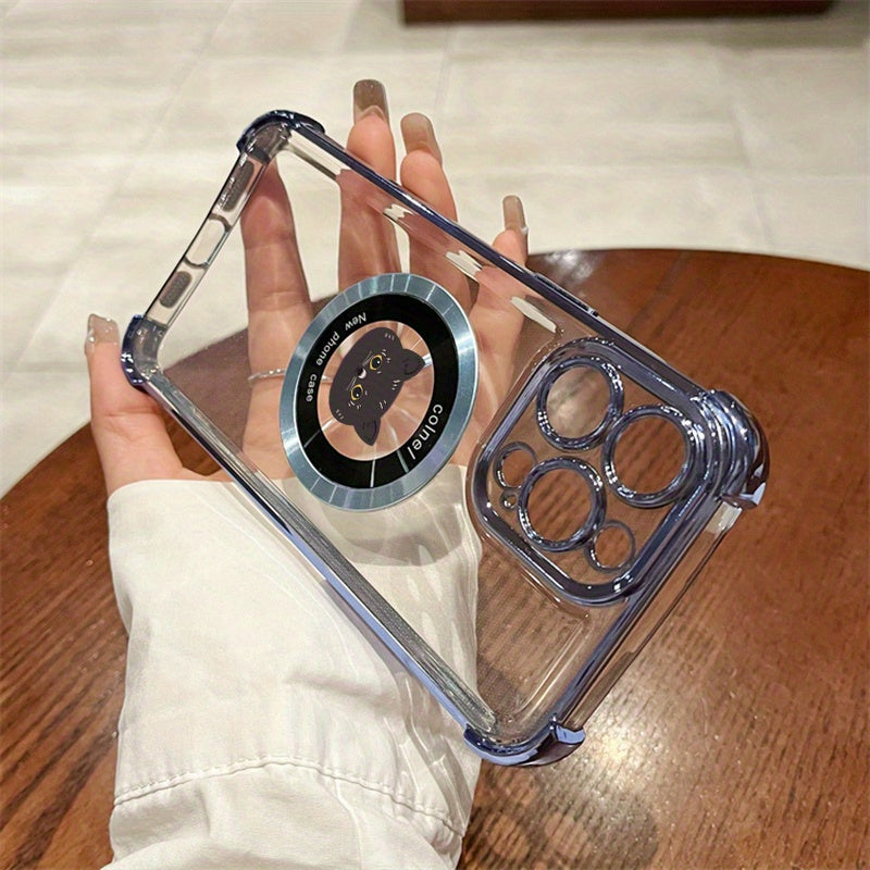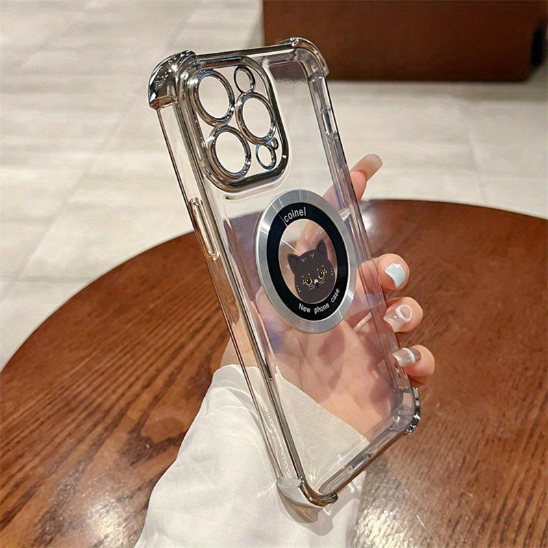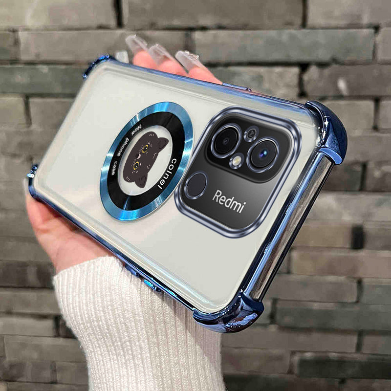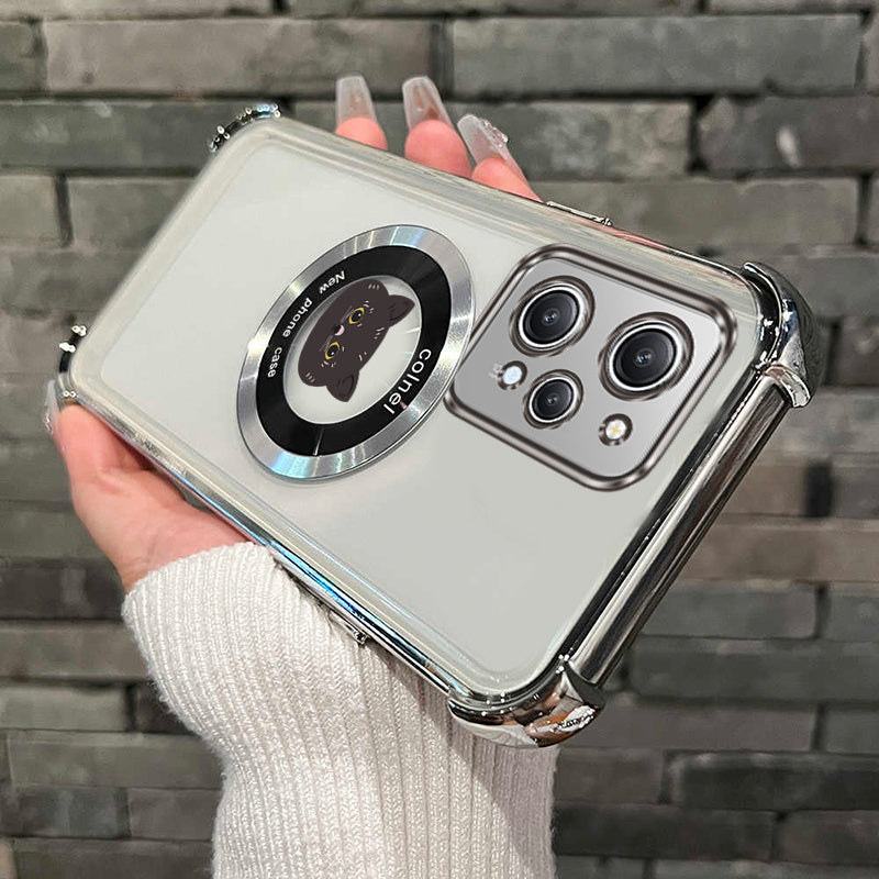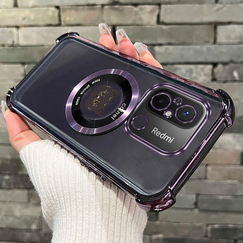 Coque Magnétique Transparente avec Chat Noir Mignon pour Xiaomi Redmi 12C Redmi12C, Protection Arrière Anti-choc et Anti-choc