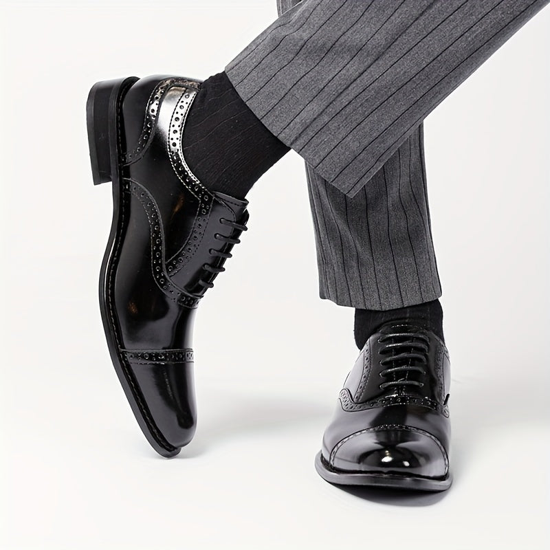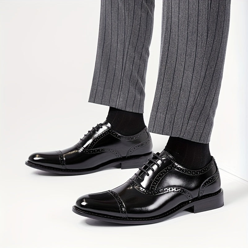 [Cow Leather Oxford Shoes] Comfy Men's Split Cow Leather Oxford Shoes - Solid Color Cap Toe Microfiber Upper Non Slip Rubber Sole Durable Formal Shoes