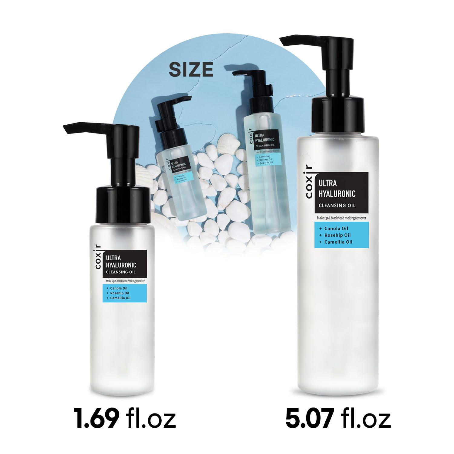 coxir ULTRA HYALURONIC CLEANSING OIL l Gentle Korean Facial Cleanser, Blackhead, Makeup Removal with Hyaluronic Acid, Plant-based oils, No Mineral Oil [5.07 Fl.oz(pack of 1)]