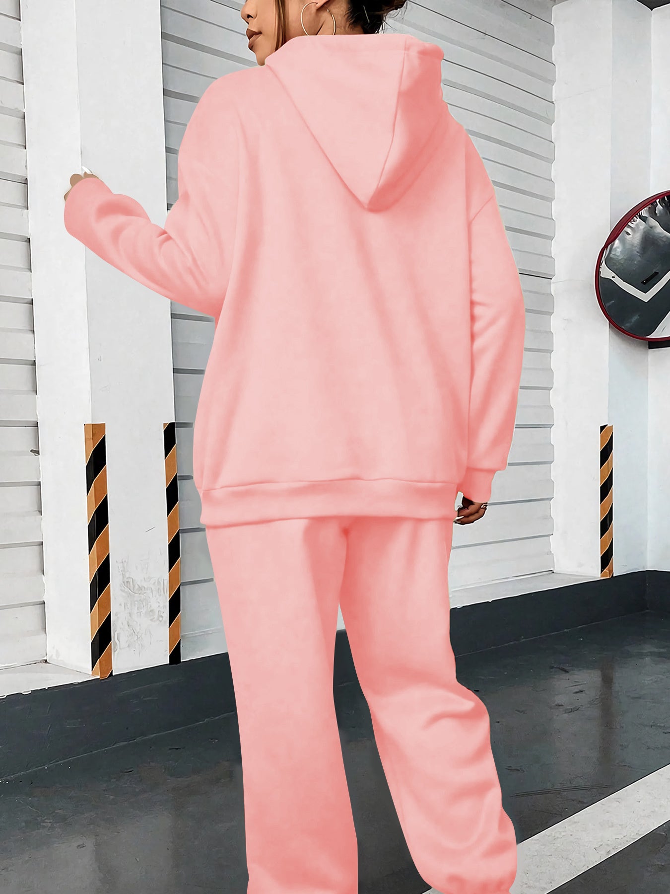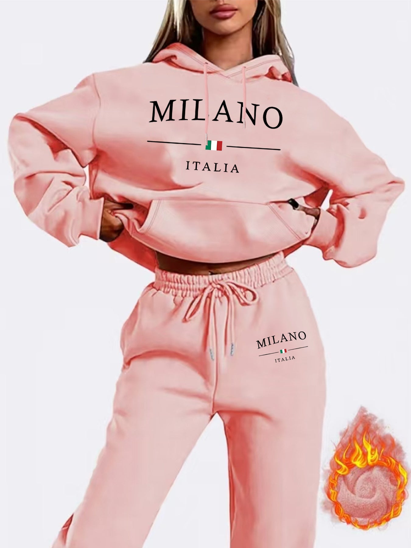 Cozy 1 Set Women's Casual Milano Italy Print Long Sleeve Hoodie and Sweatpants, Polyester Geometric-Pattern Knit Fabric, Fall/Winter Collection with Pockets