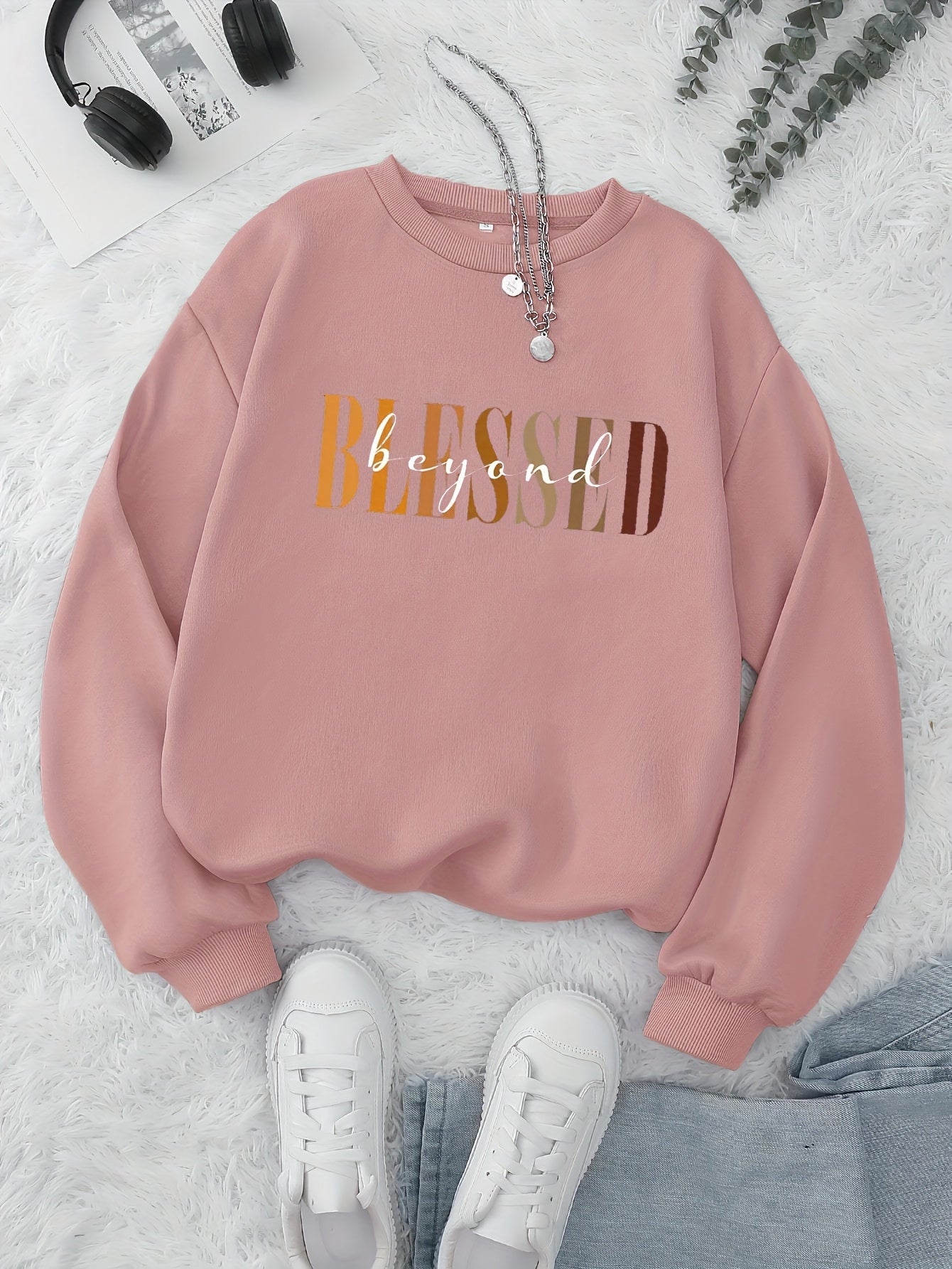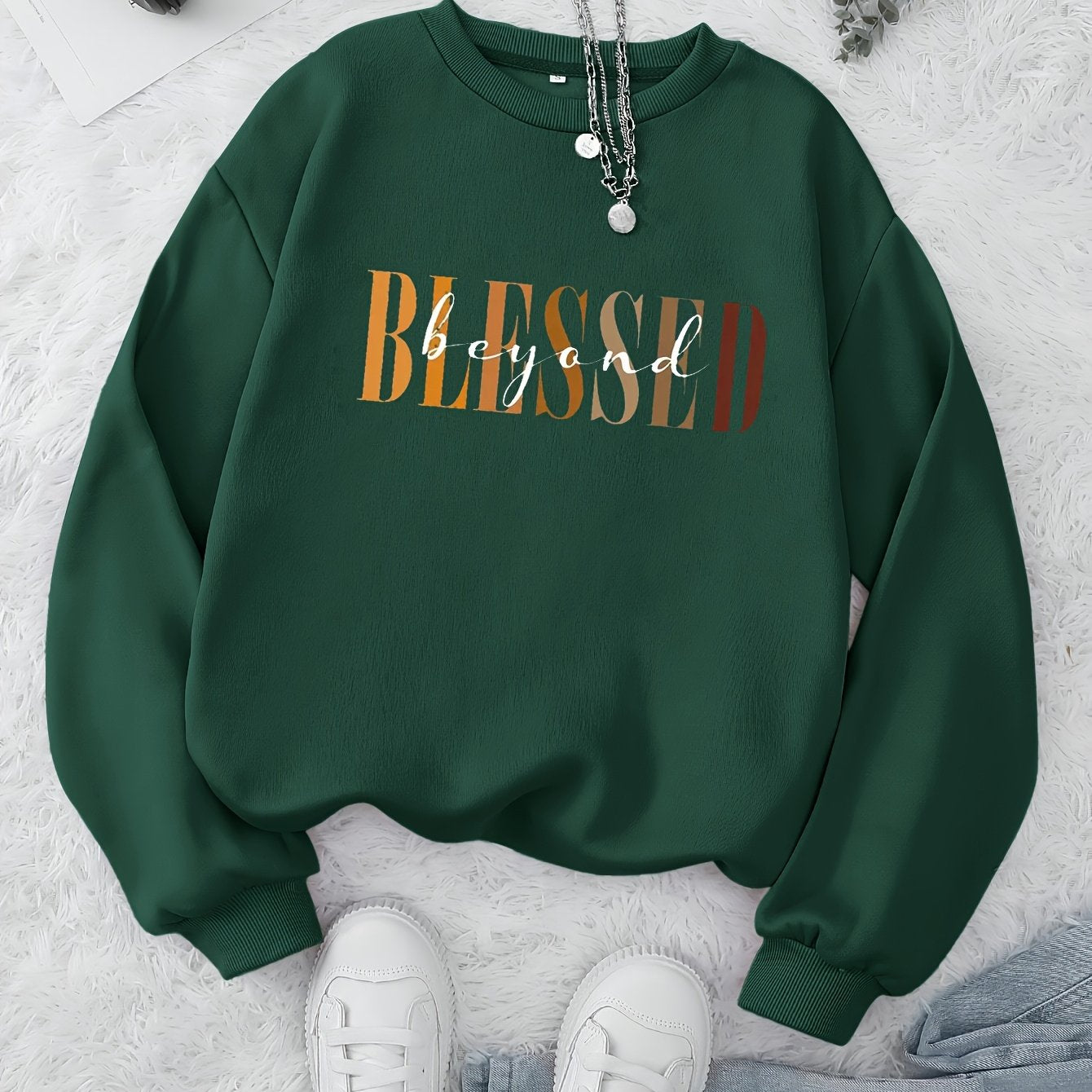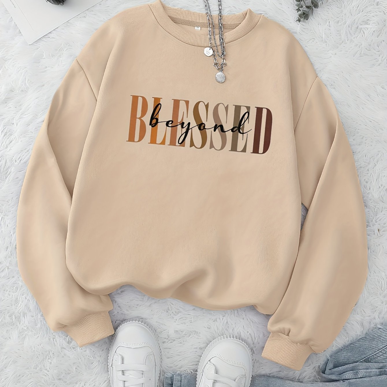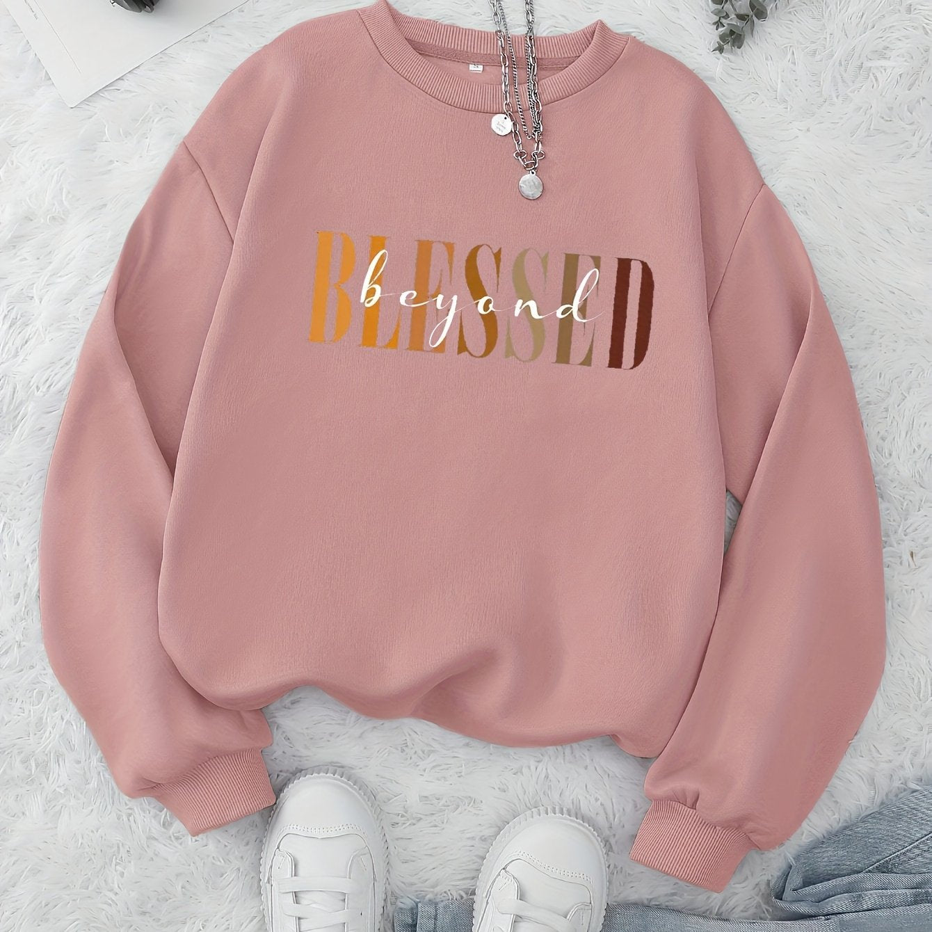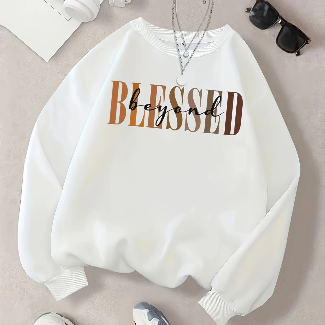 [Cozy Geometric Print Sweatshirt Crew] Women's Casual Geometric Print Sweatshirt - Cozy Polyester, Crew Neck, Machine Washable - Perfect for Fall/Winter