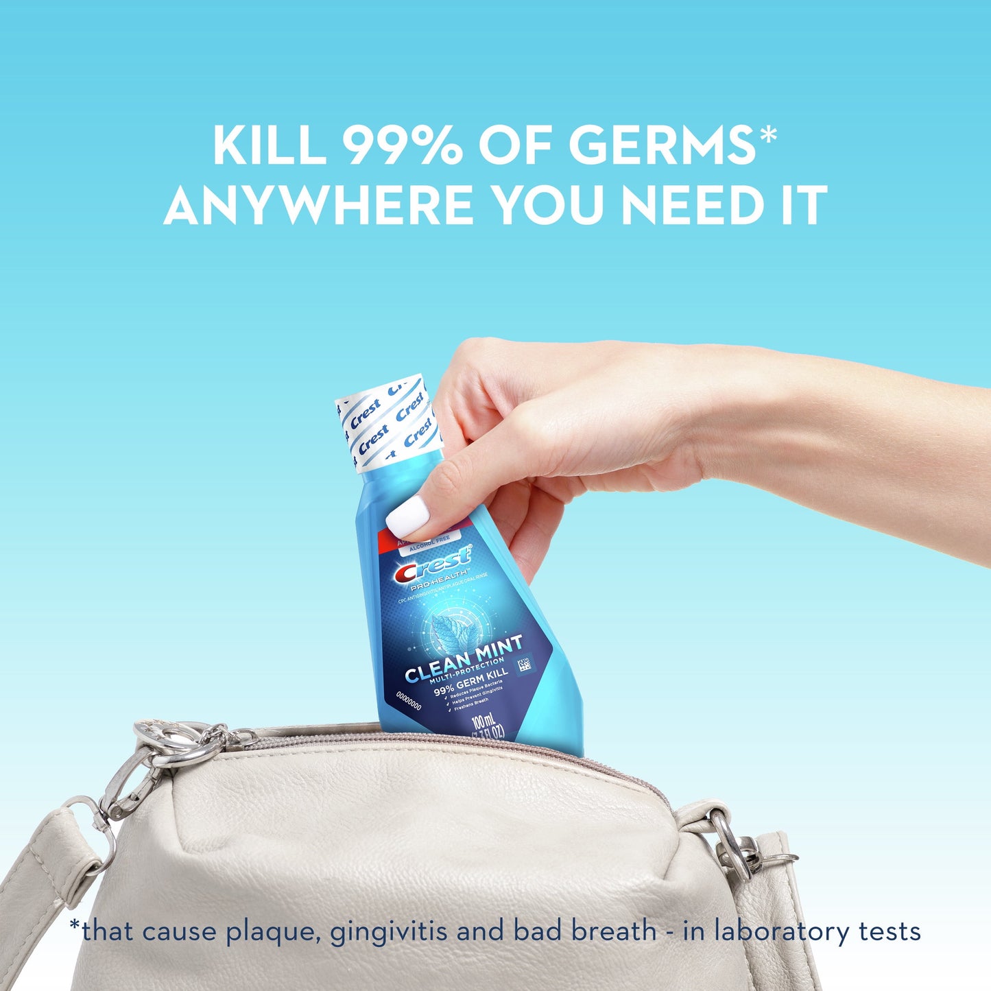 - You will receive (1) 100mL (3.3 Fl Oz) Travel Size bottle of Crest Pro-Health Multi-Protection mouthwash in Clean Mint flavor