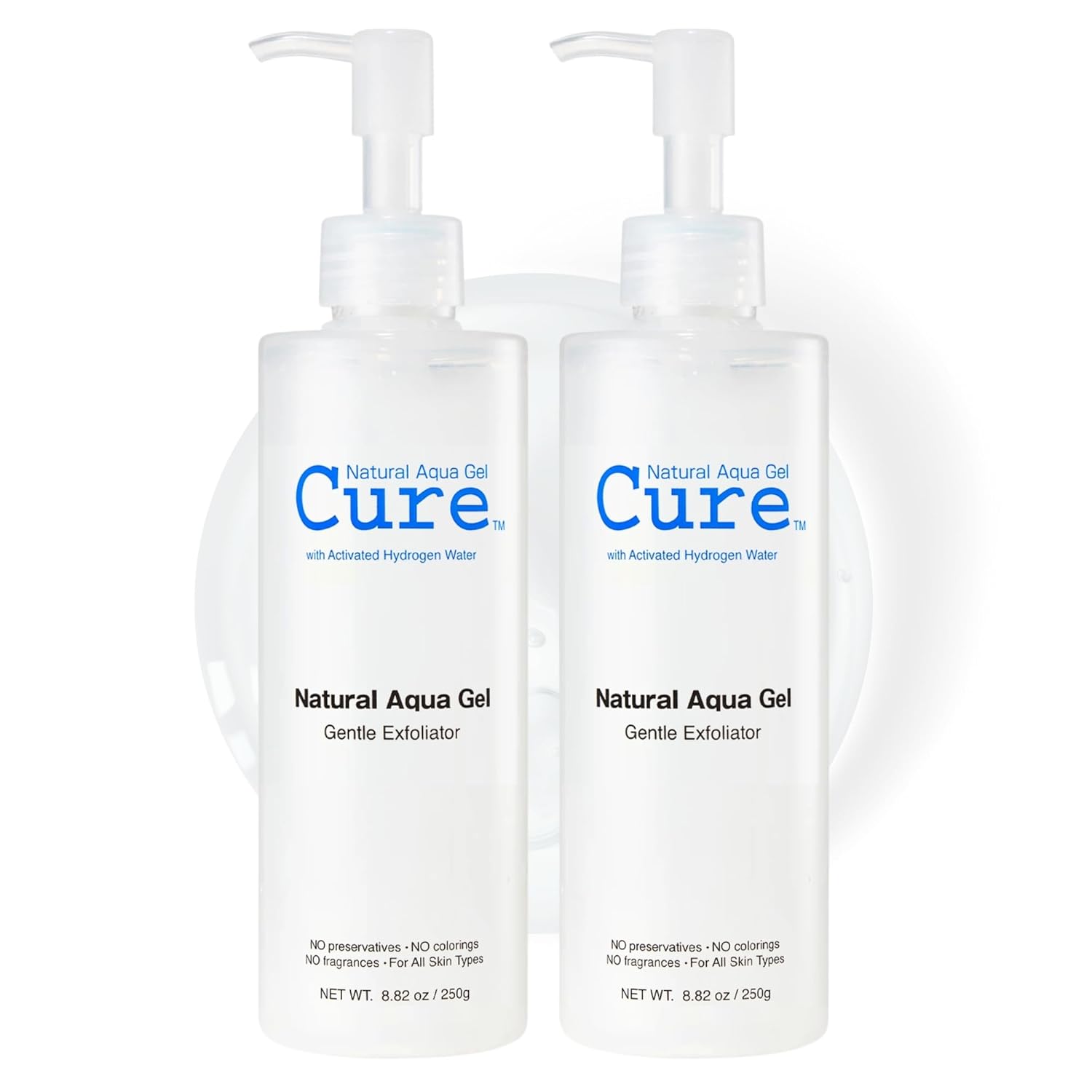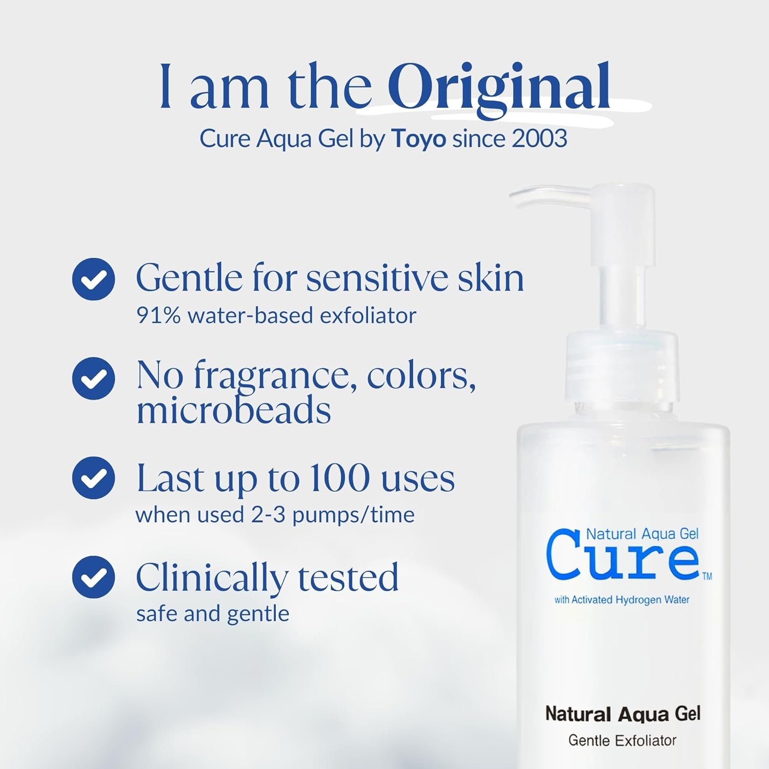 Cure by Toyo | Aqua Gel Gentle Exfoliator | Clear and Softer Skin | Non-Abrasive Face and Body Cleanser | Sensitive Skin | Big Size 8.82oz