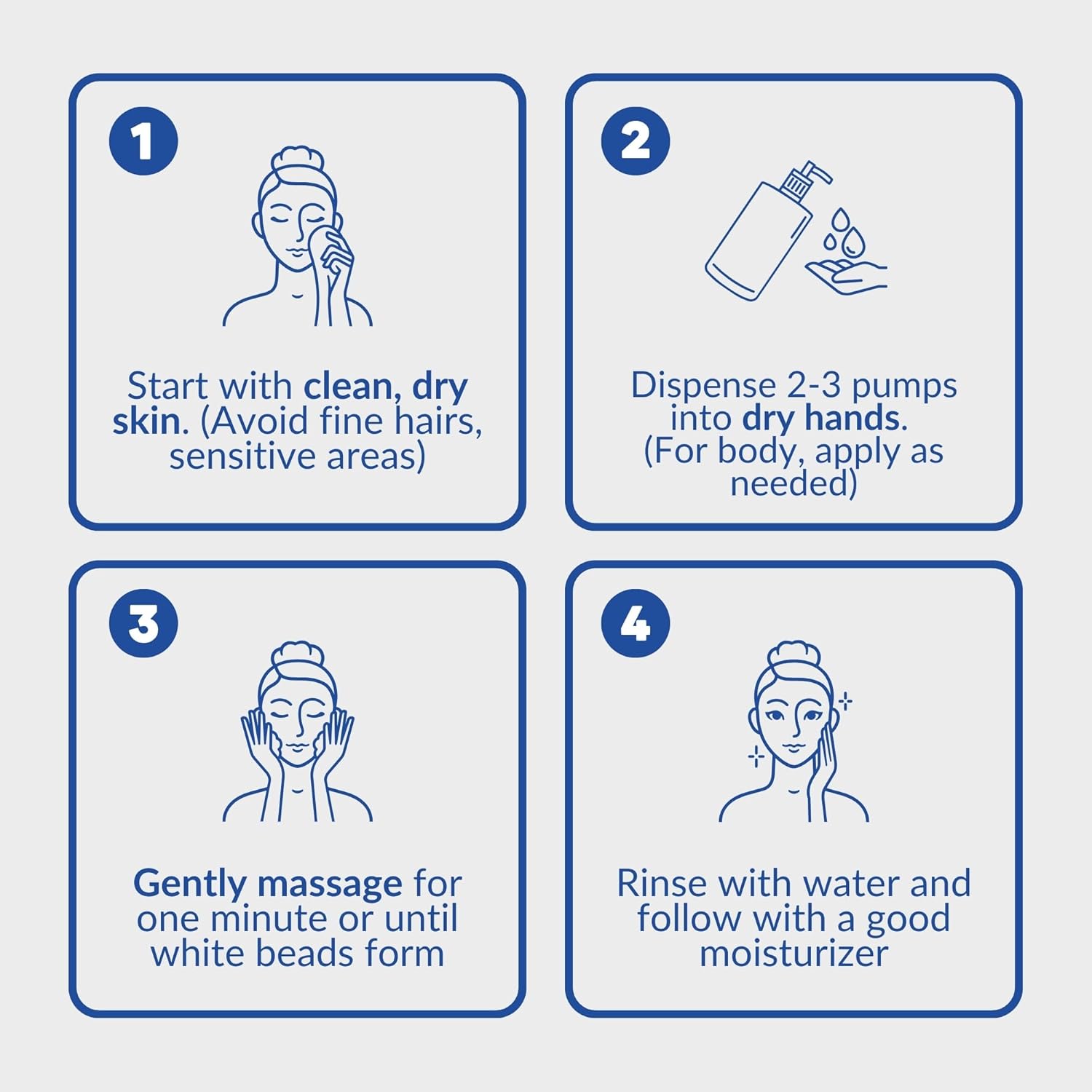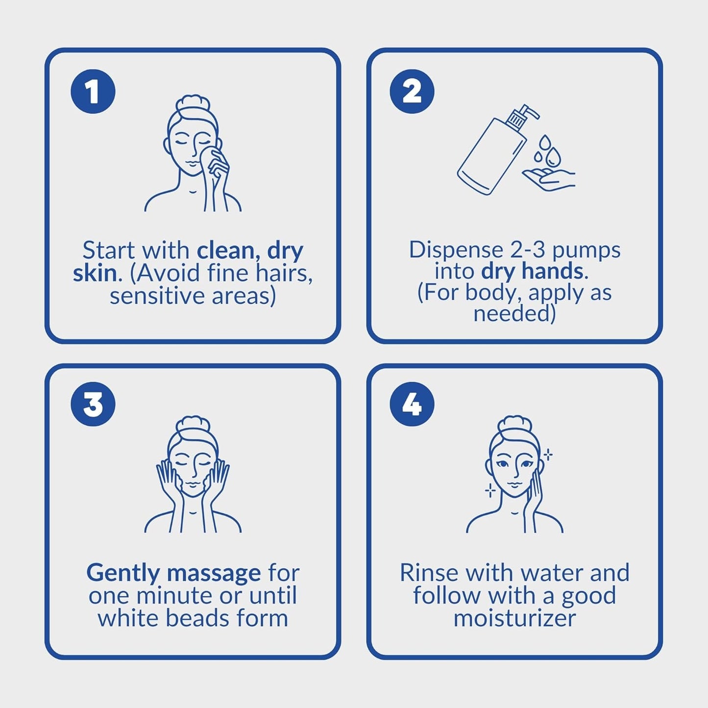 + FACE & BODY + This exfoliating face and body wash is designed for the face and the body such as the neck, elbows, hands, and heels. Gently buff away dry skin and instantly polish and soften your skin.