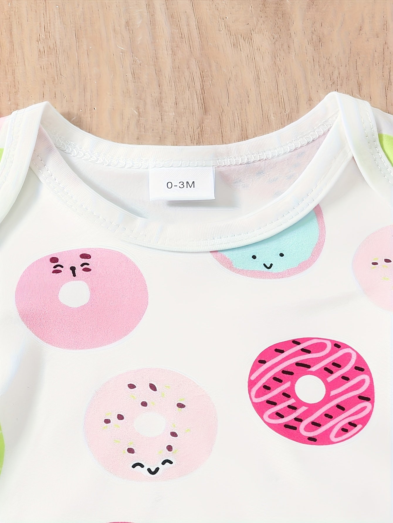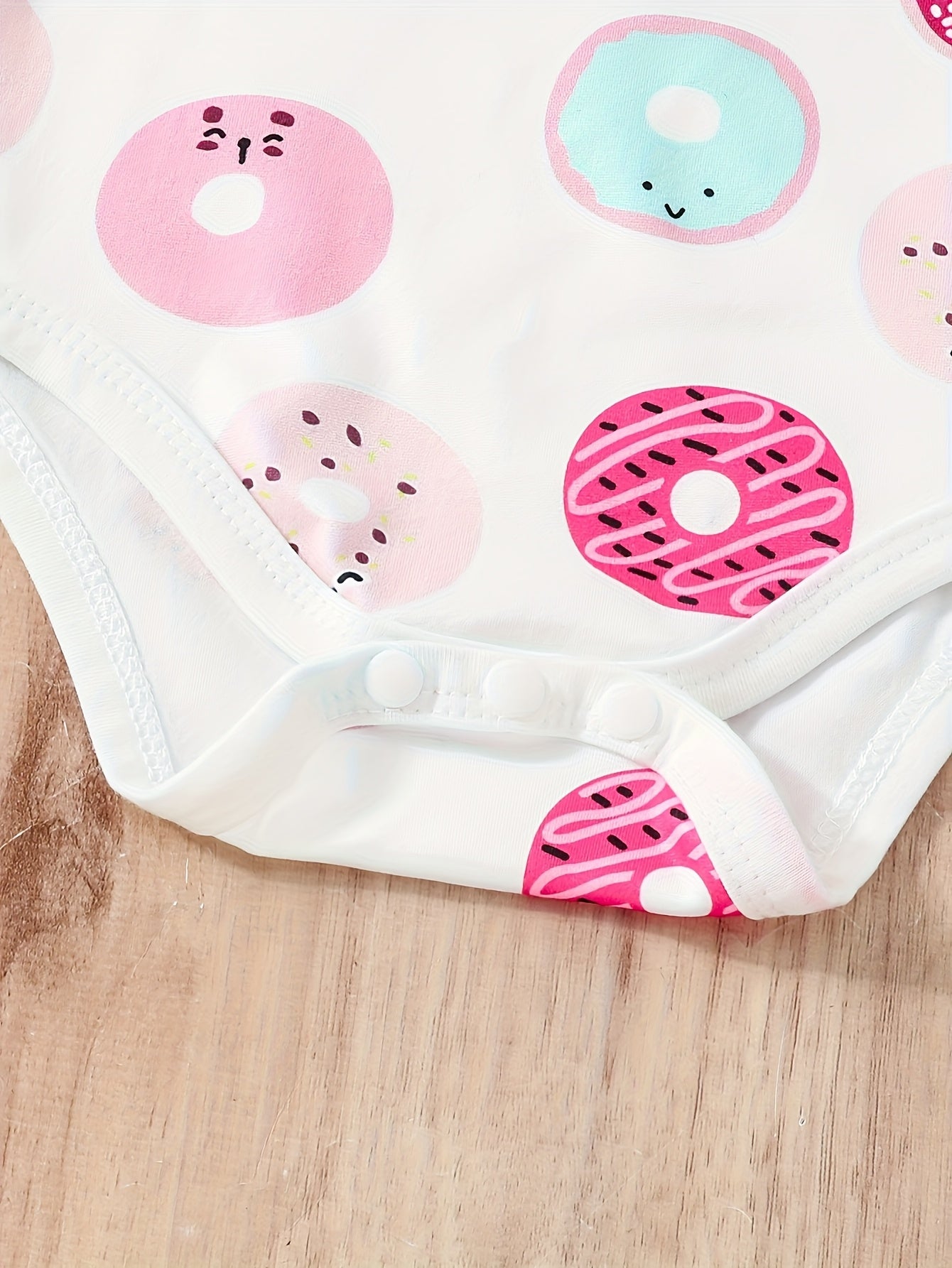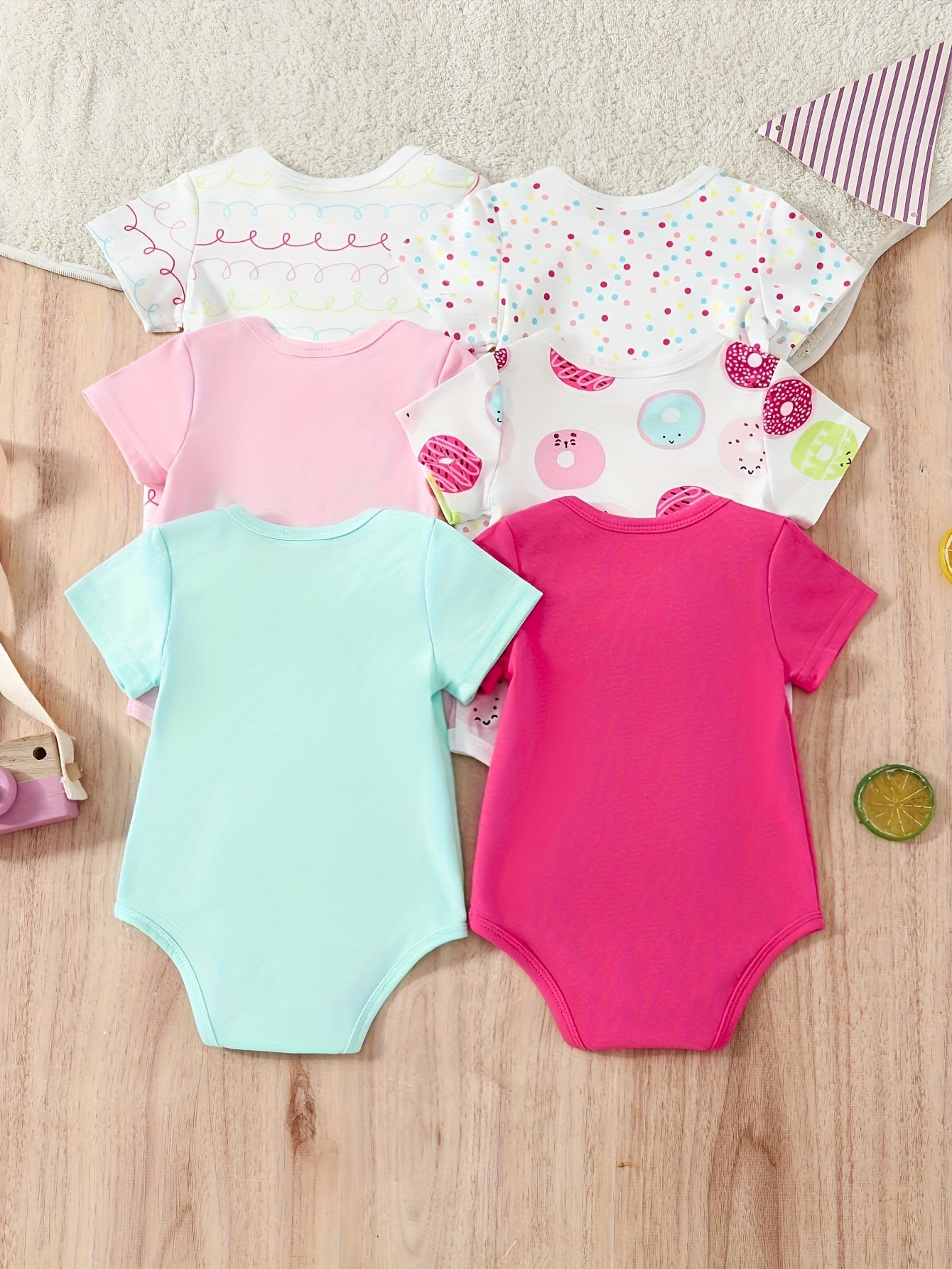 [Cute Romper] 6pcs Cute Cartoon Cupcake & Donut Print Baby Girl's Short Sleeve Romper Set | Polyester, Round Neck, All-Season Casual Wear, Playful Design for Little Ones