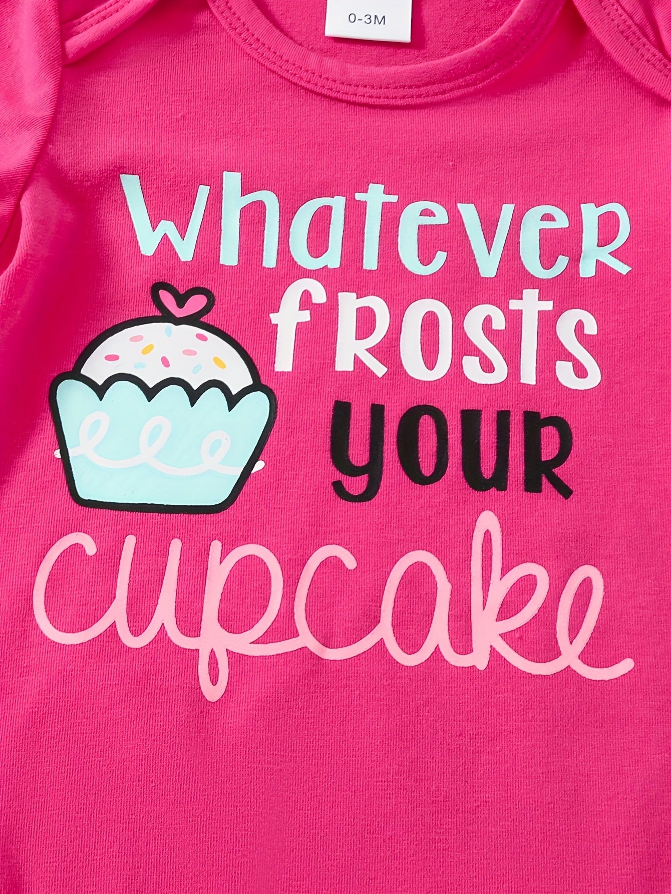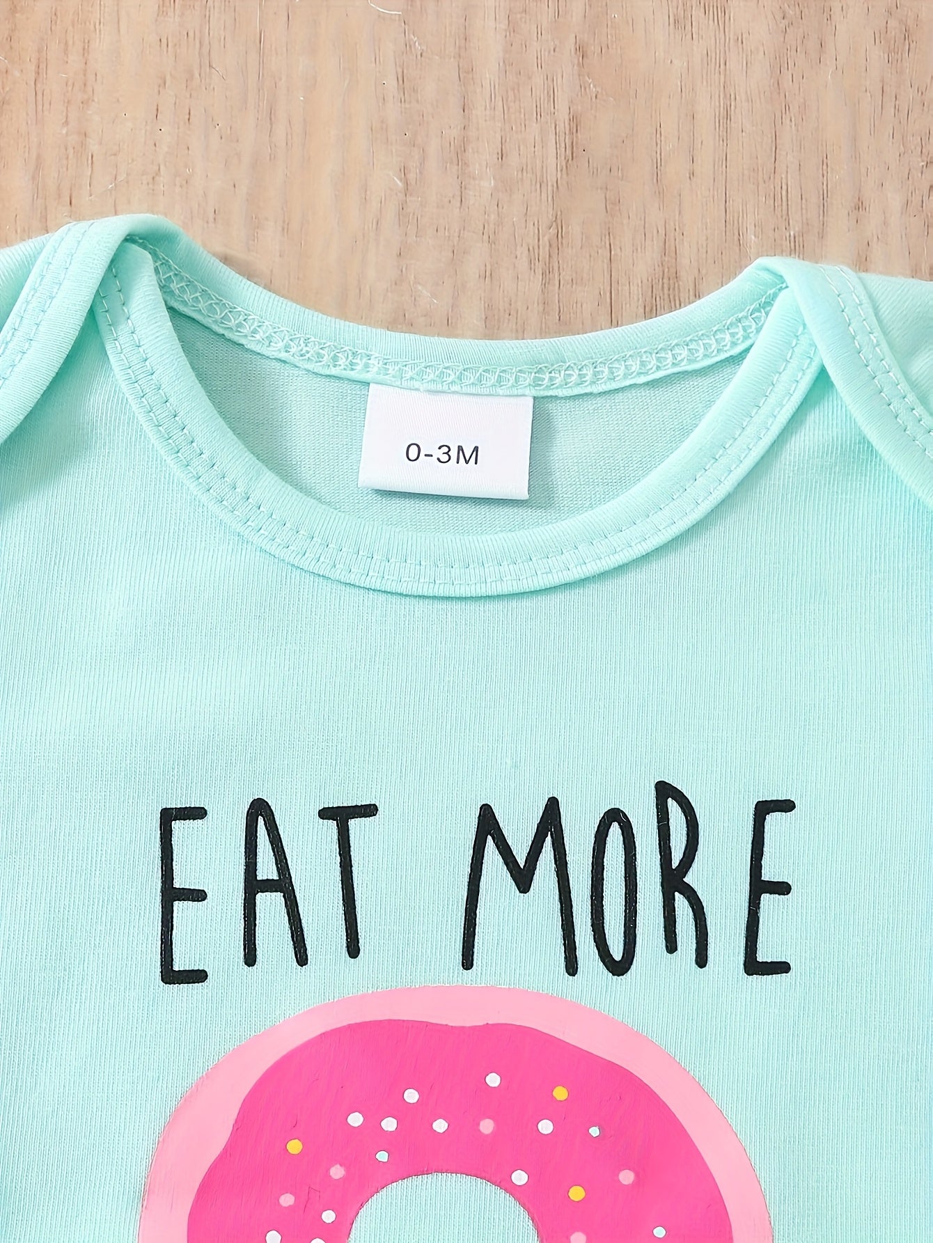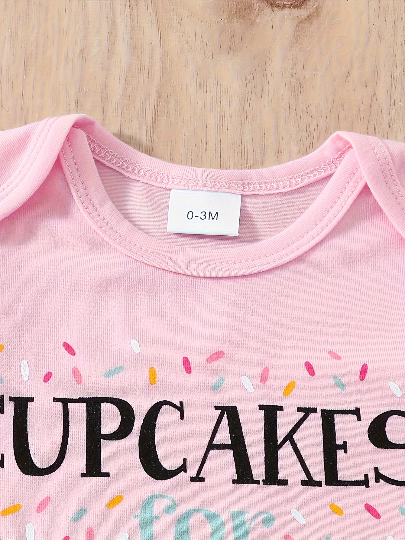 [Cute Romper] 6pcs Cute Cartoon Cupcake & Donut Print Baby Girl's Short Sleeve Romper Set | Polyester, Round Neck, All-Season Casual Wear, Playful Design for Little Ones