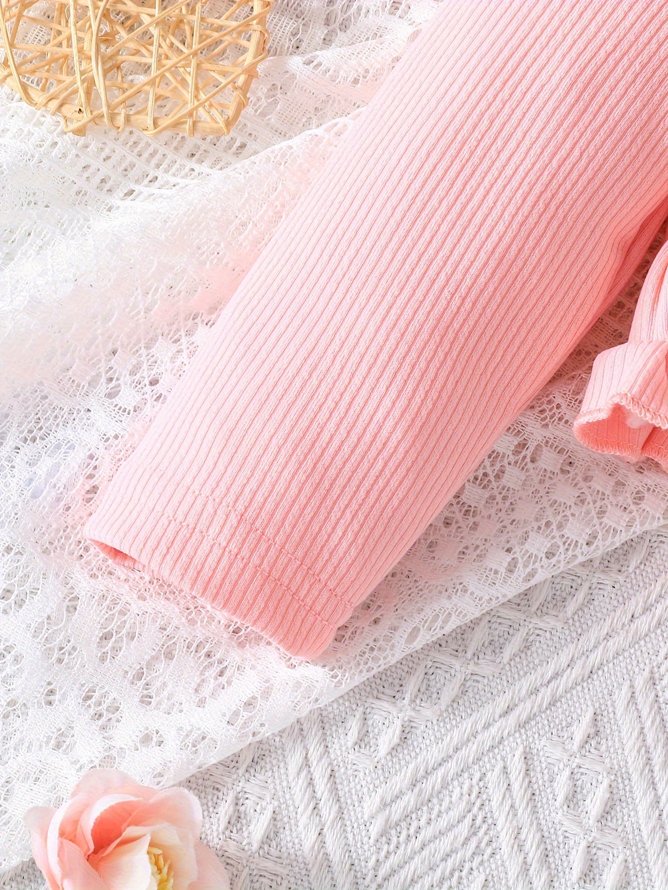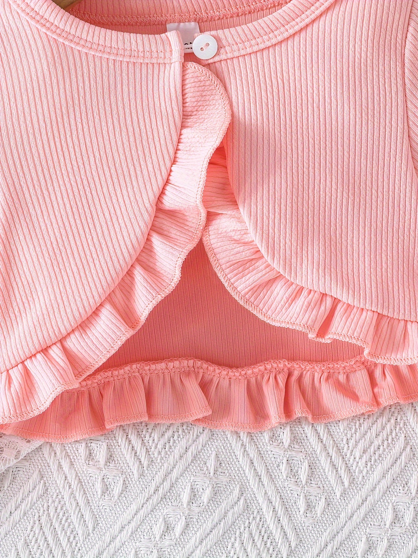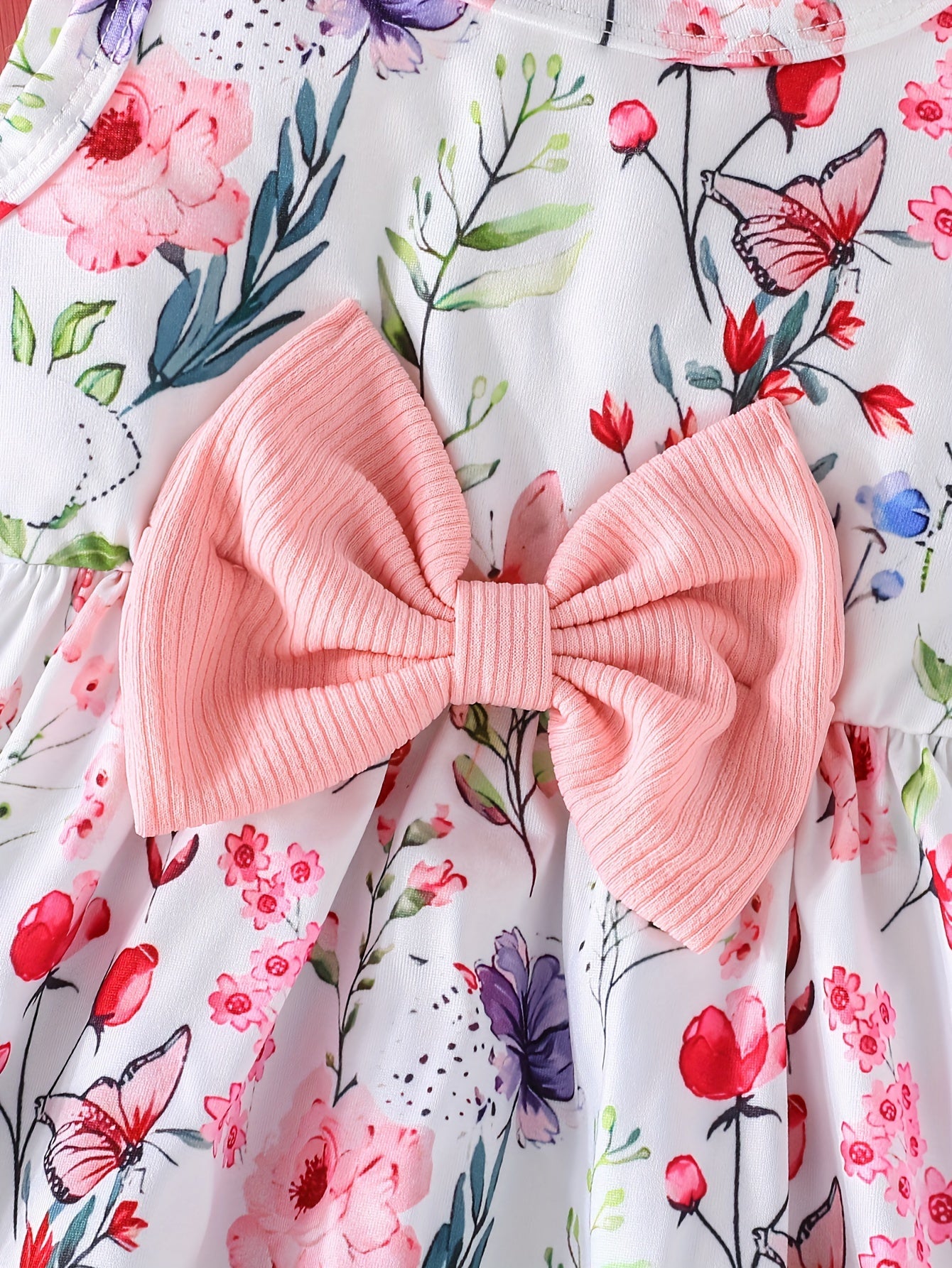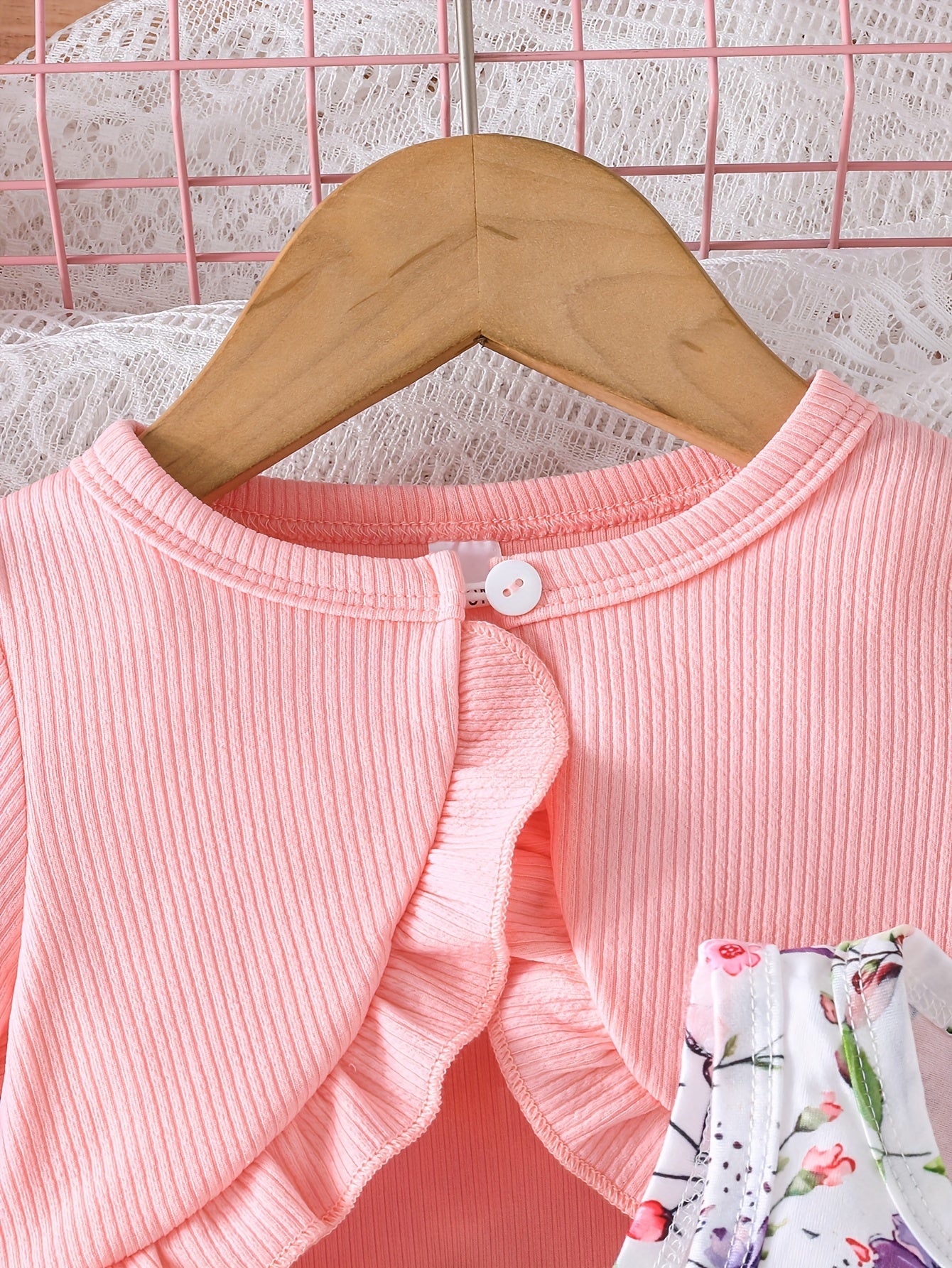 Cute Two-Piece Spring/Fall Outfit: Long Sleeve Crew Neck Top with Ruffled Edges and Floral Print Dress with Bow Detail, for Outdoor