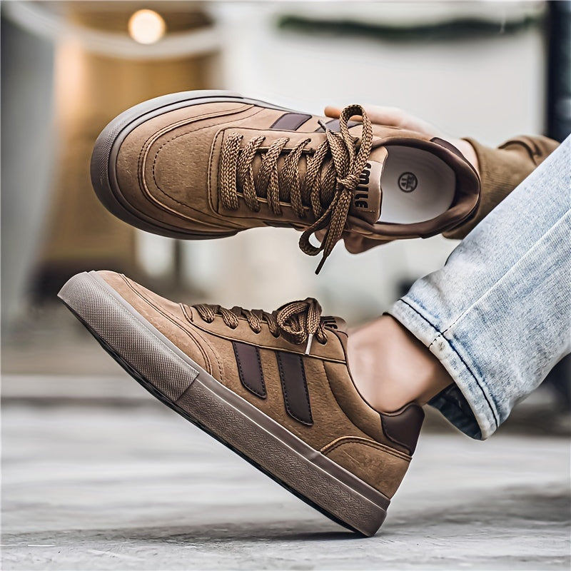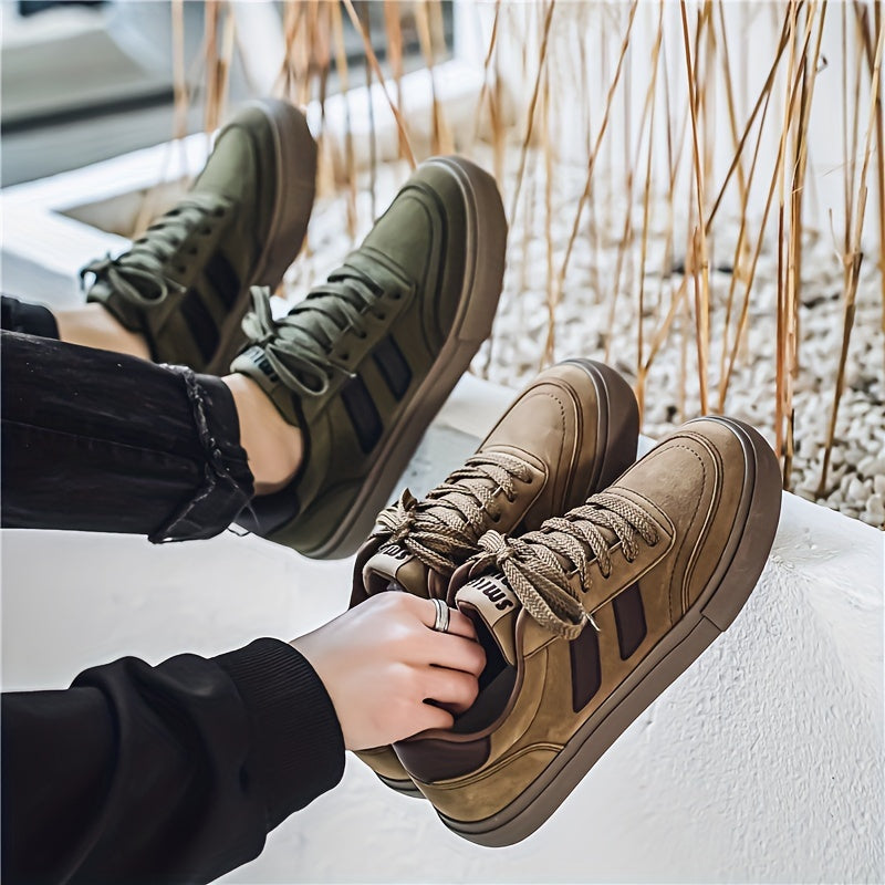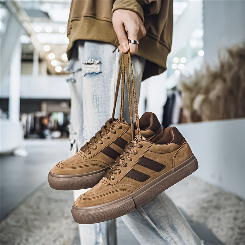 DAWSRi Men's Durable Canvas Sneakers, Dual Ankle Protection, Thick Vulcanized Outsole for Enhanced Traction & Comfort, Non-Slip Design with Stripes