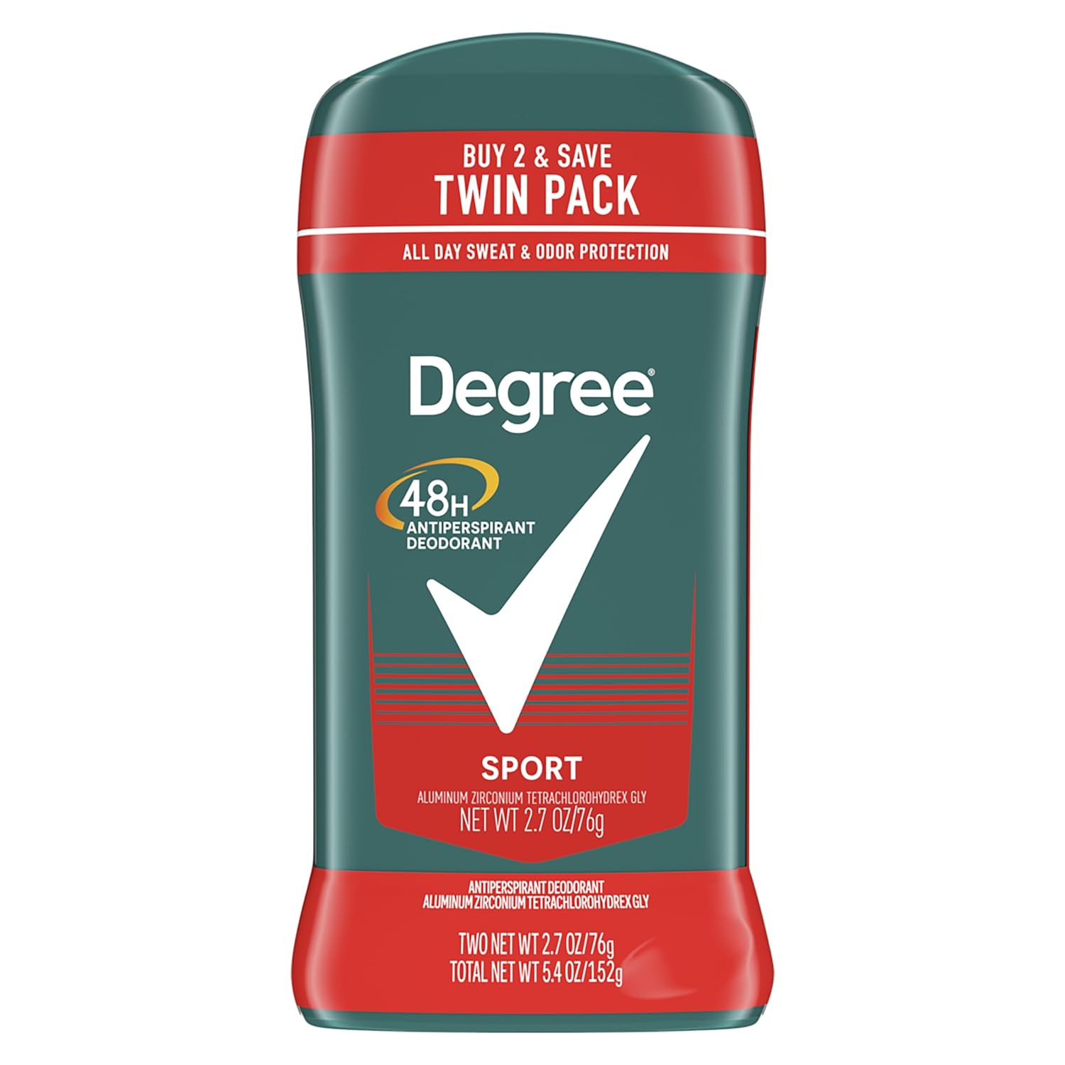 Degree Men Original Antiperspirant Deodorant for Men, Pack of 2, 48-Hour Sweat and Odor Protection, Sport 2.7 oz