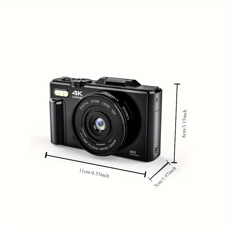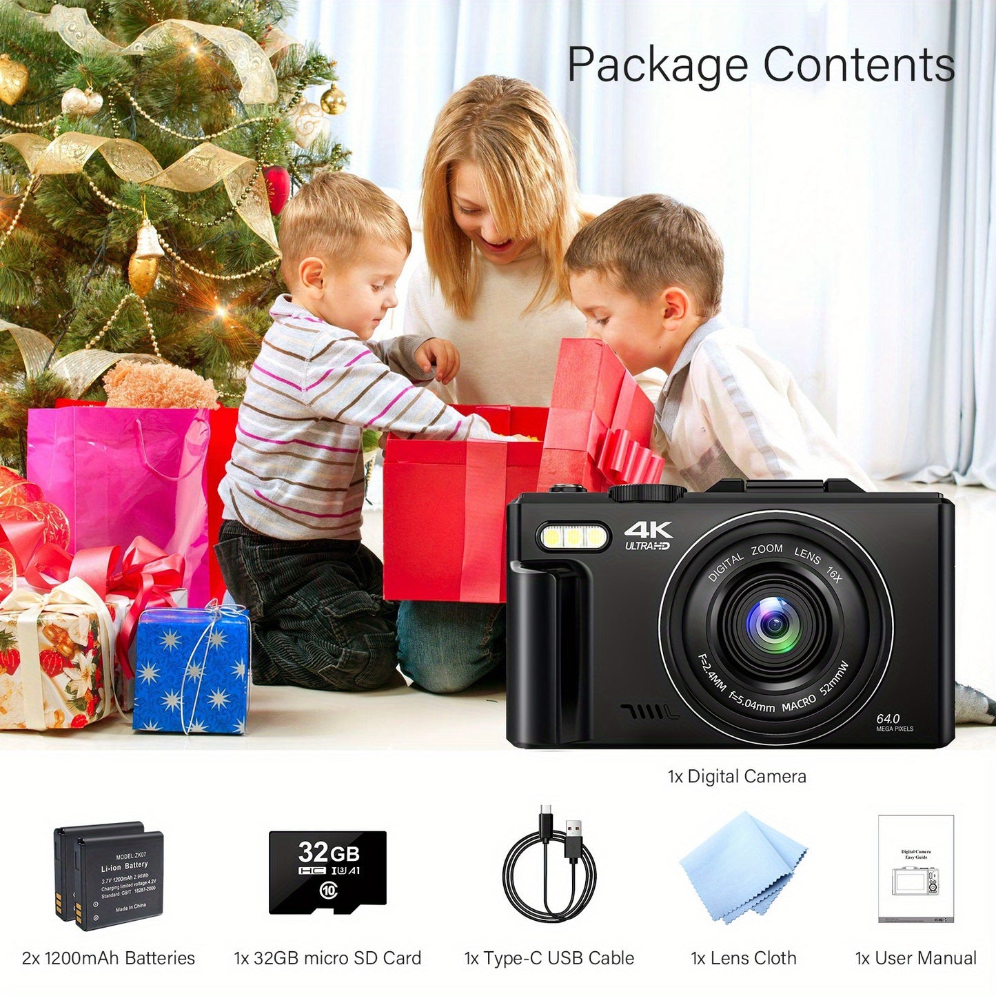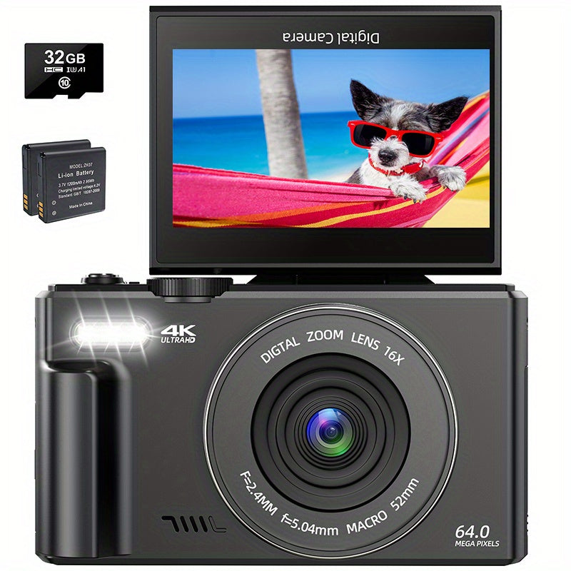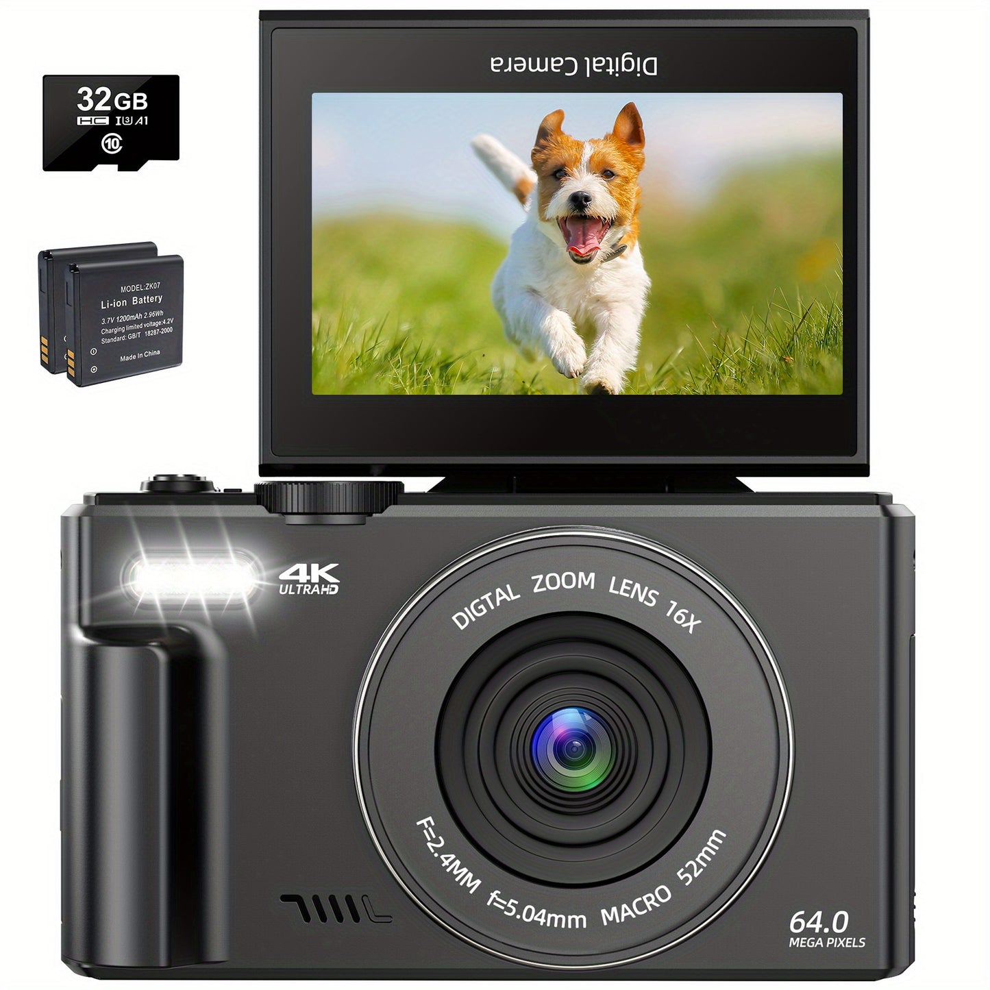 Dernier zoom 18x, caméra de vlog autofocus, appareil photo numérique 4K, appareil photo compact 64 mégapixels avec carte SD 32 Go, écran rabattable 3.0 pouces, caméra 4K avec 2 batteries