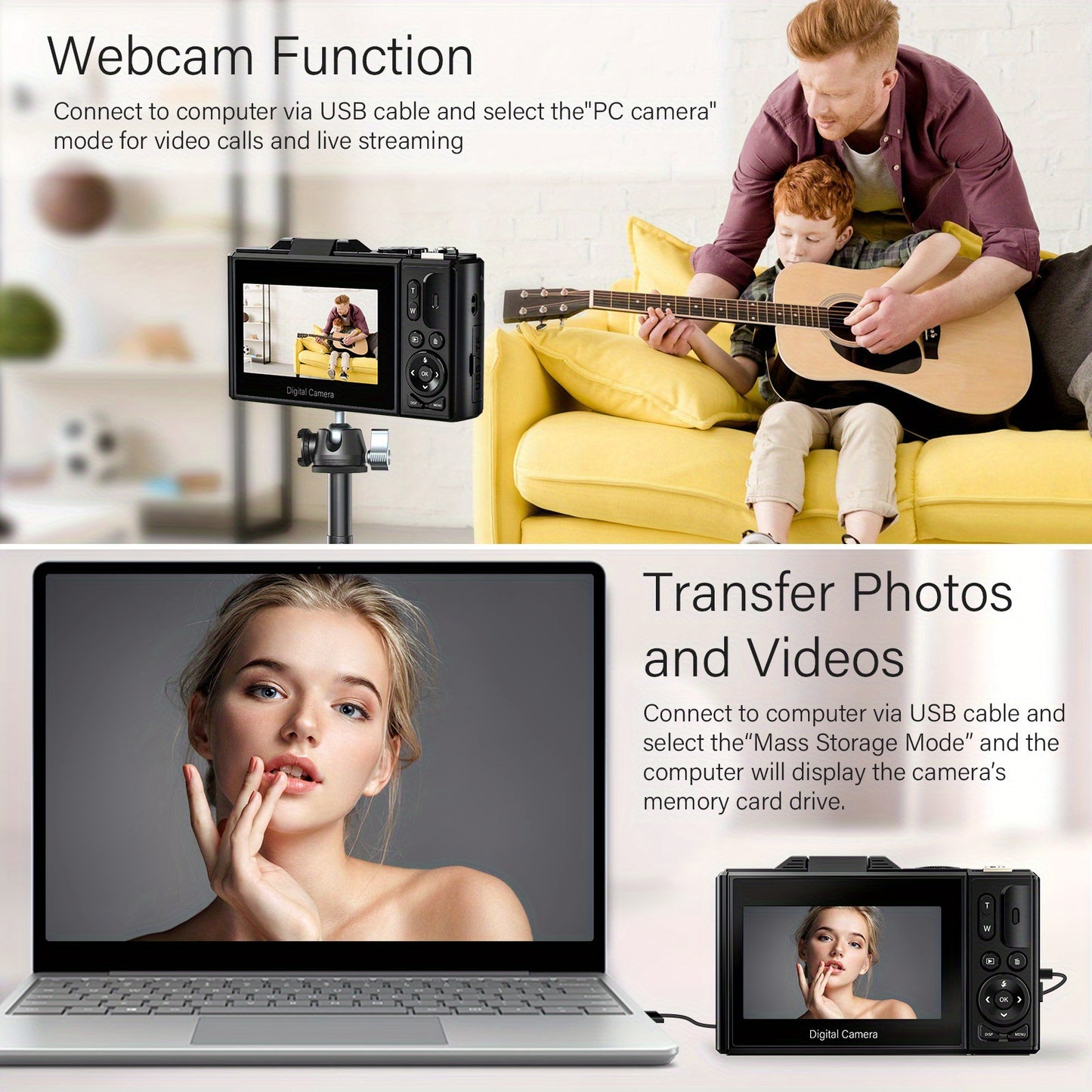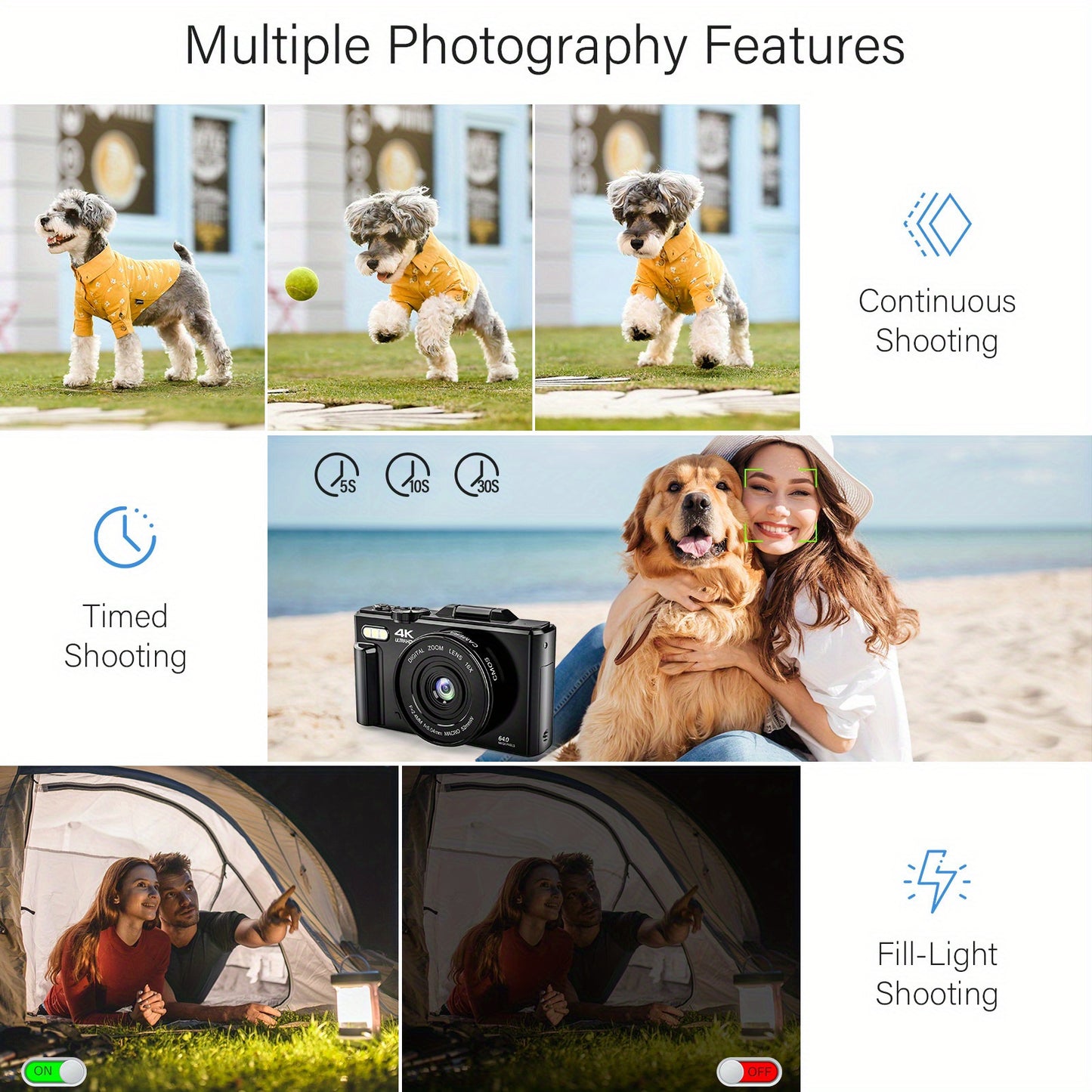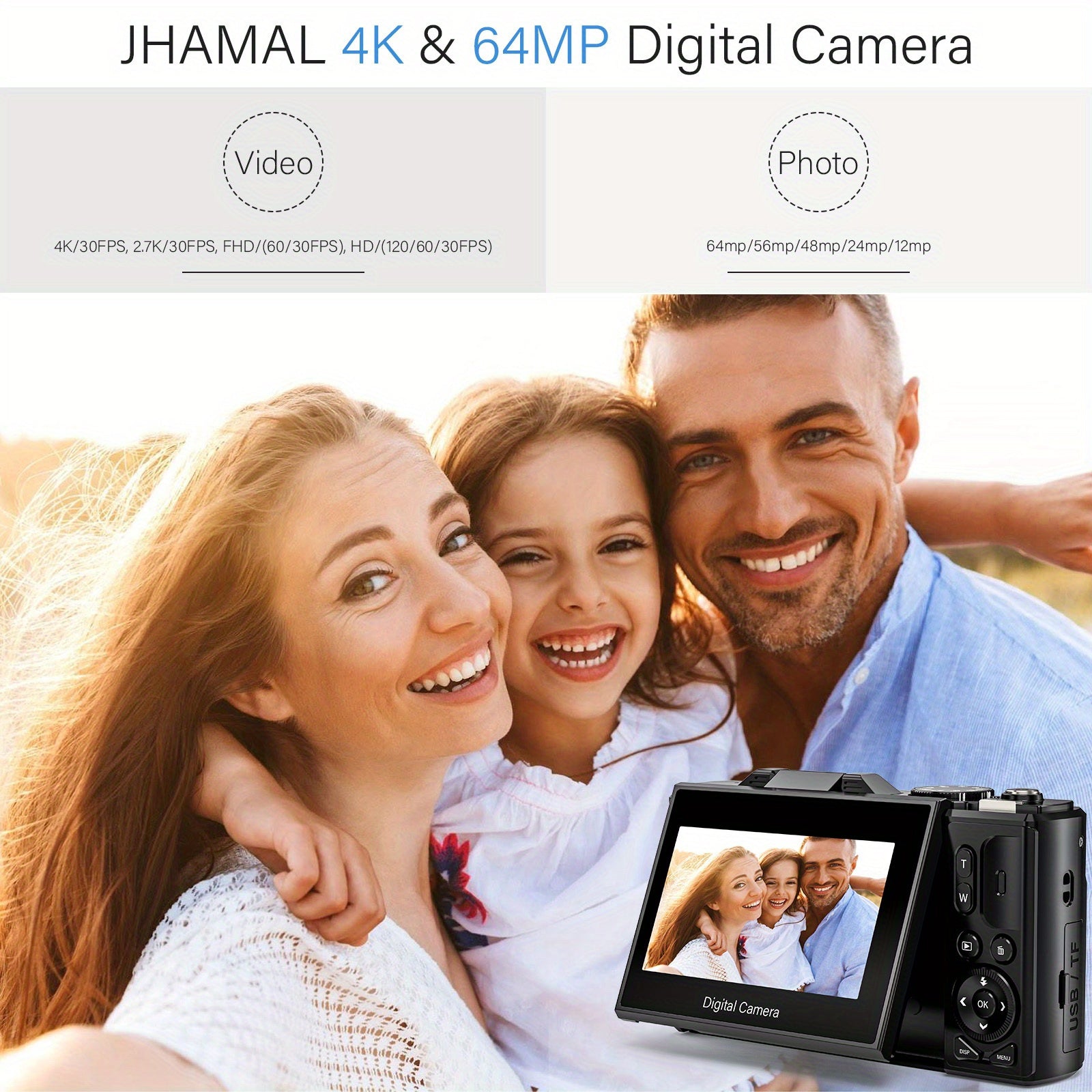 Dernier zoom 18x, caméra de vlog autofocus, appareil photo numérique 4K, appareil photo compact 64 mégapixels avec carte SD 32 Go, écran rabattable 3.0 pouces, caméra 4K avec 2 batteries