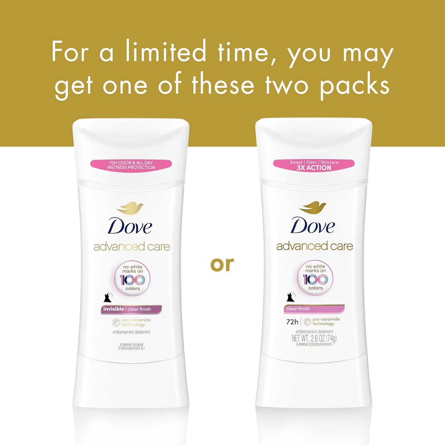 Dove Advanced Care Antiperspirant Deodorant Stick for Soft, Resilient Skin, Clear Finish with No White Marks and 72-Hour Sweat & Odor Protection, 2.6 oz